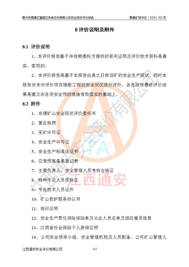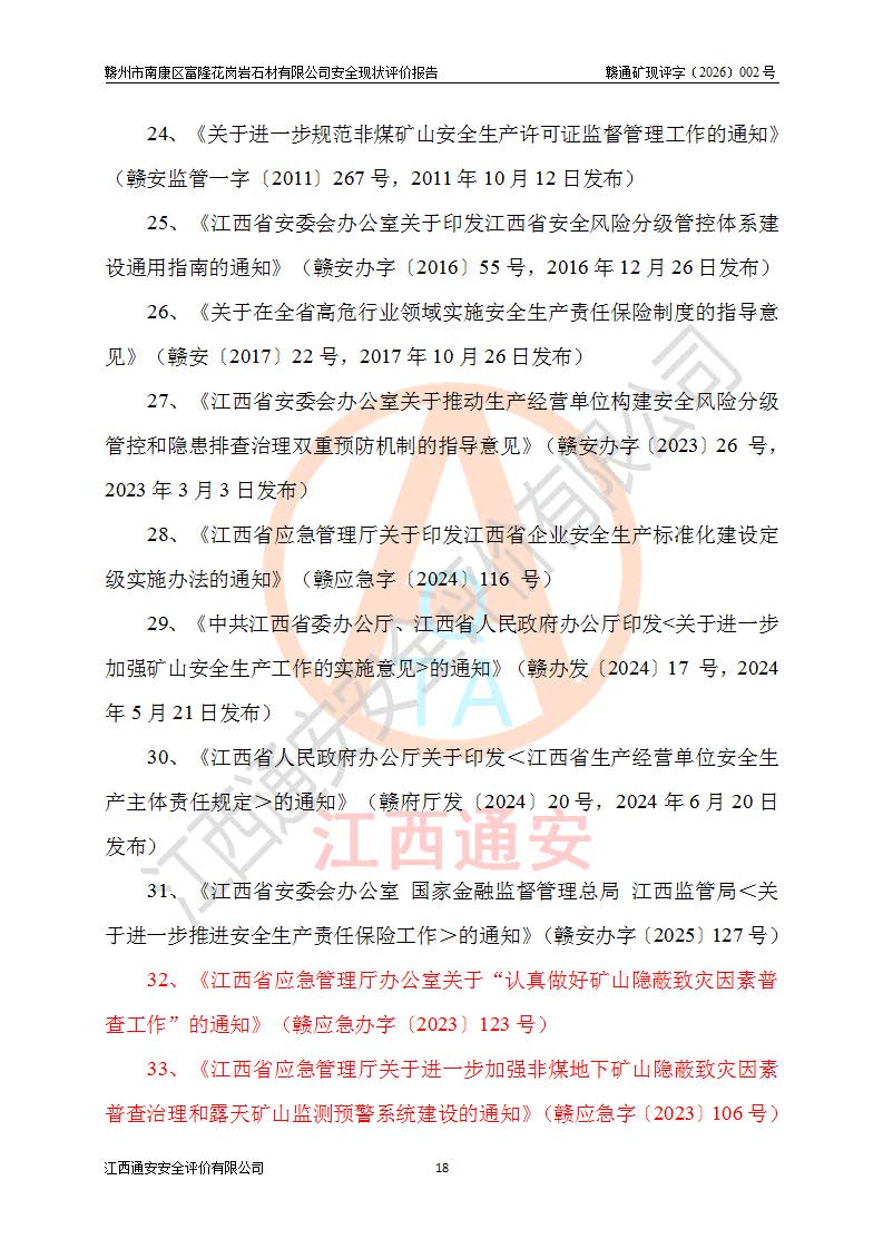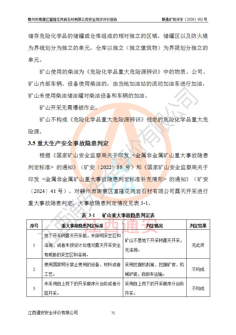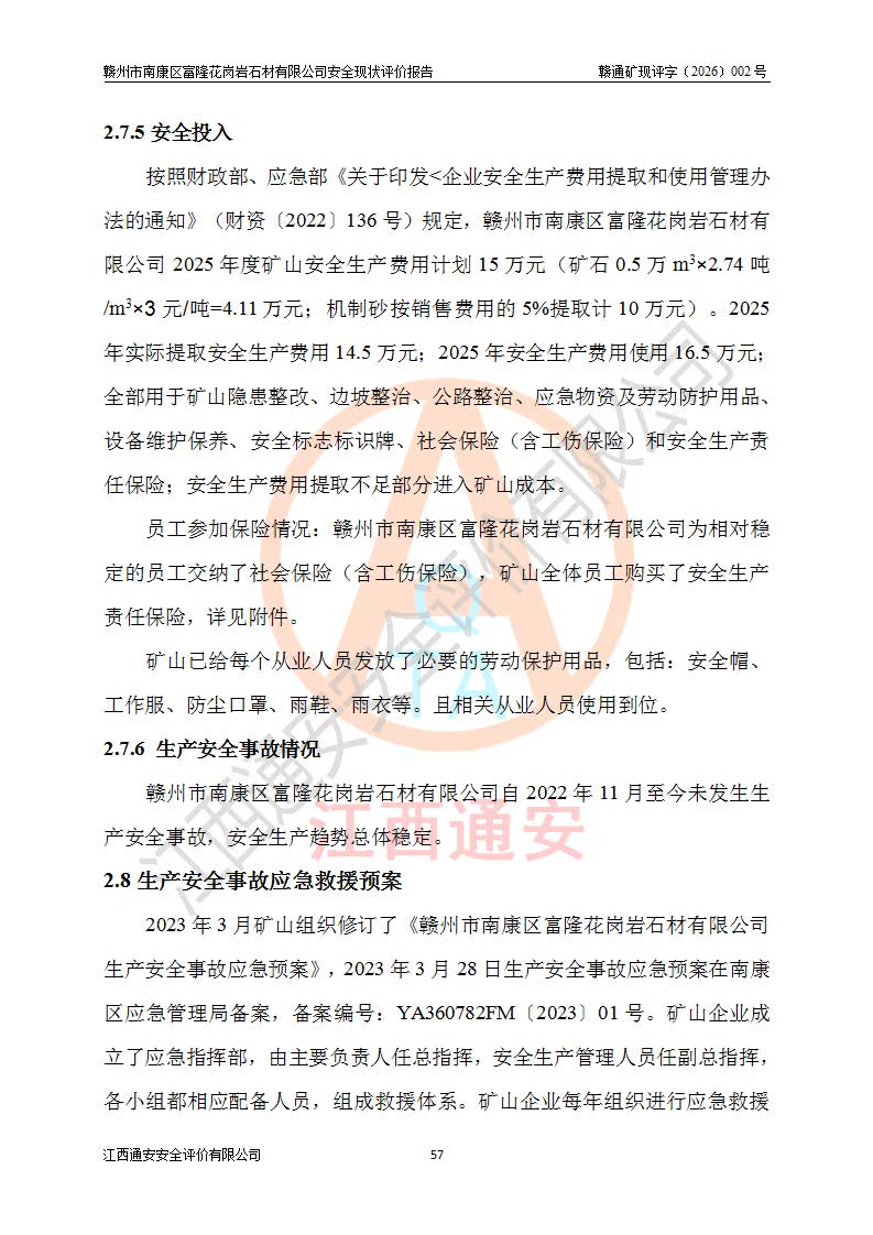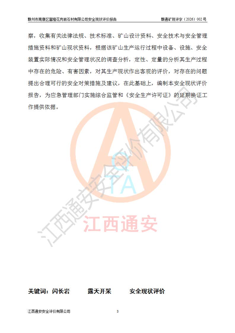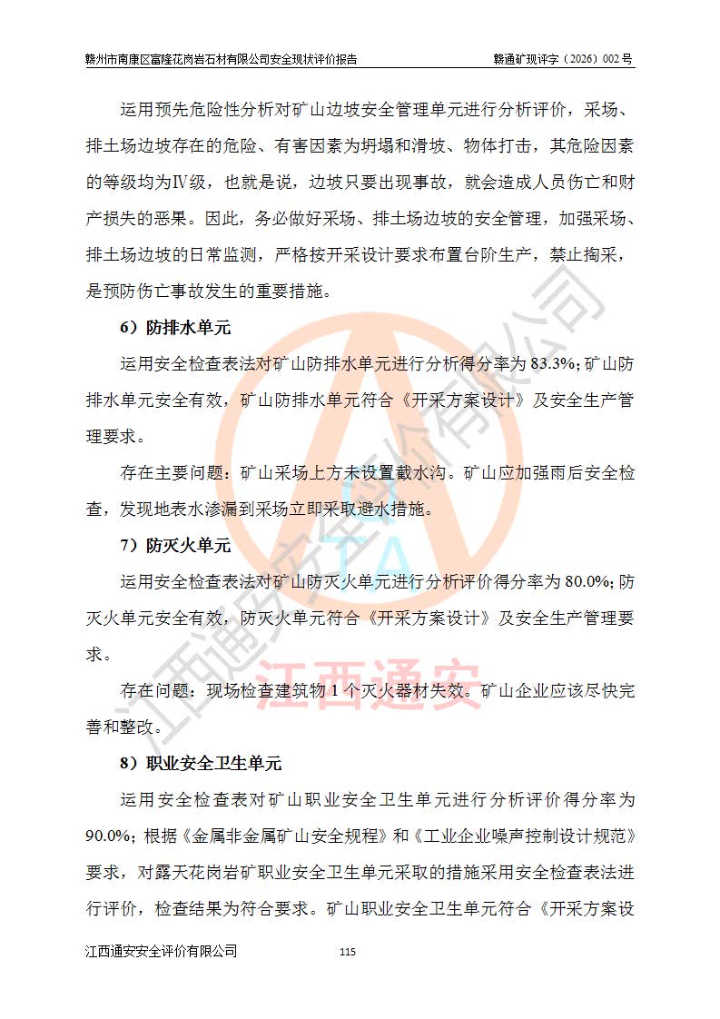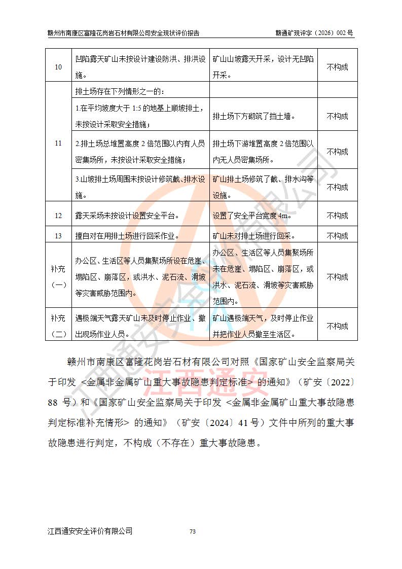 项目名称 | 赣州市南康区富隆花岗岩石材有限公司安全现状评价报告 | ||||