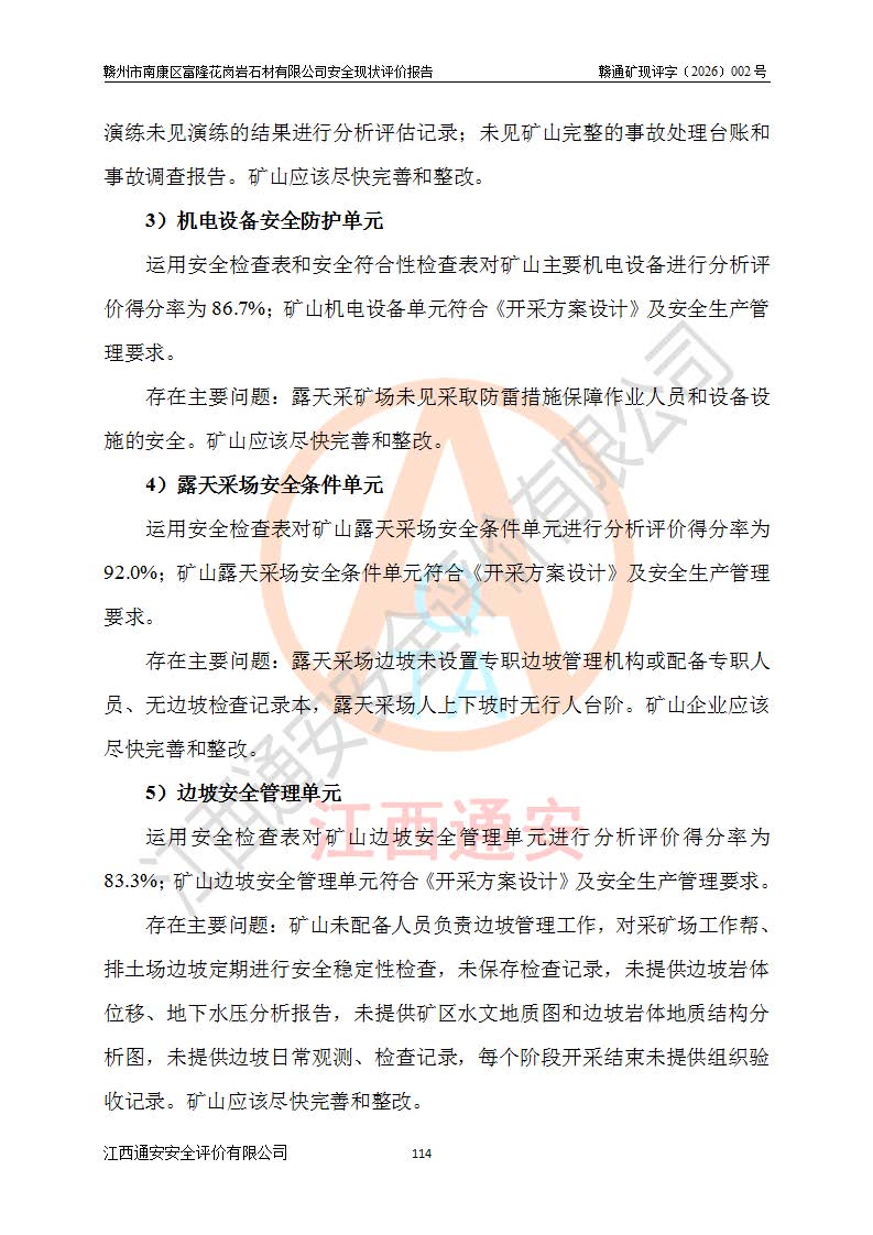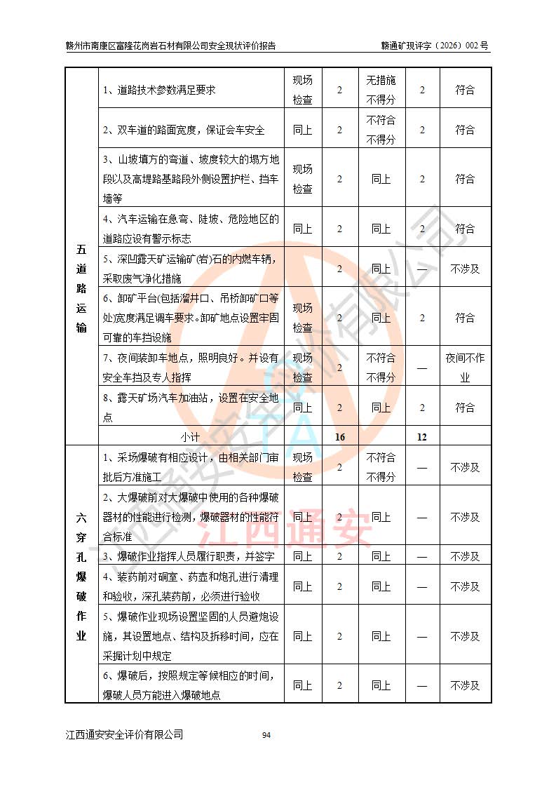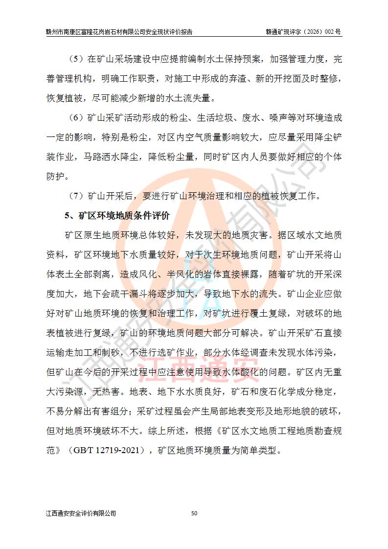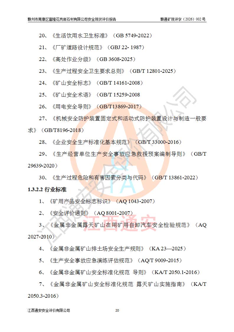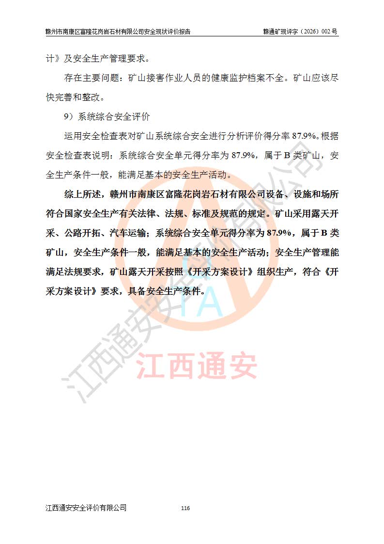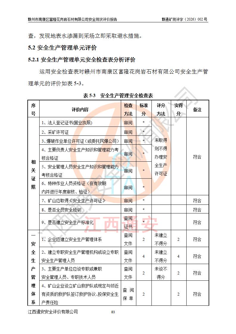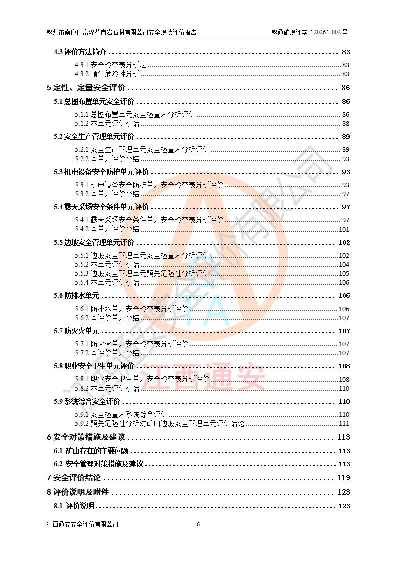 项目名称 | 赣州市南康区富隆花岗岩石材有限公司安全现状评价报告 | ||||