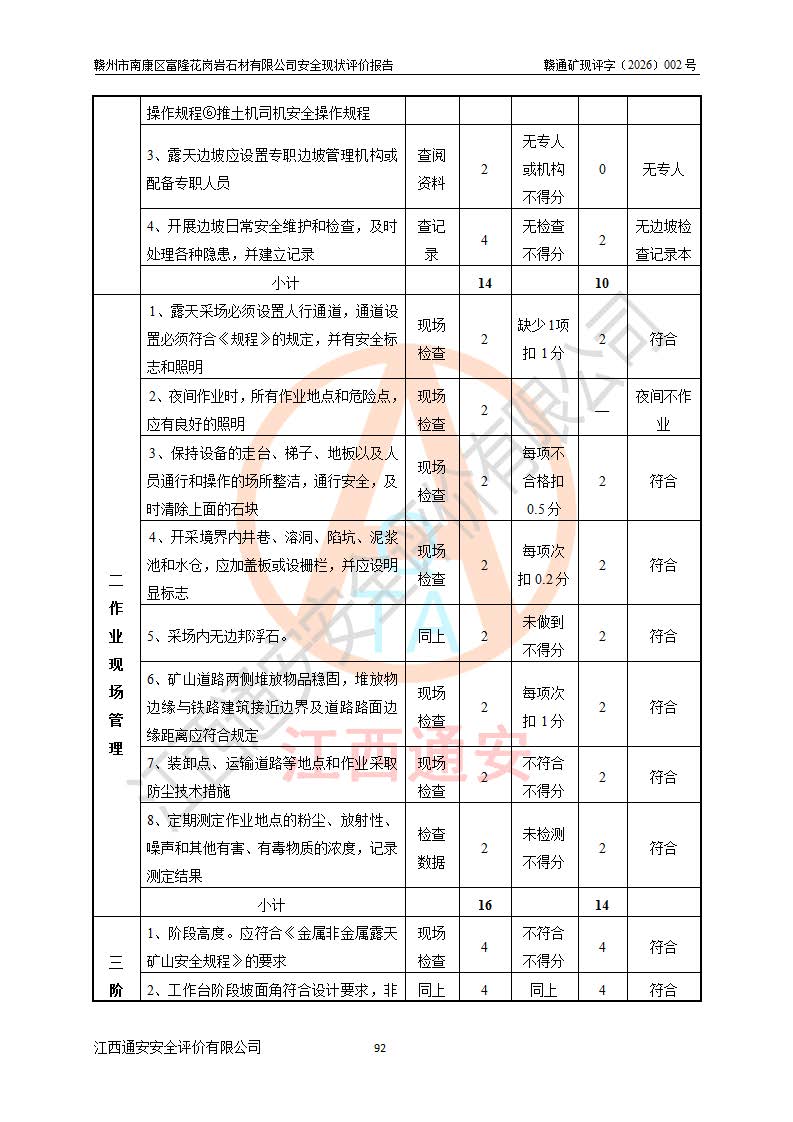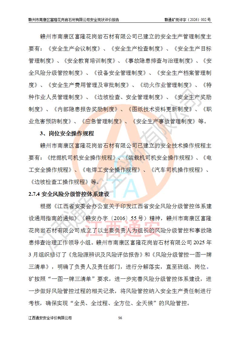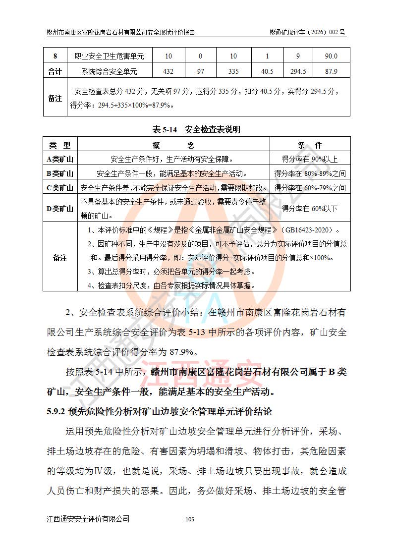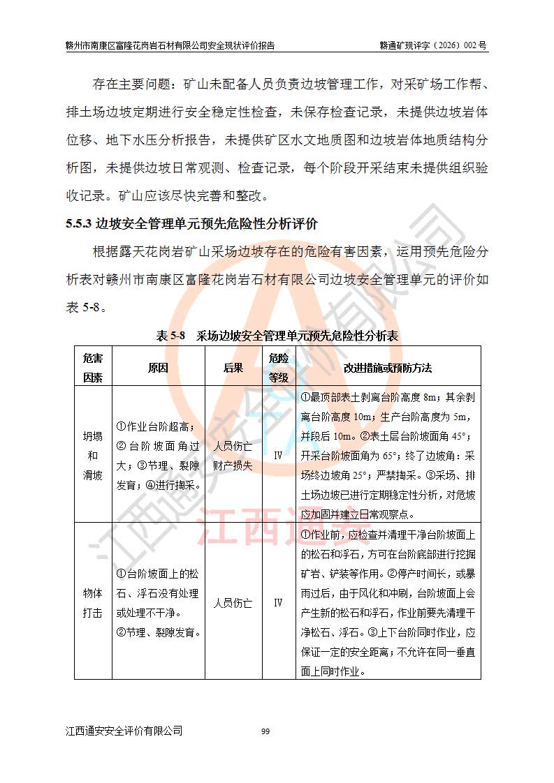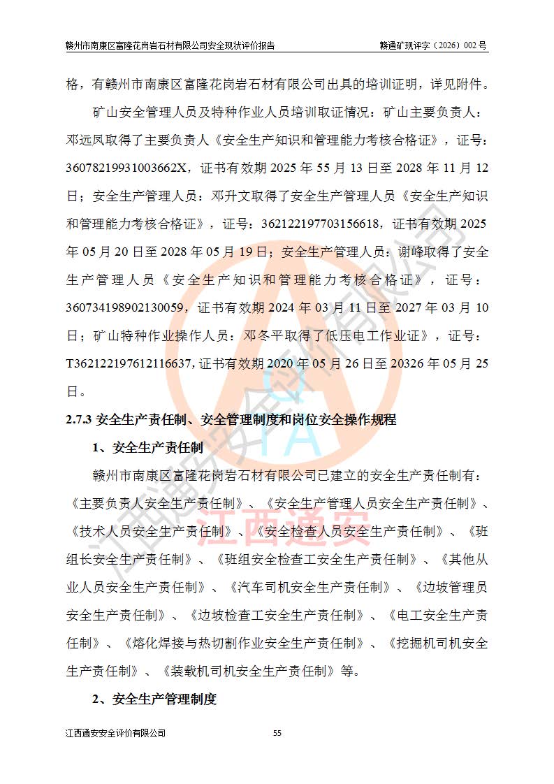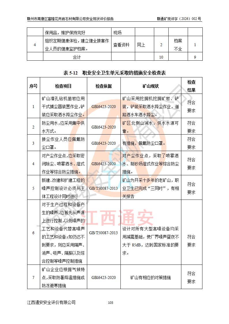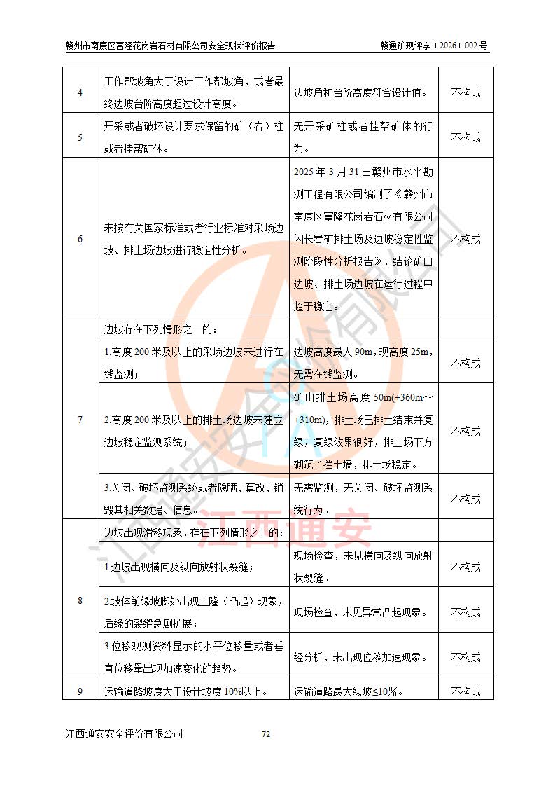 项目名称 | 赣州市南康区富隆花岗岩石材有限公司安全现状评价报告 | ||||