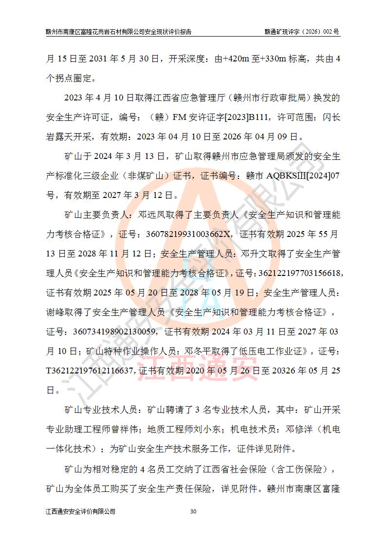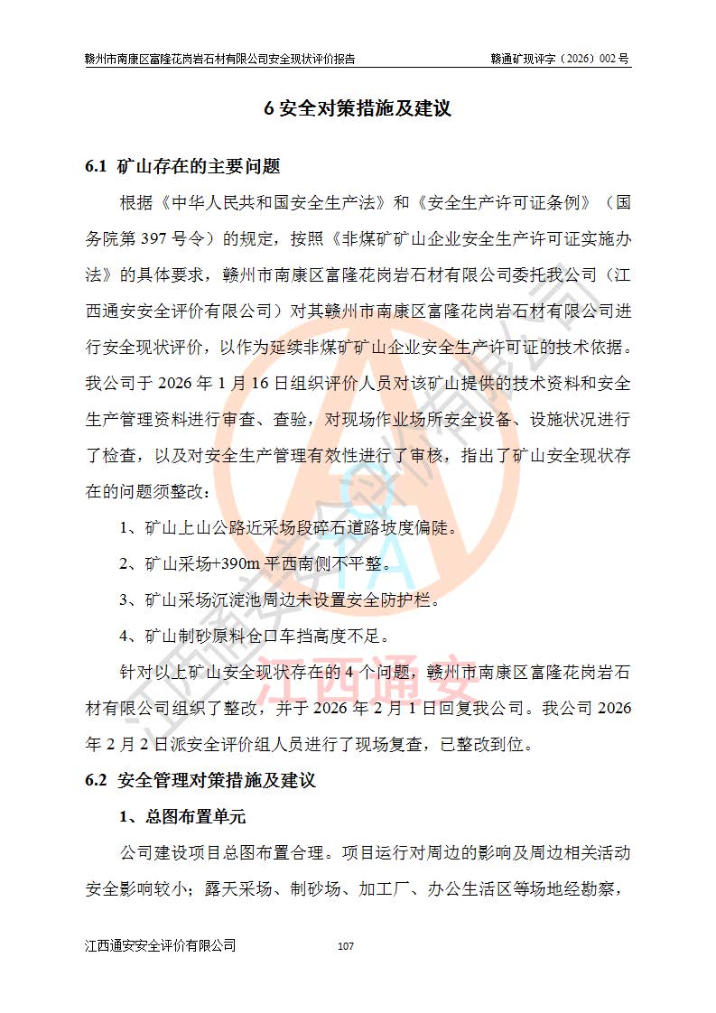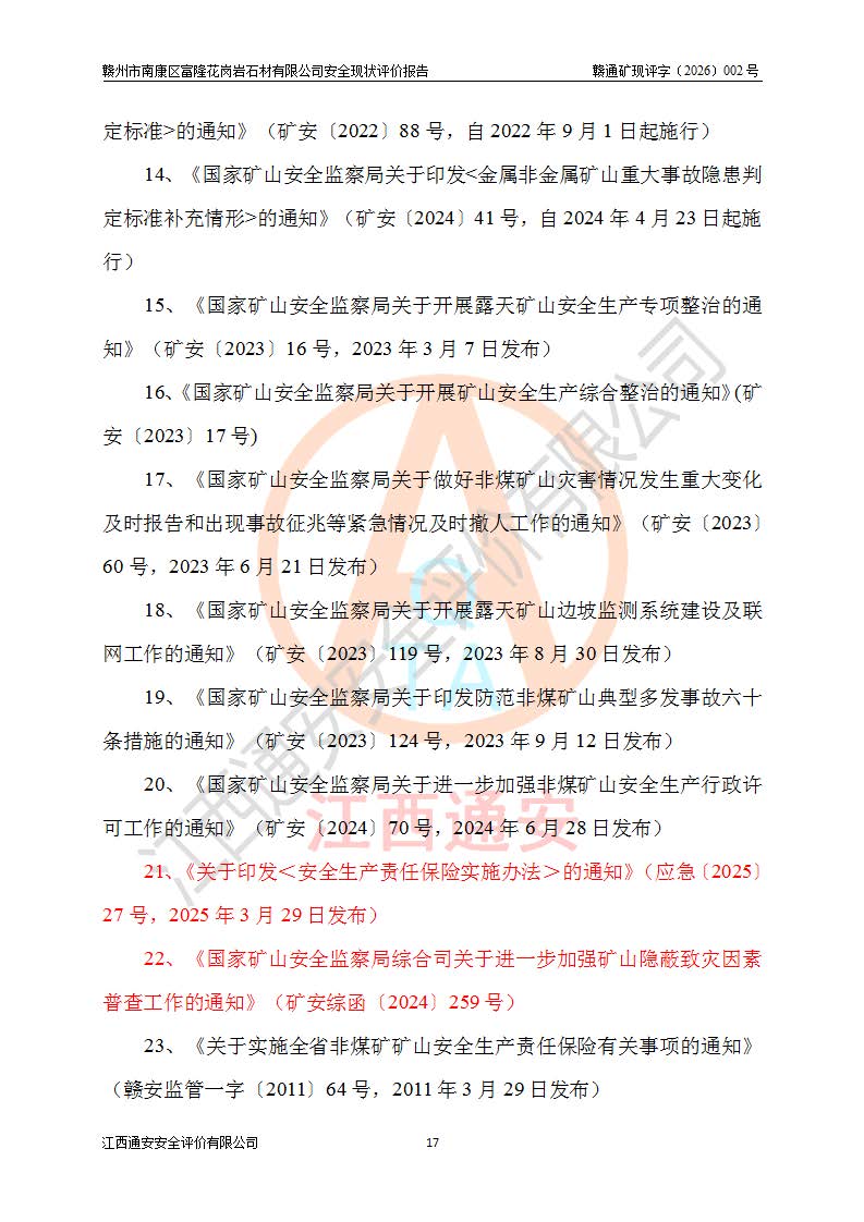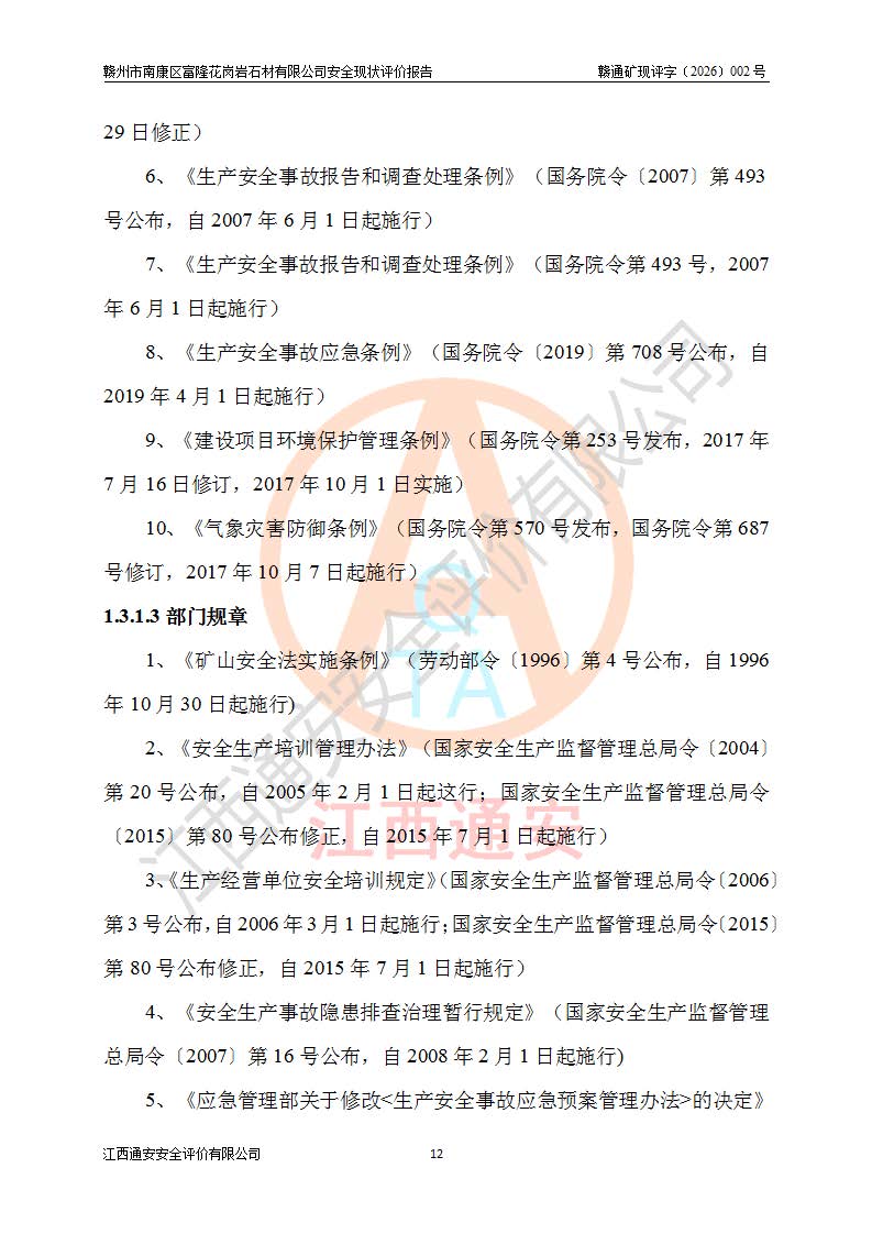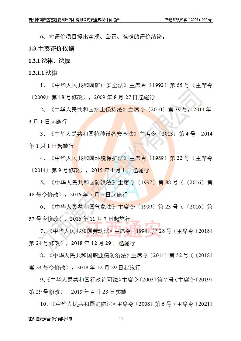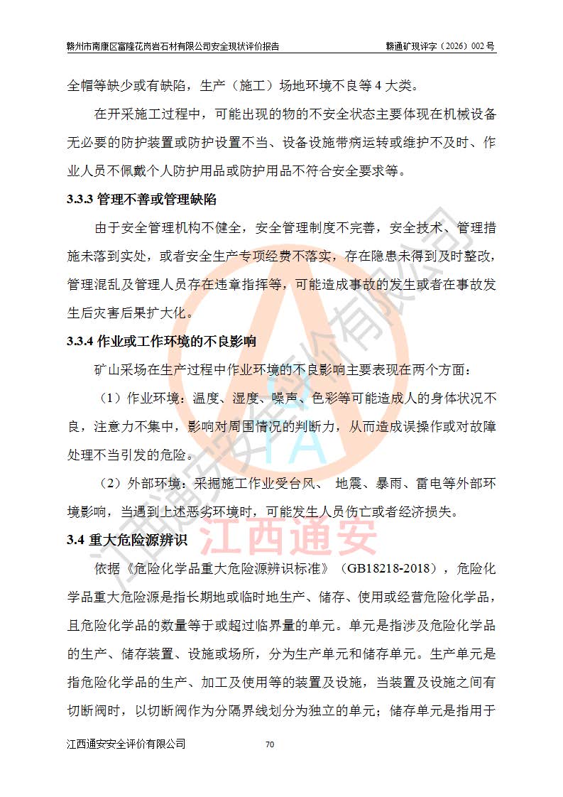 项目名称 | 赣州市南康区富隆花岗岩石材有限公司安全现状评价报告 | ||||
