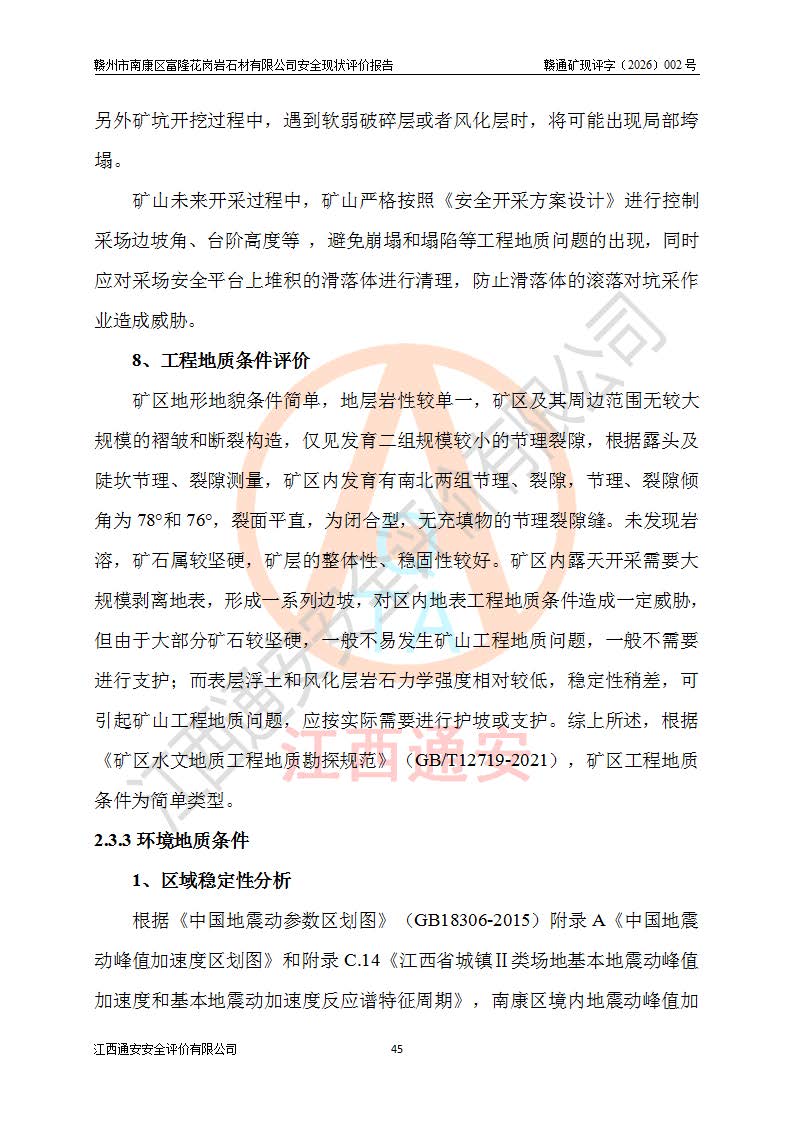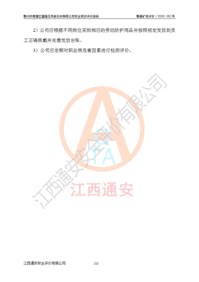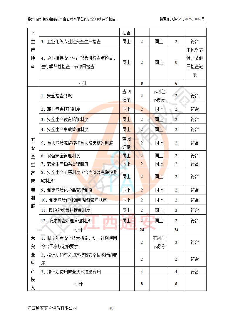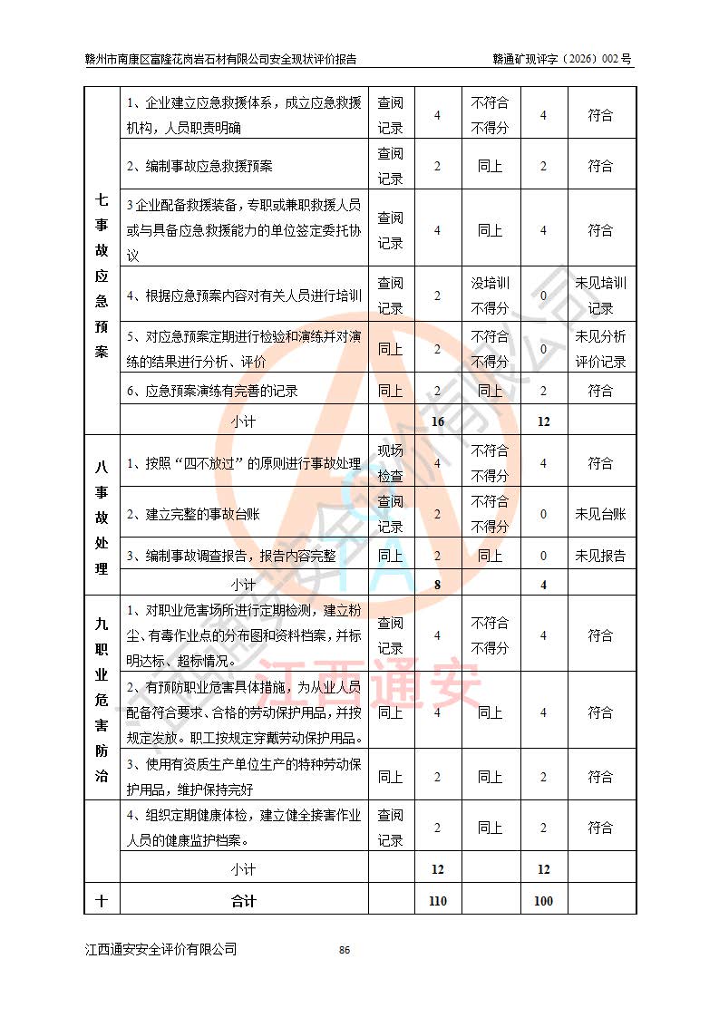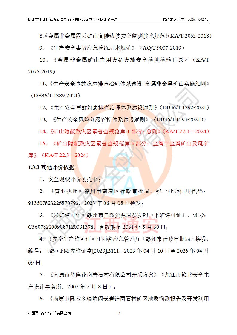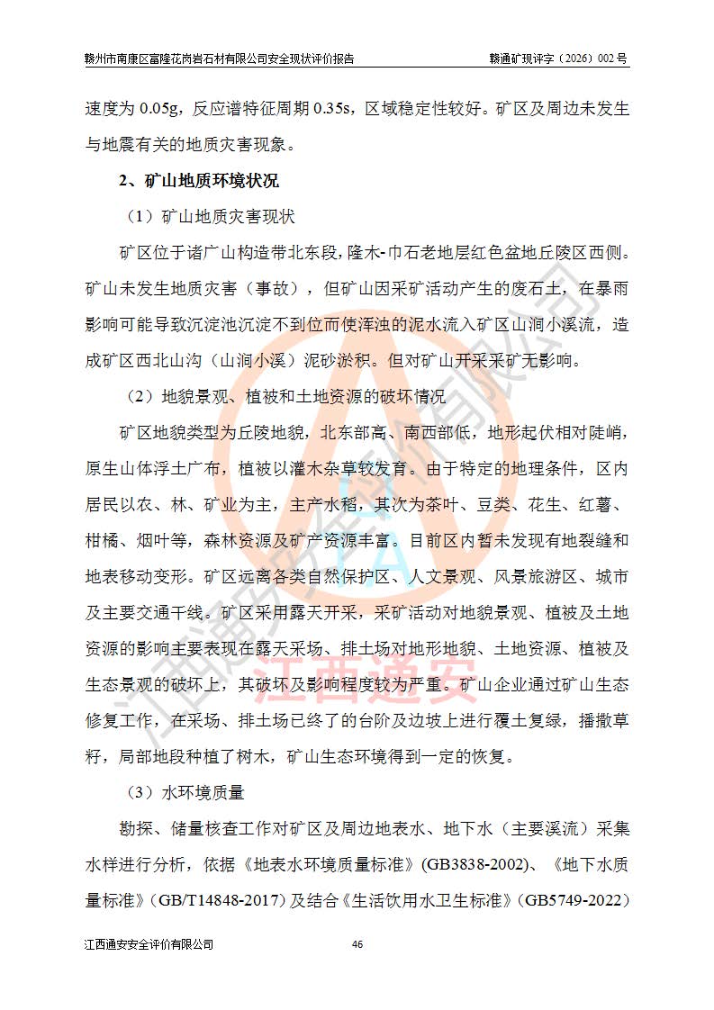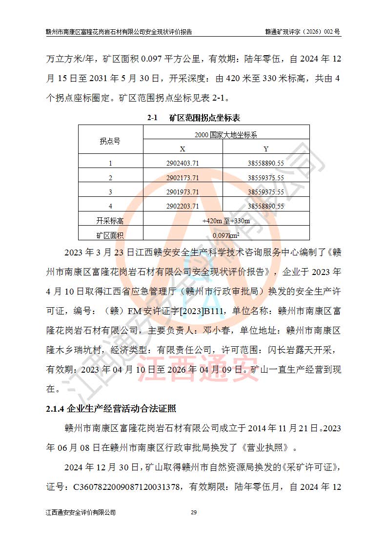 项目名称 | 赣州市南康区富隆花岗岩石材有限公司安全现状评价报告 | ||||