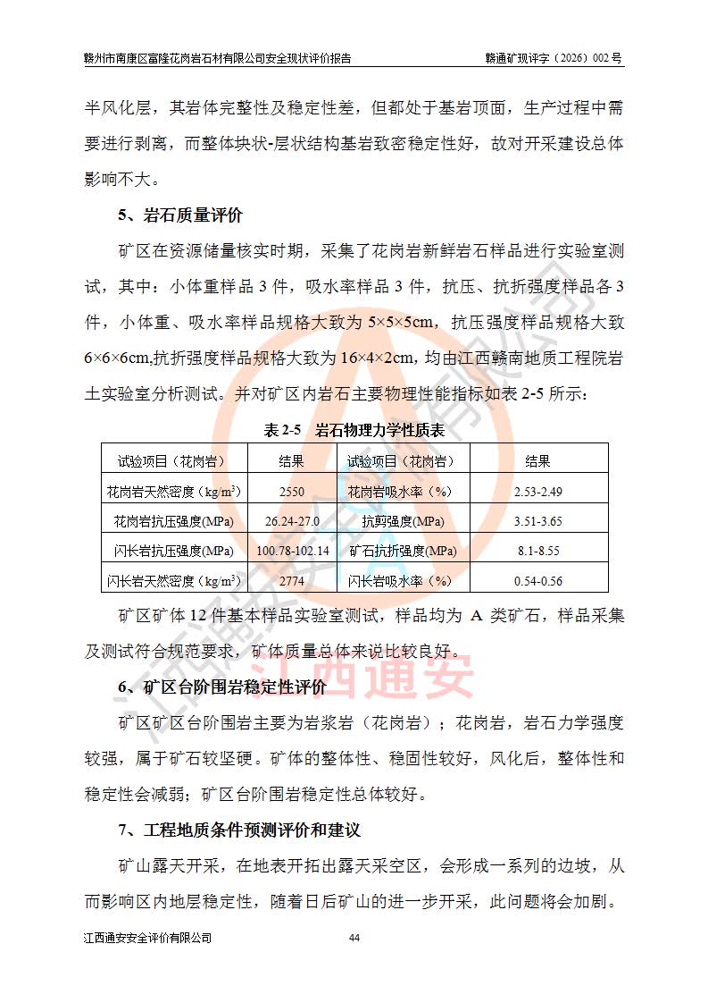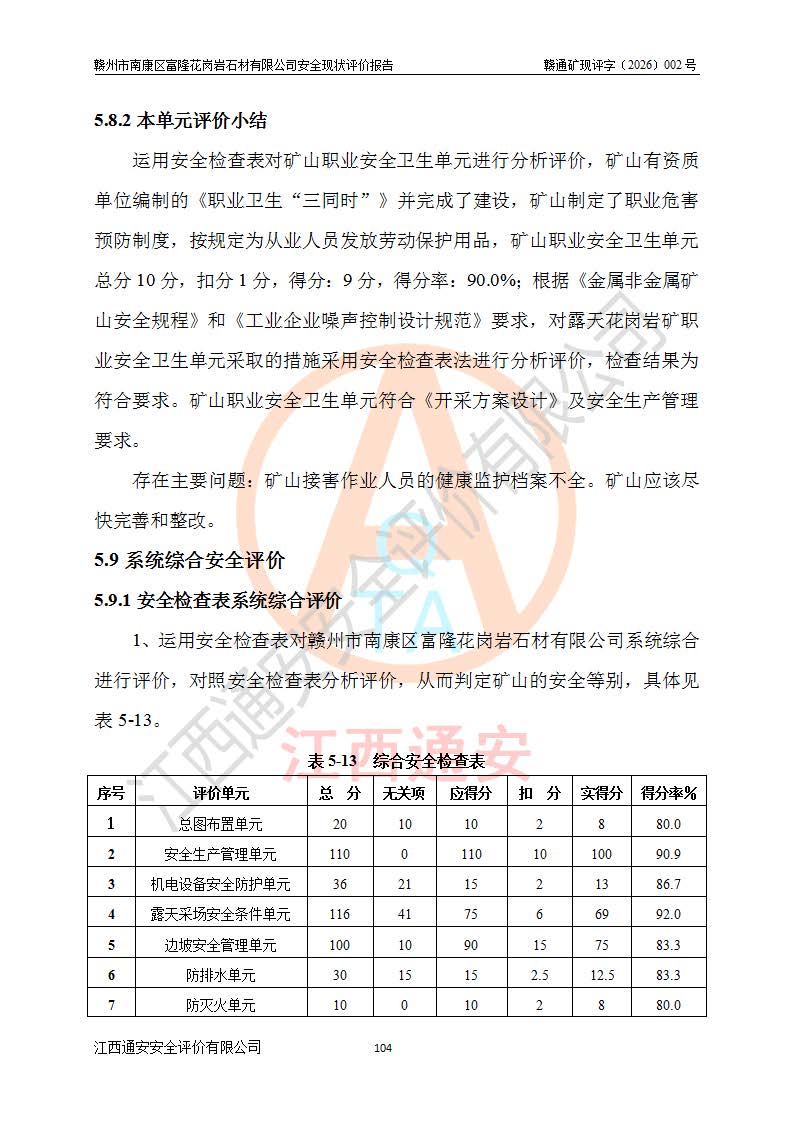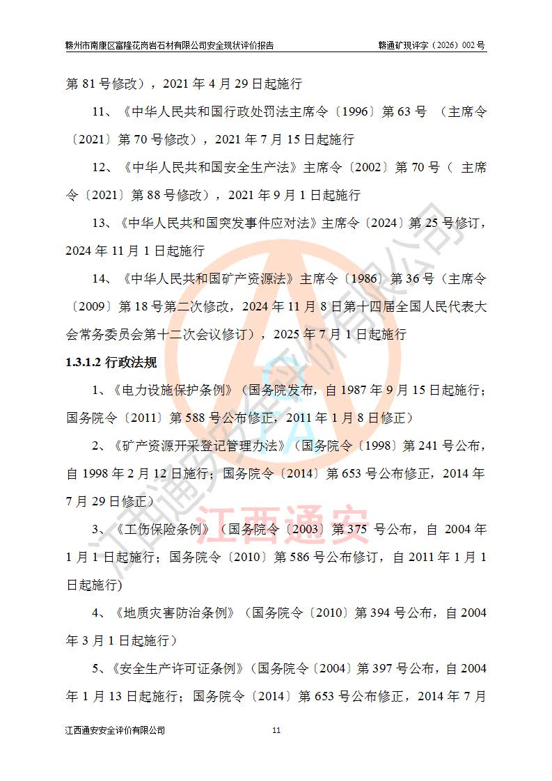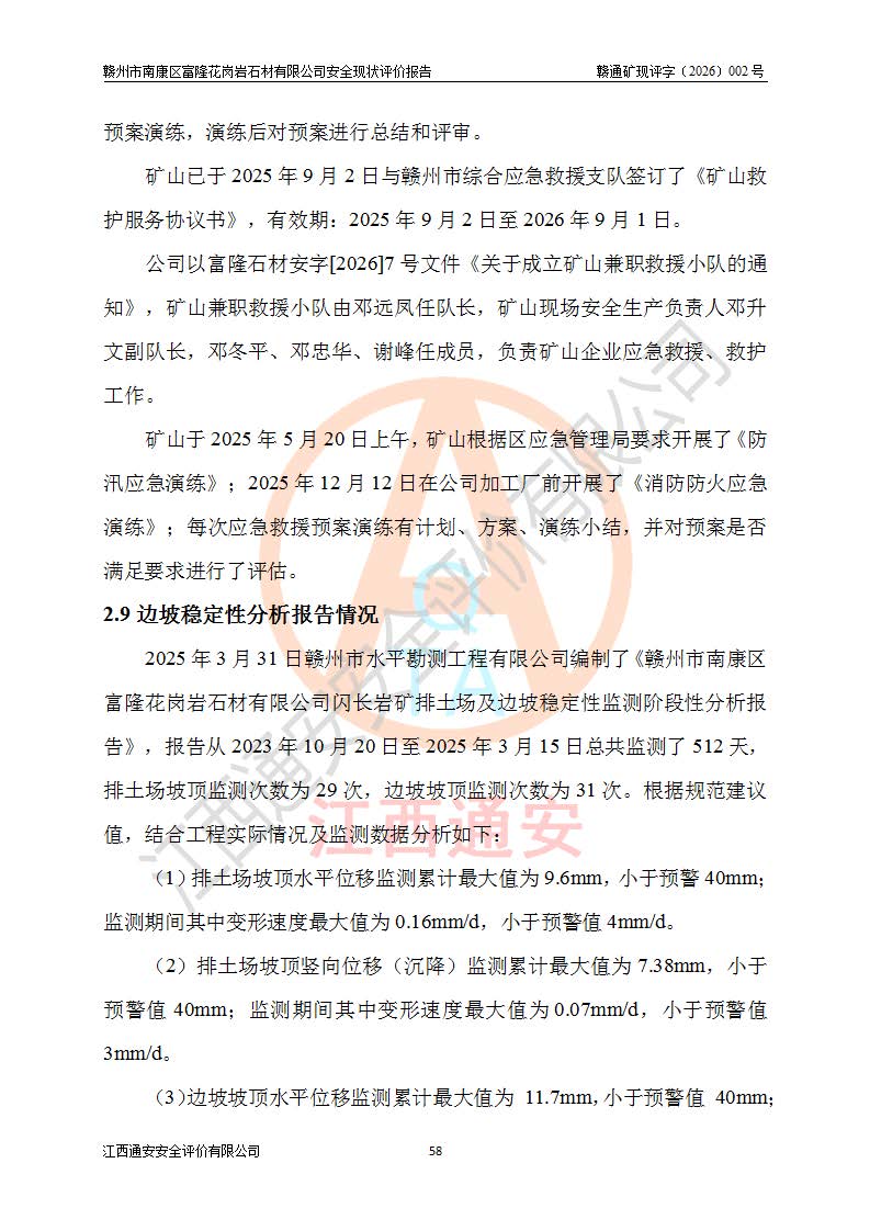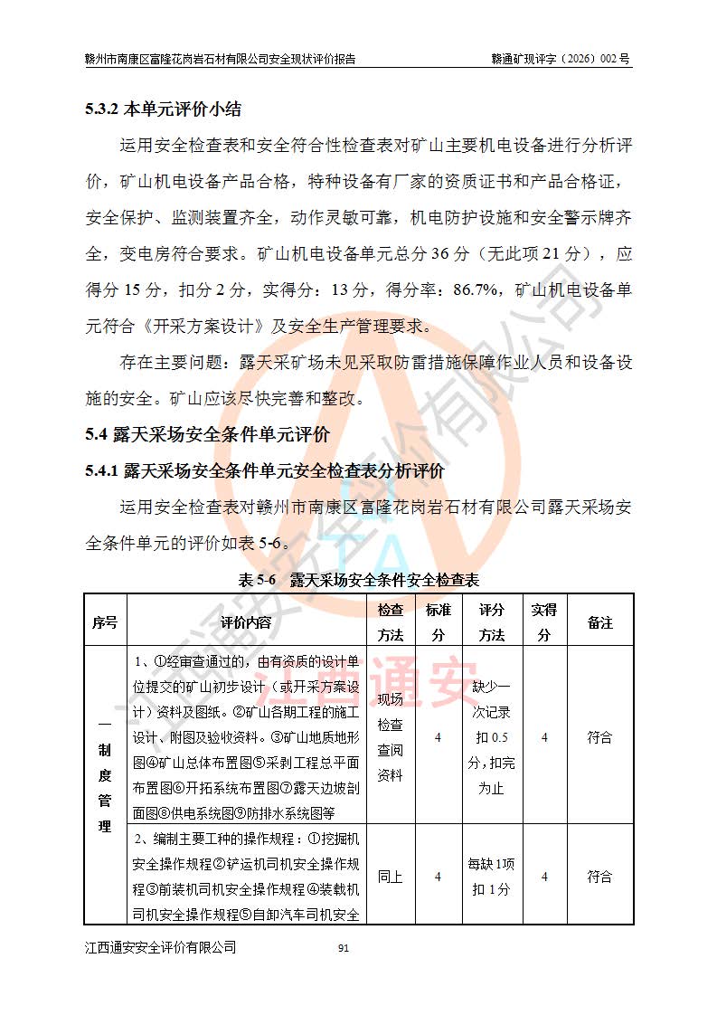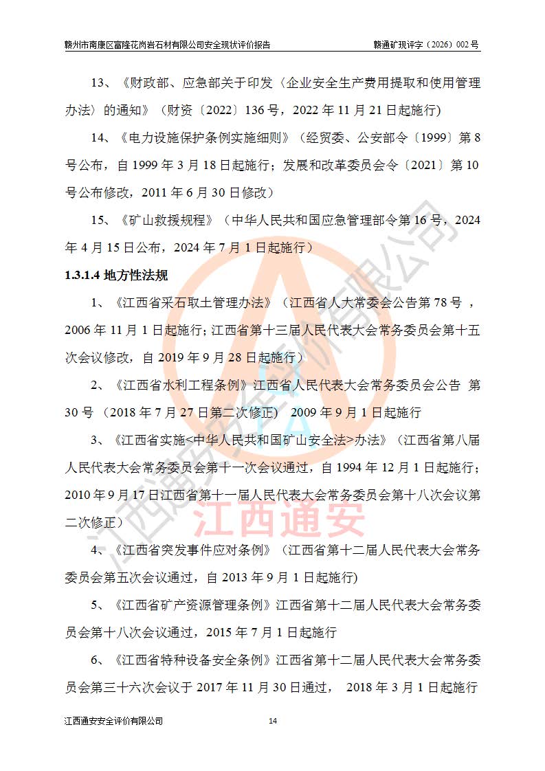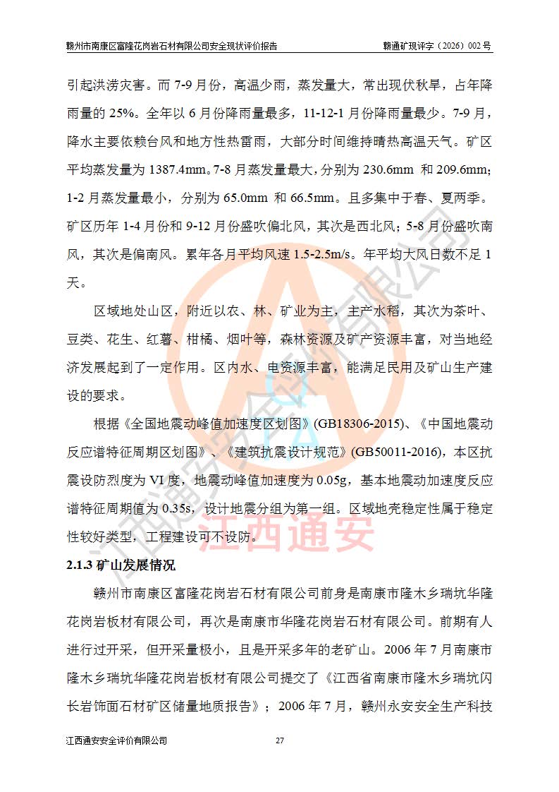 项目名称 | 赣州市南康区富隆花岗岩石材有限公司安全现状评价报告 | ||||