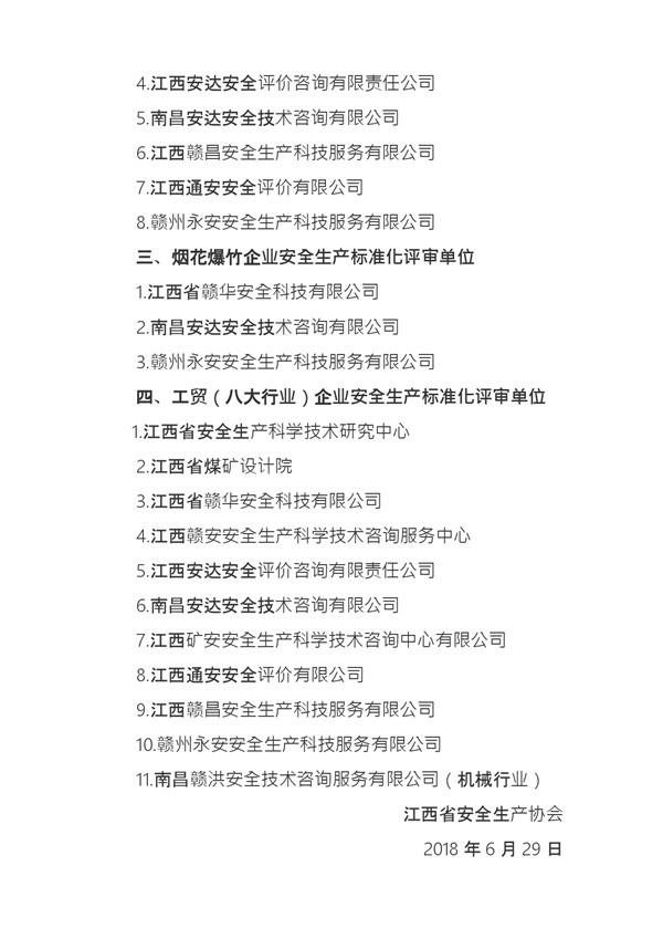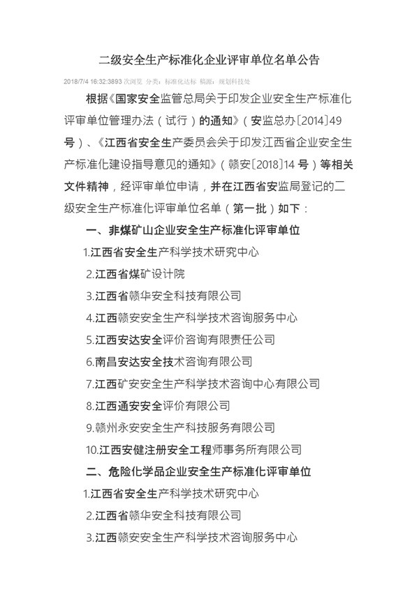 二级安全生产标准化企业评审单位名单公告