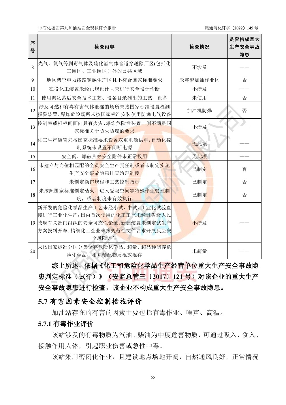 安全现状评价