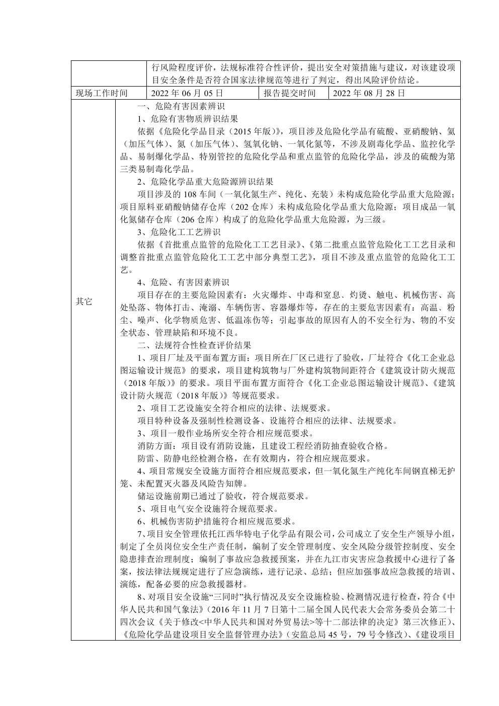 安全现状评价