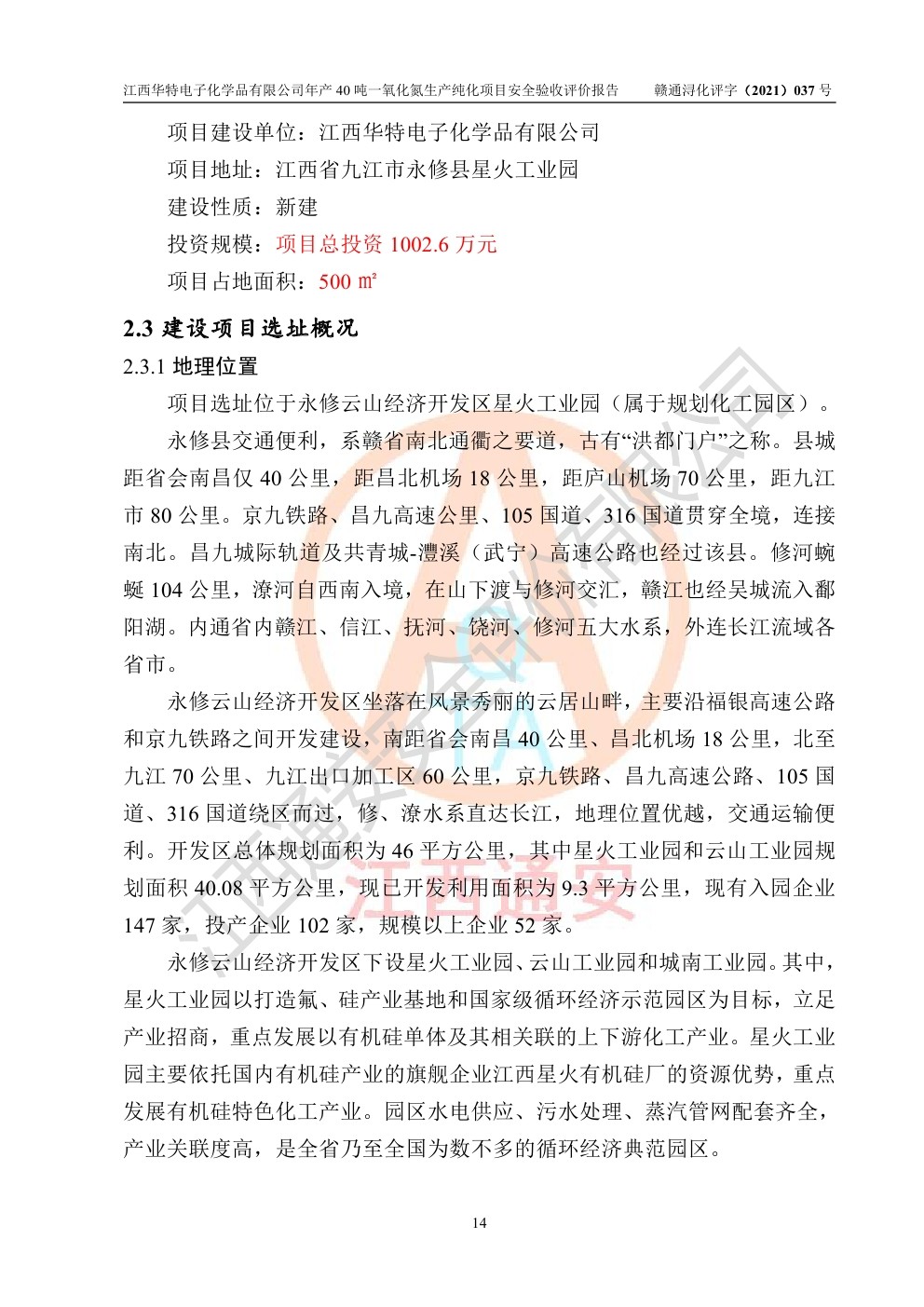 江西华特电子化学品有限公司年产40万吨UFC新材料项目