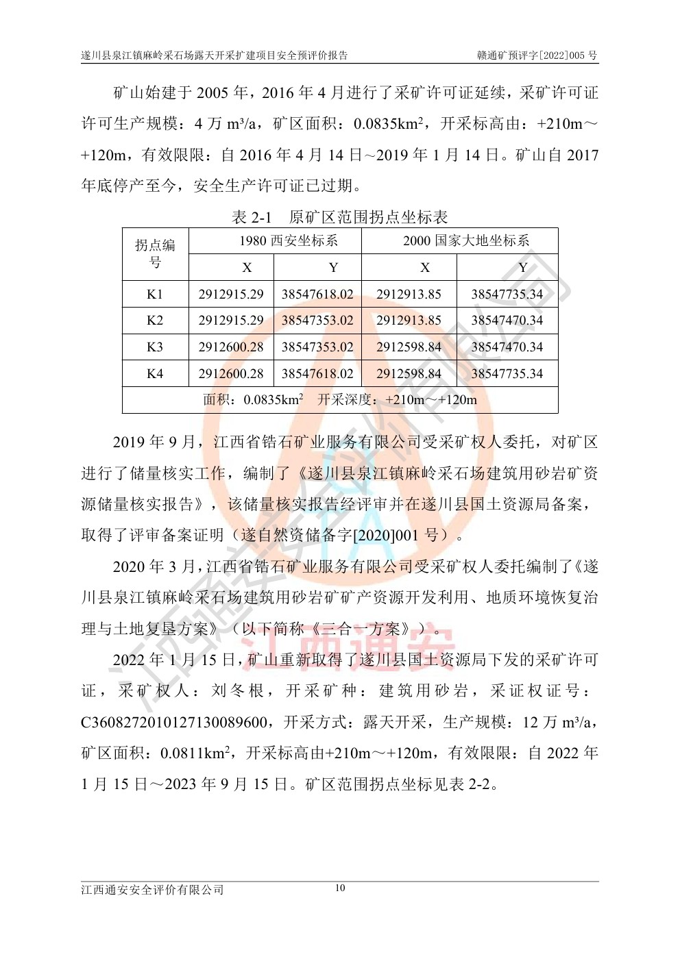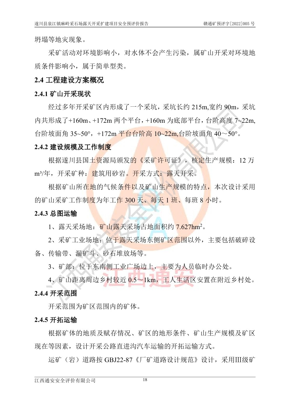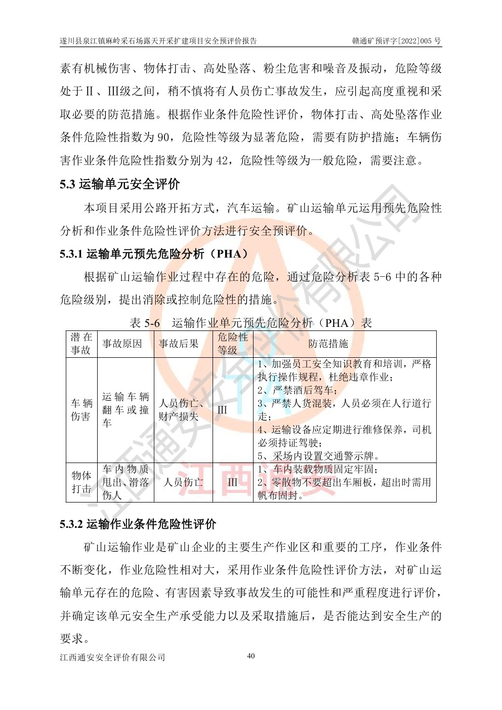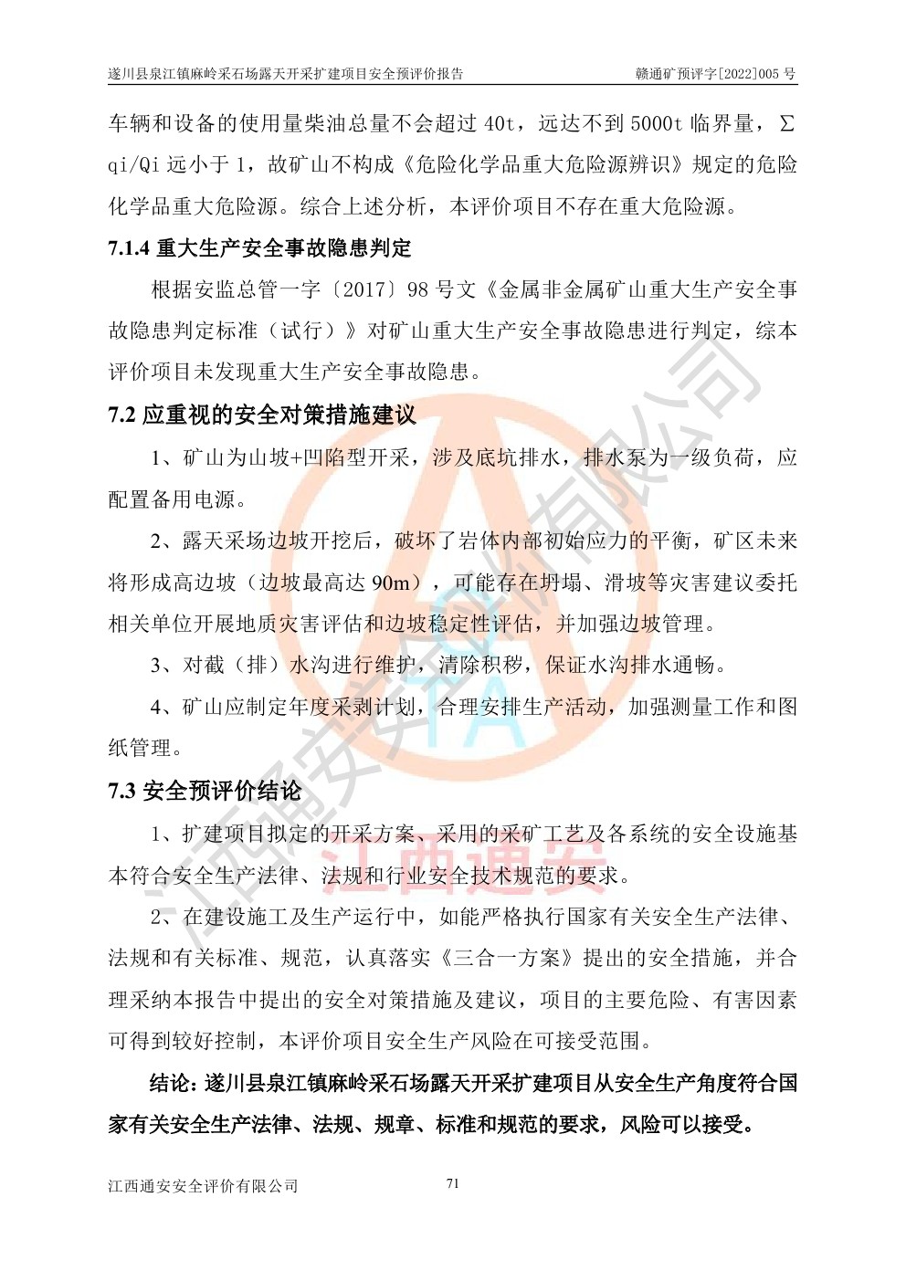 遂川县泉江镇麻岭采石场露天开采扩建项目安全预评价报告