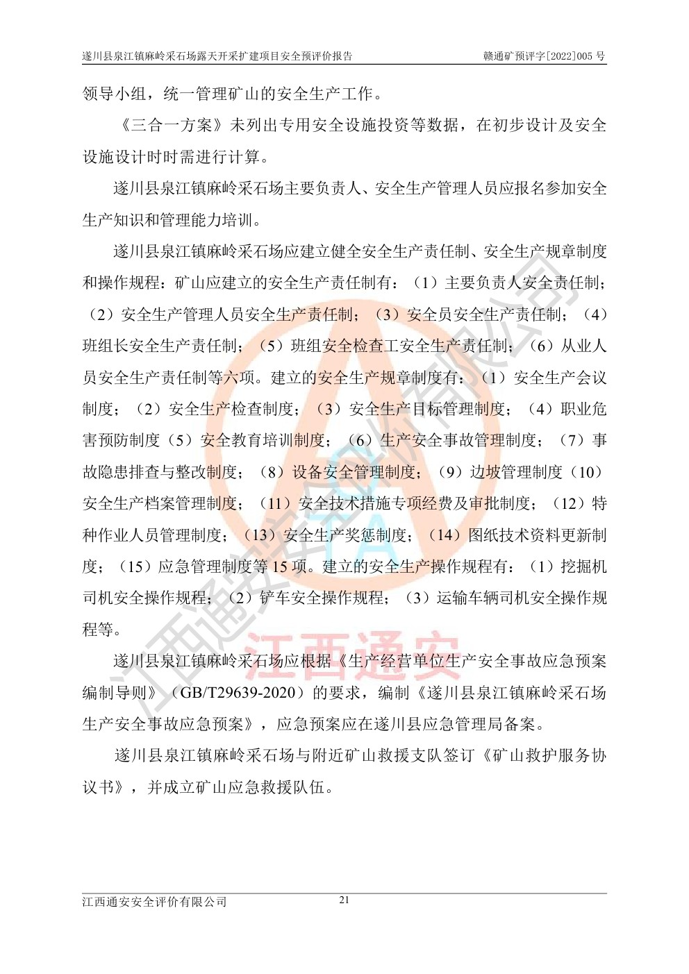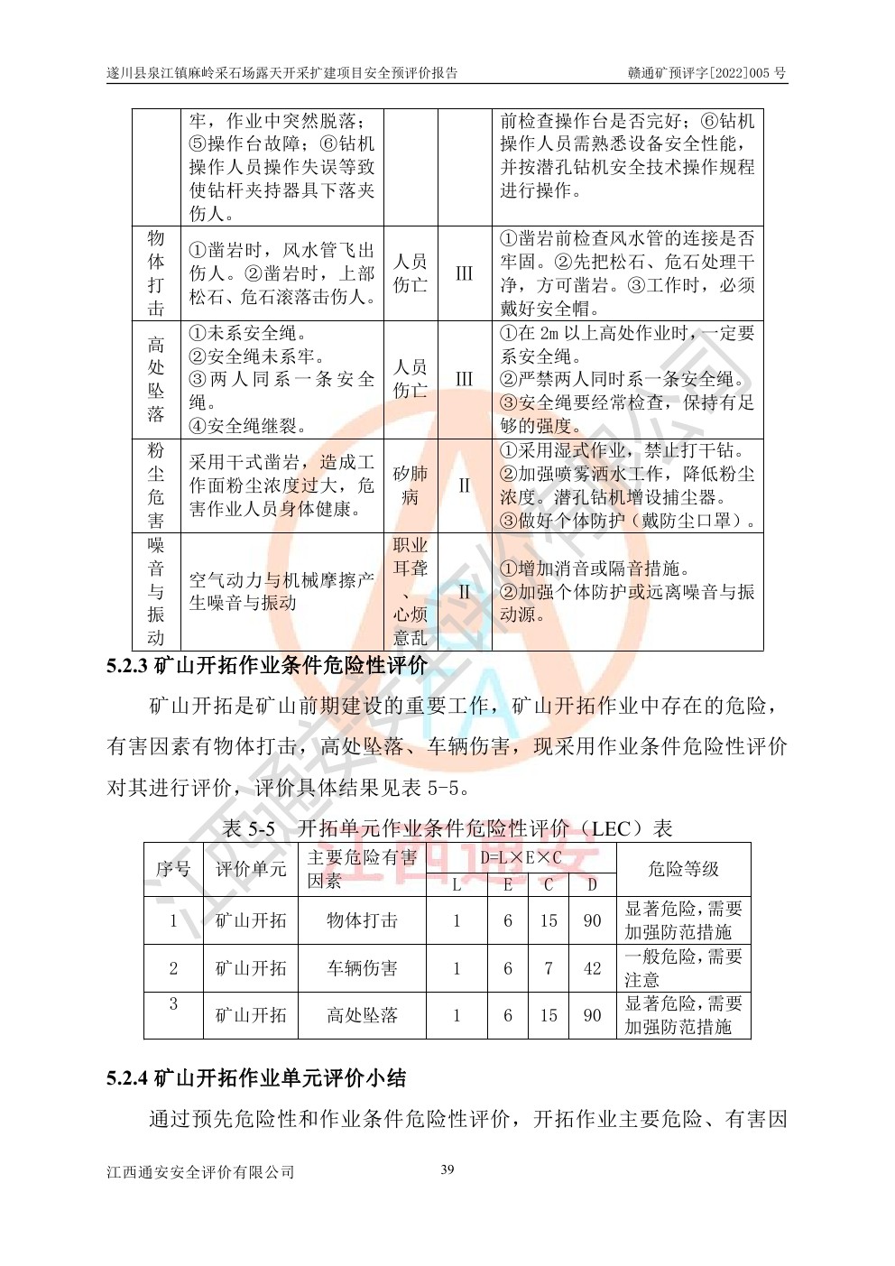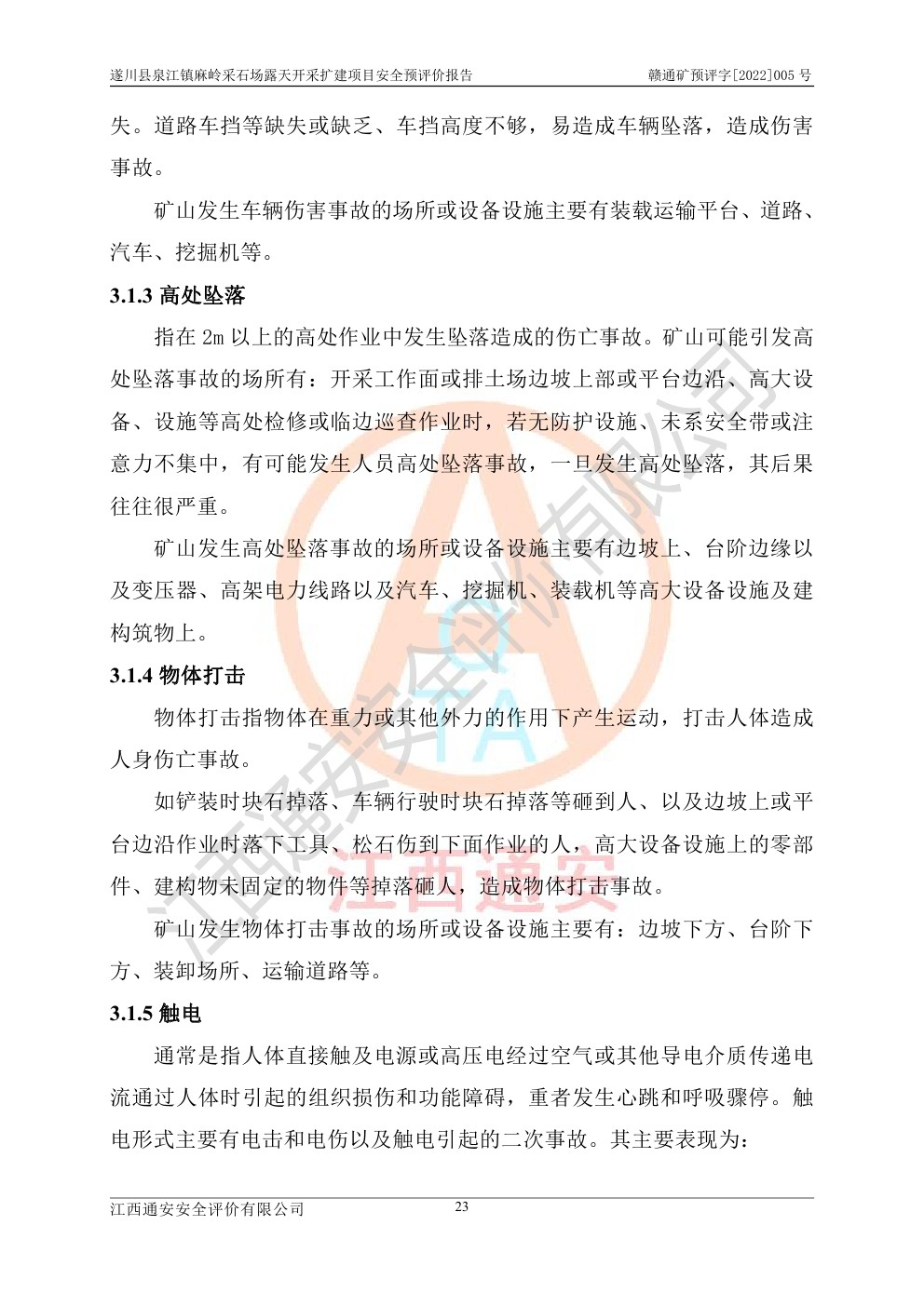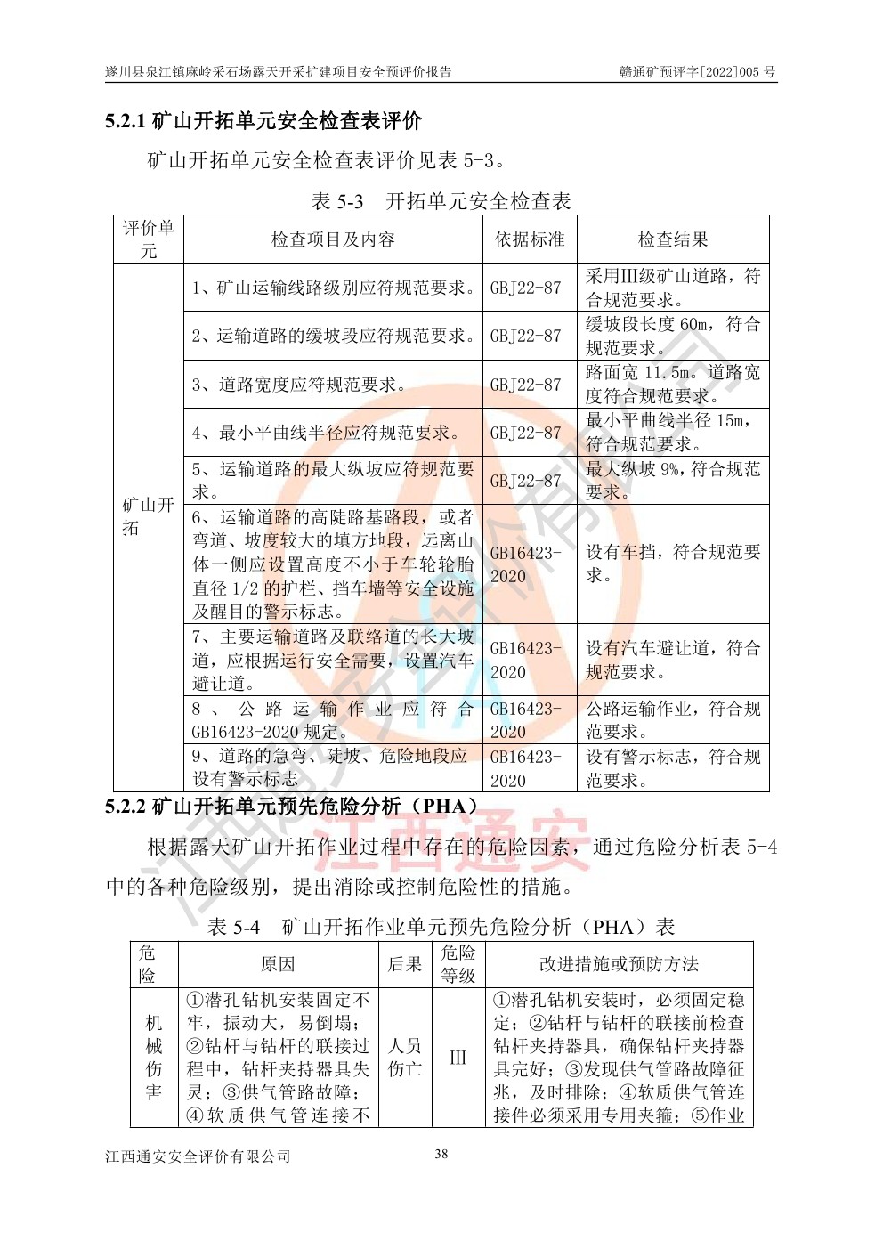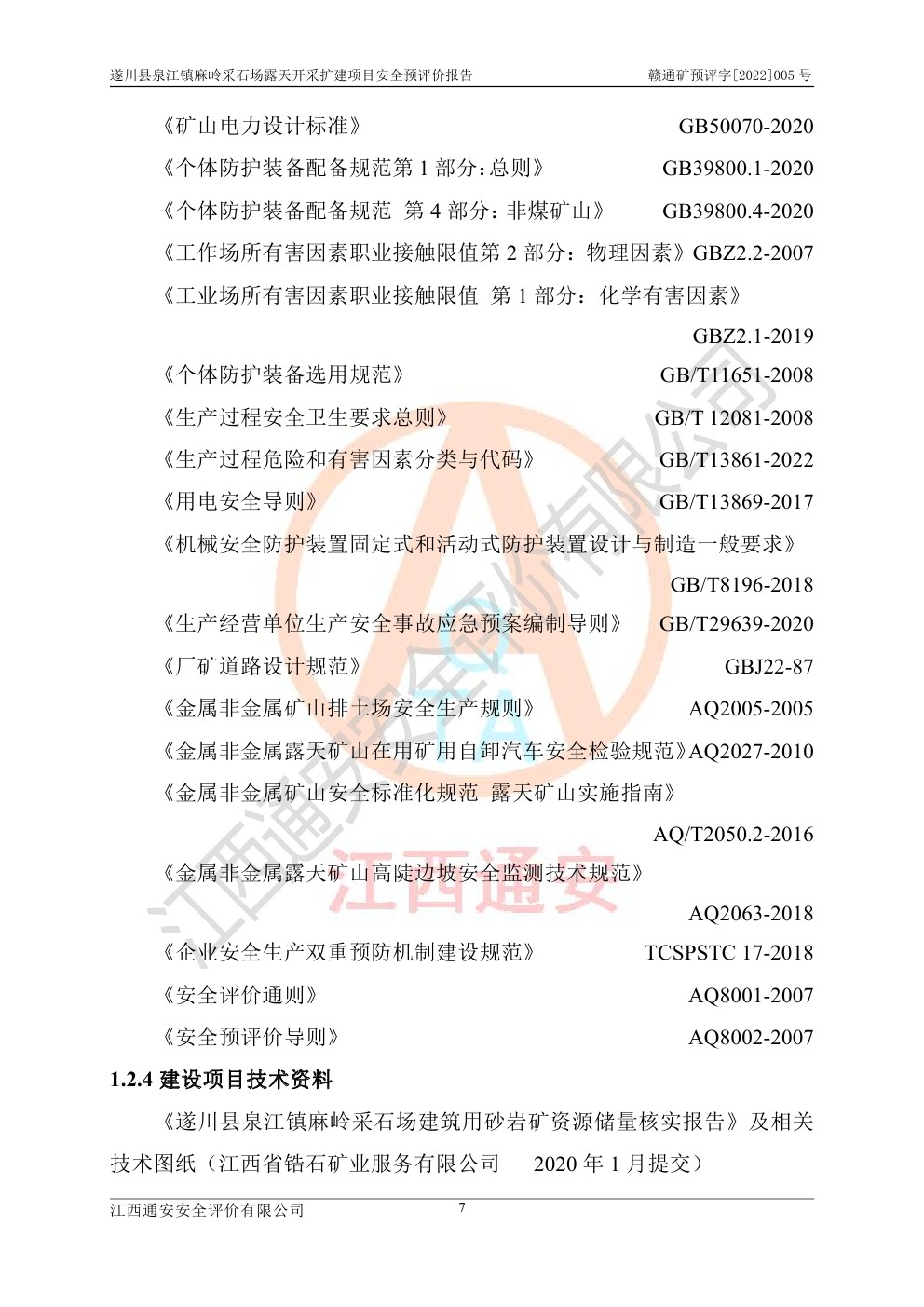 遂川县泉江镇麻岭采石场露天开采扩建项目安全预评价报告