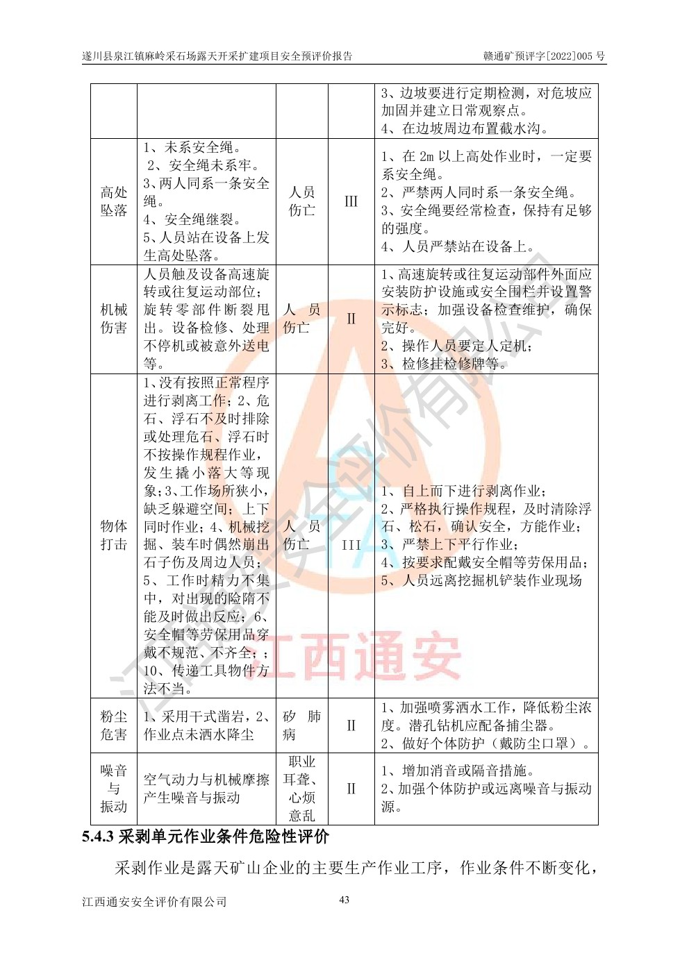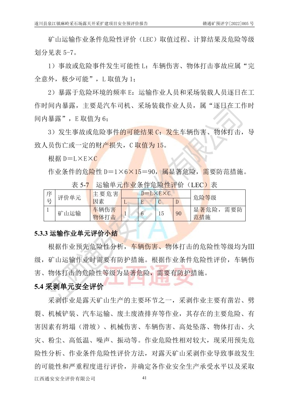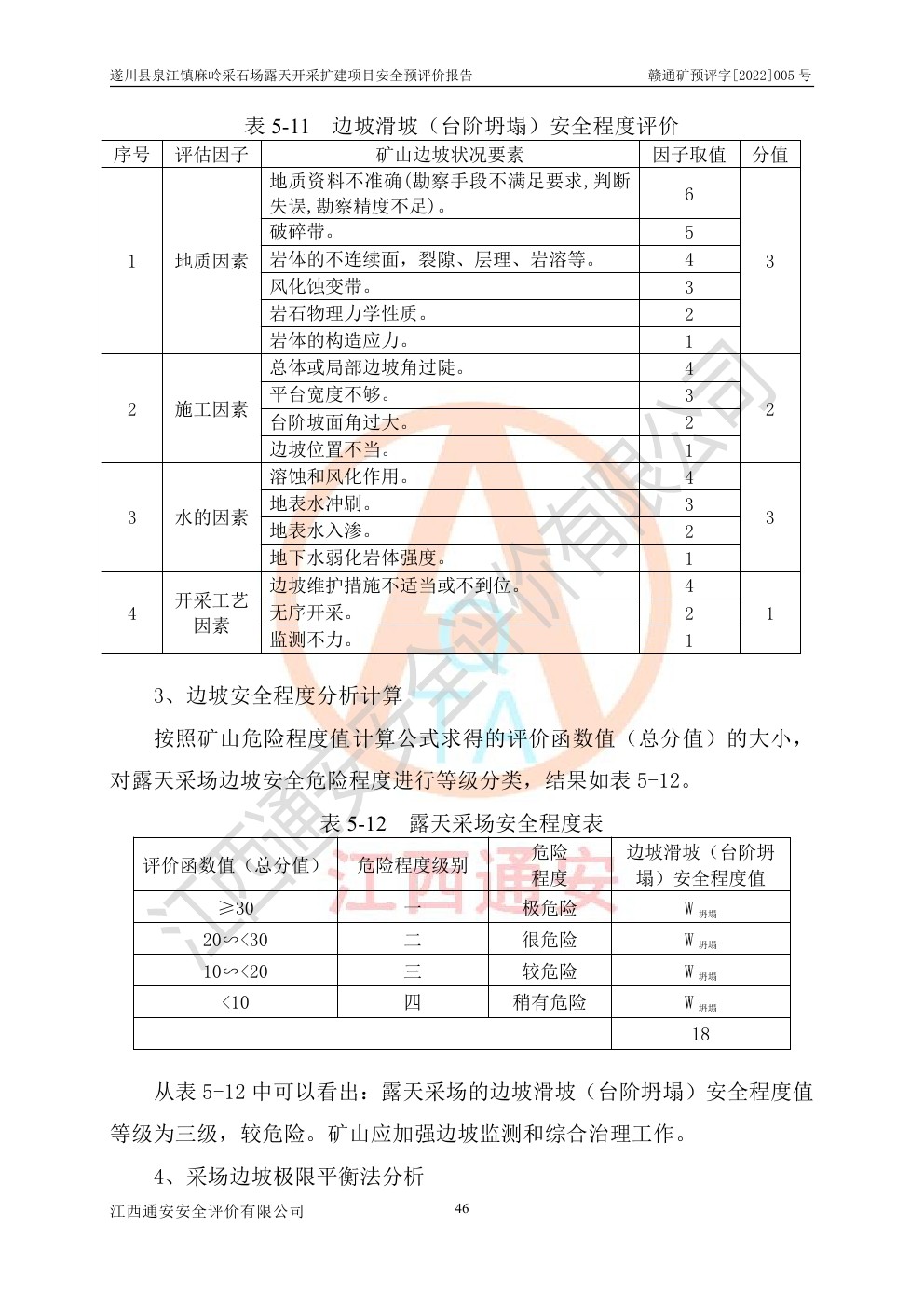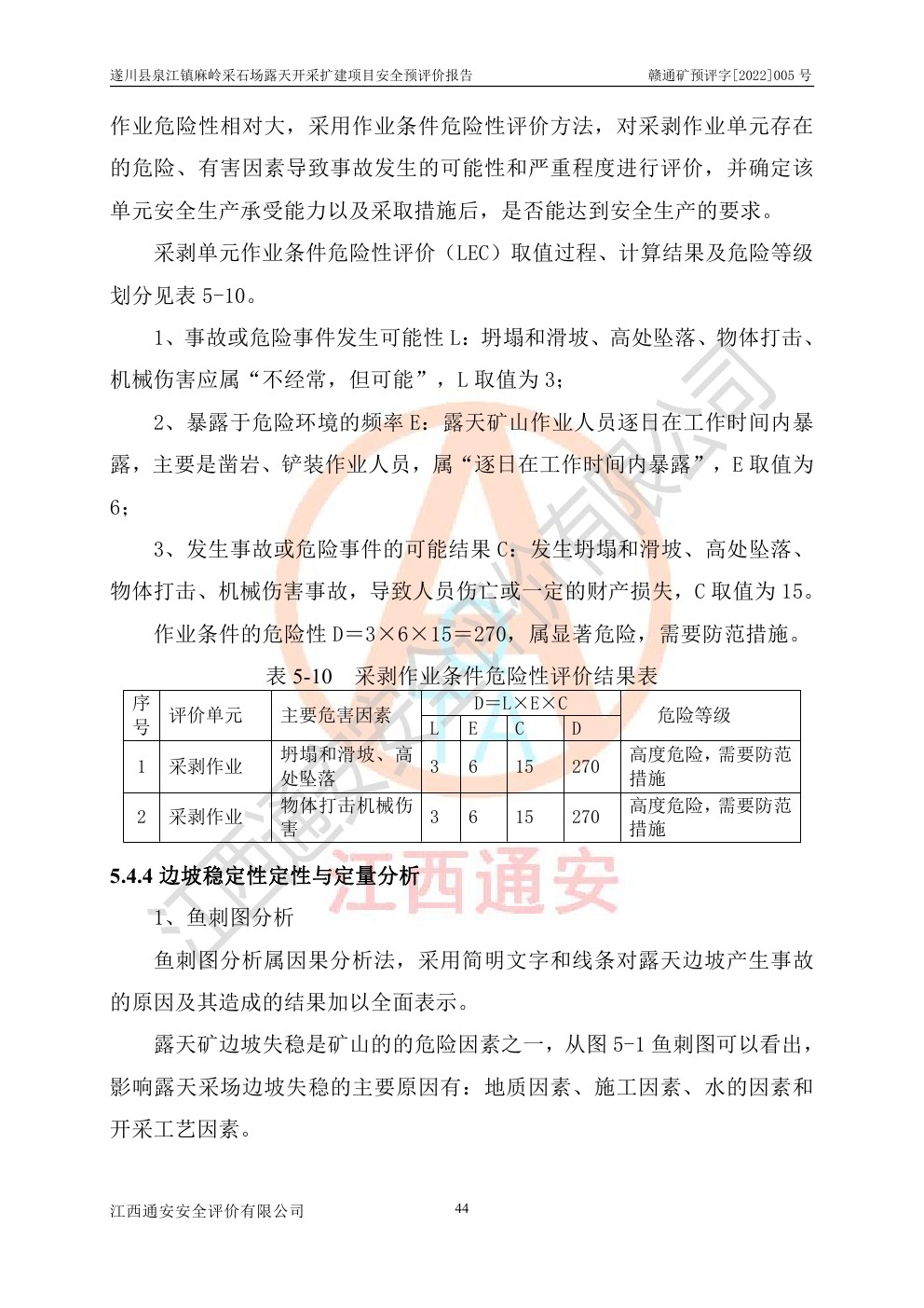 遂川县泉江镇麻岭采石场露天开采扩建项目安全预评价报告