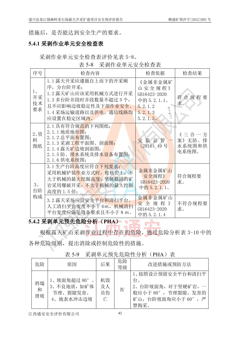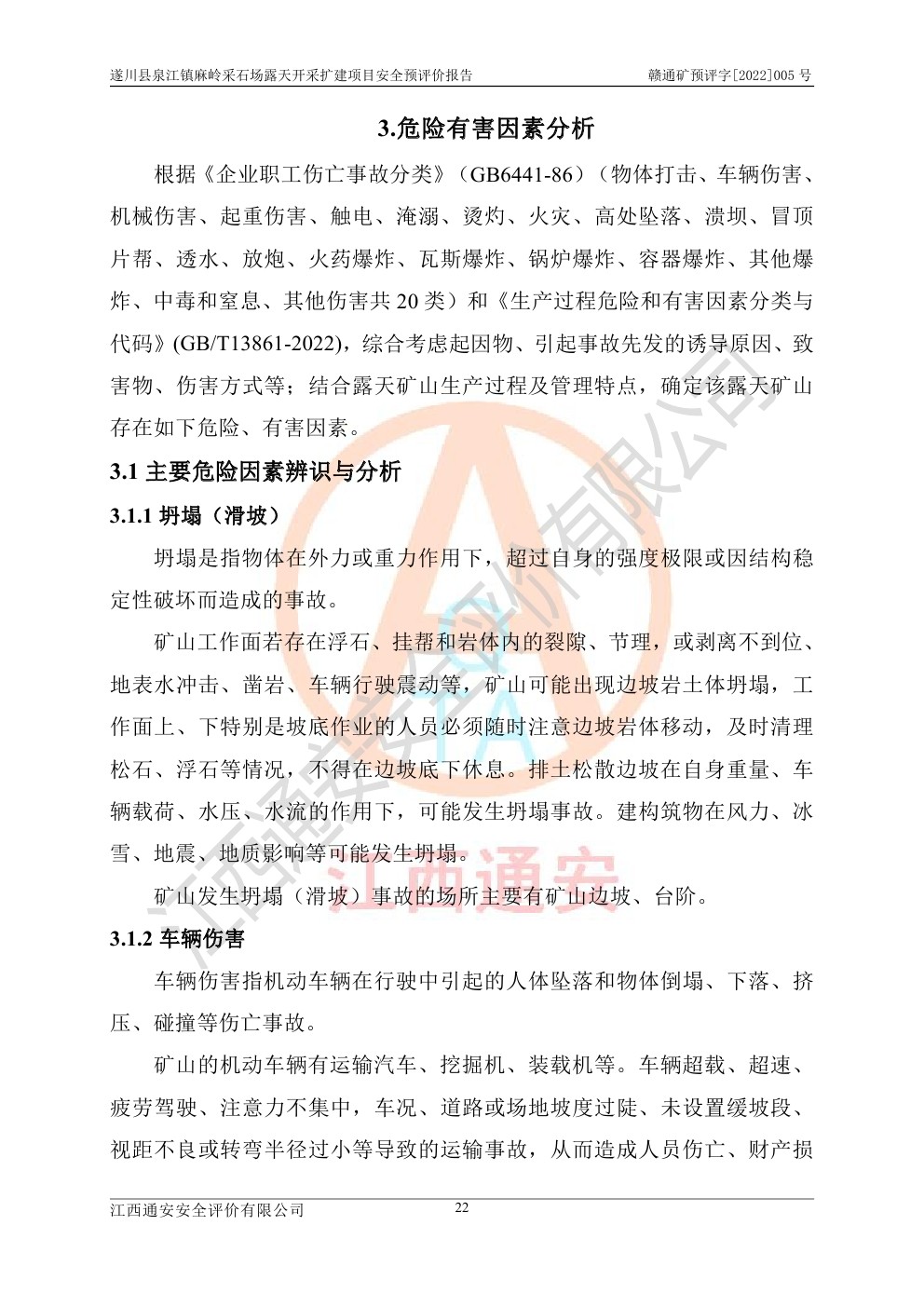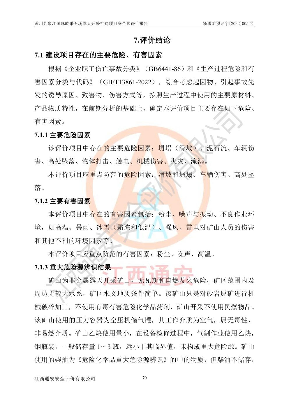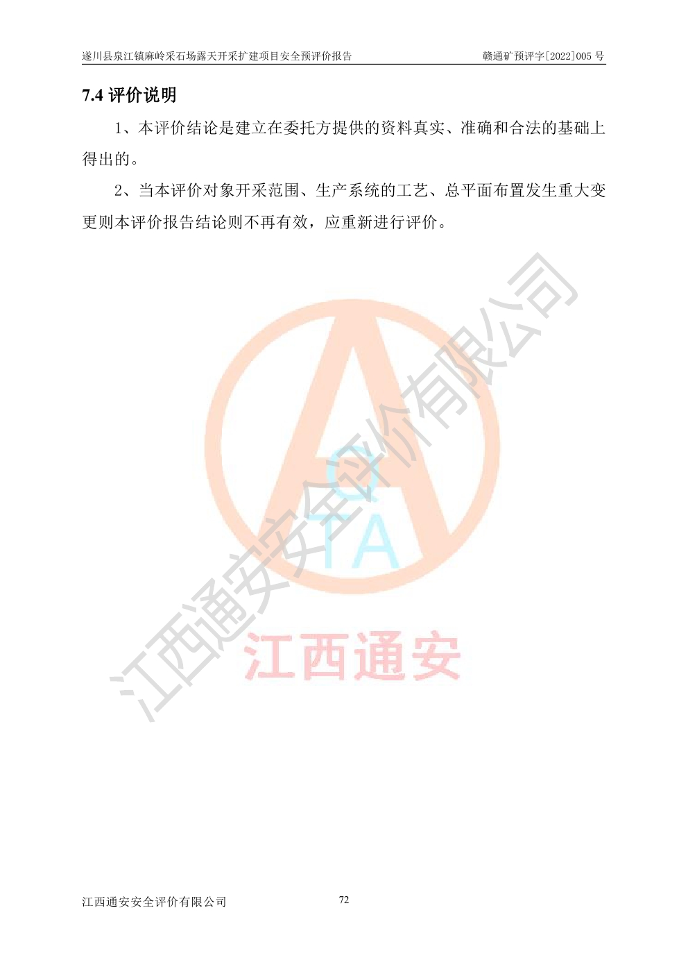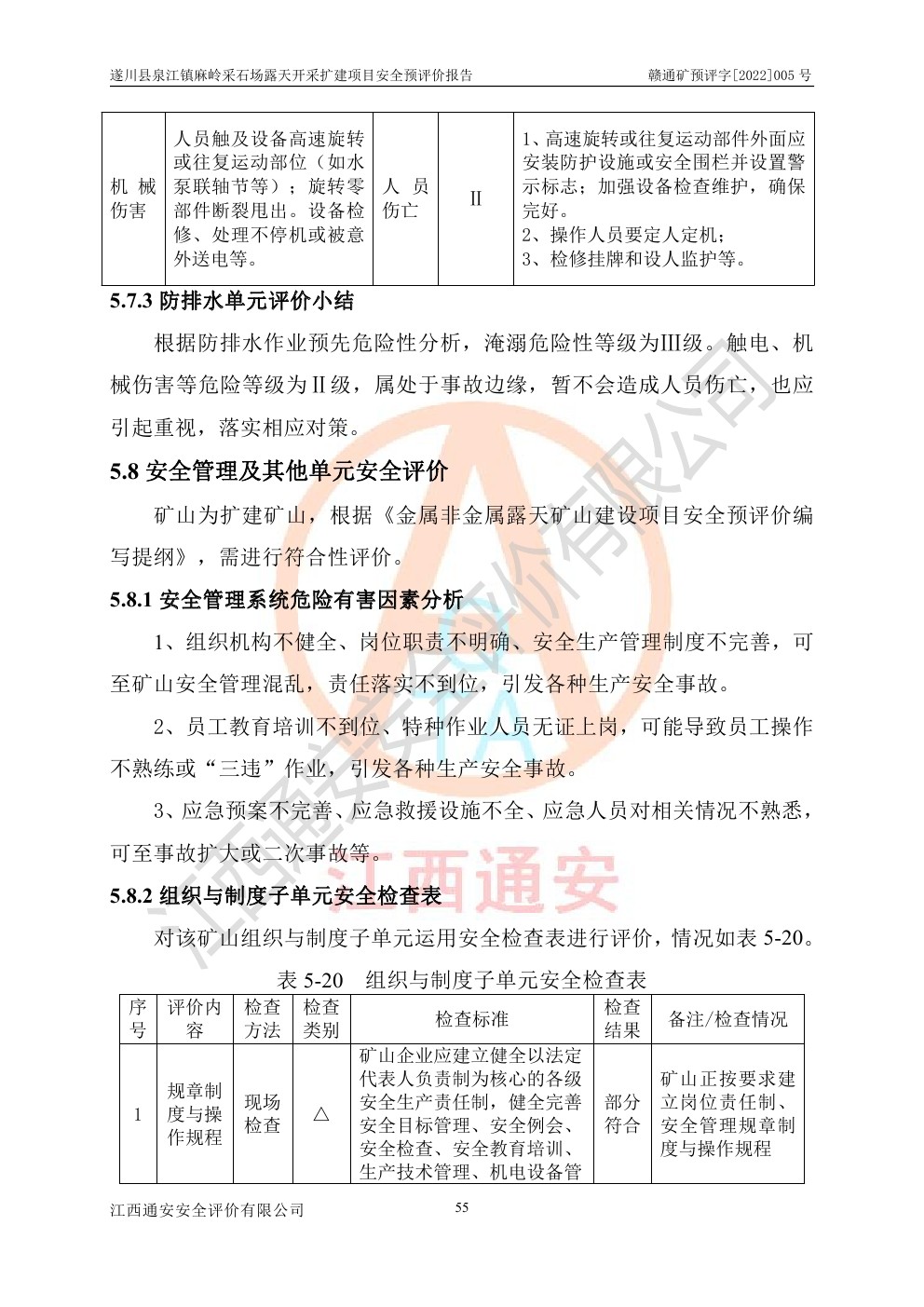 遂川县泉江镇麻岭采石场露天开采扩建项目安全预评价报告