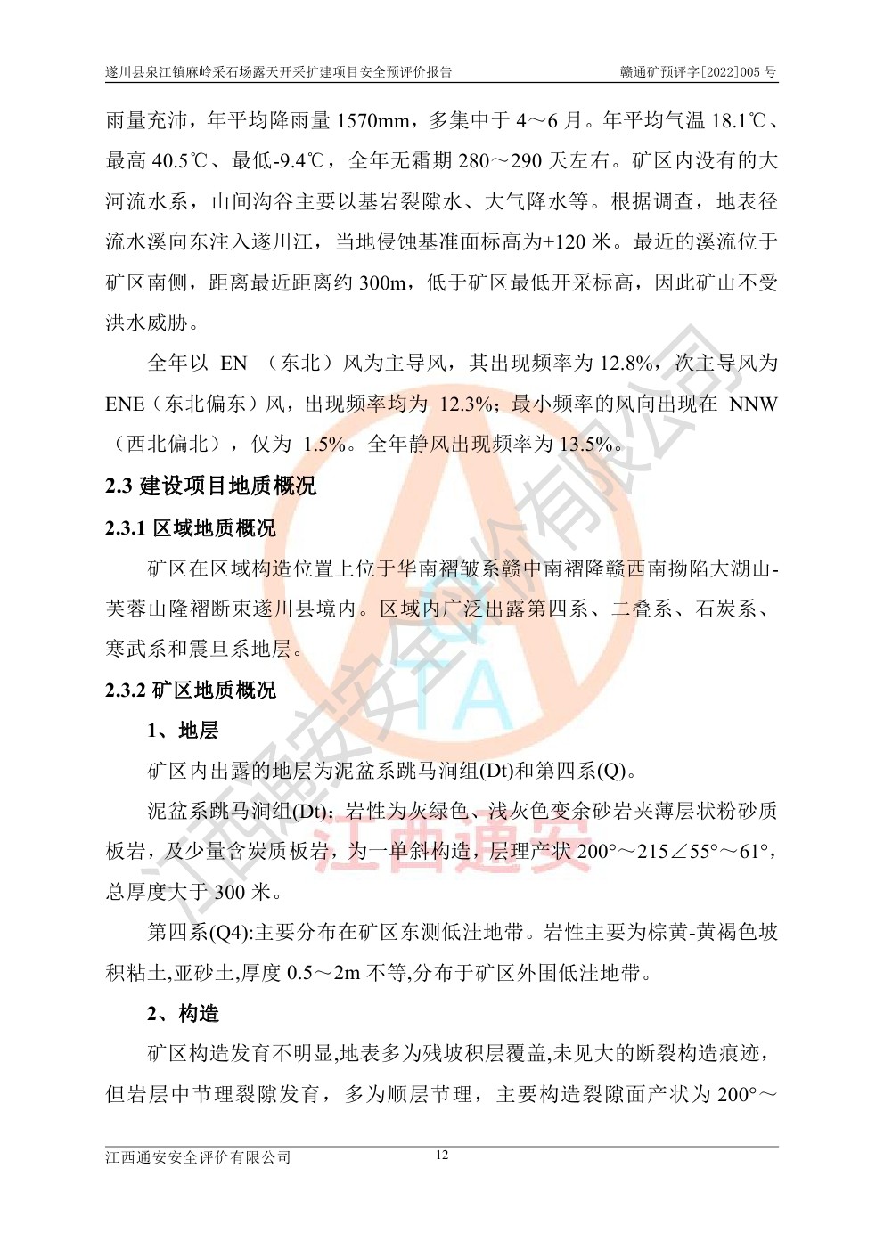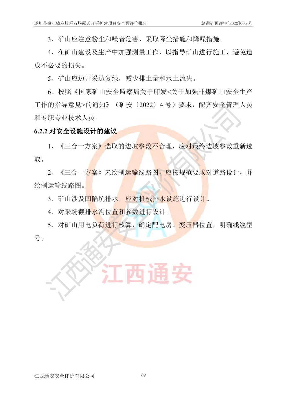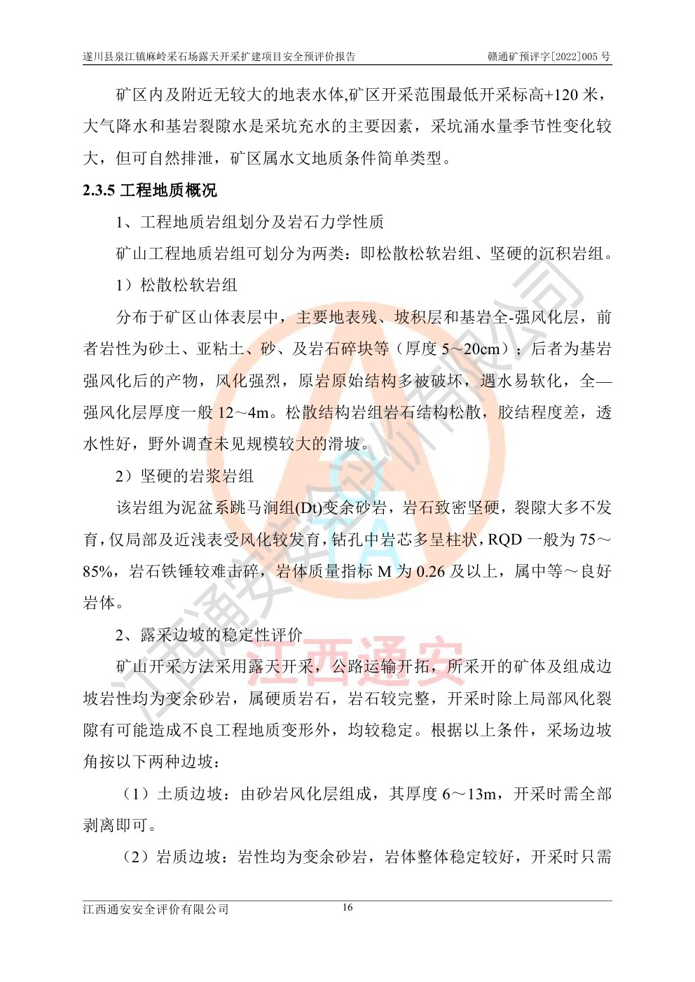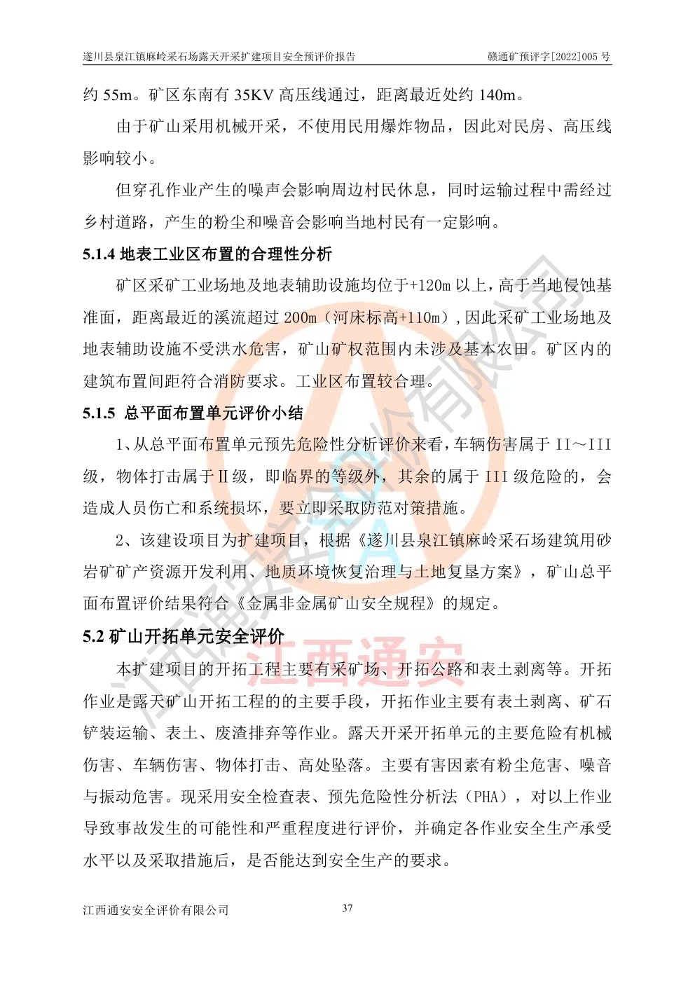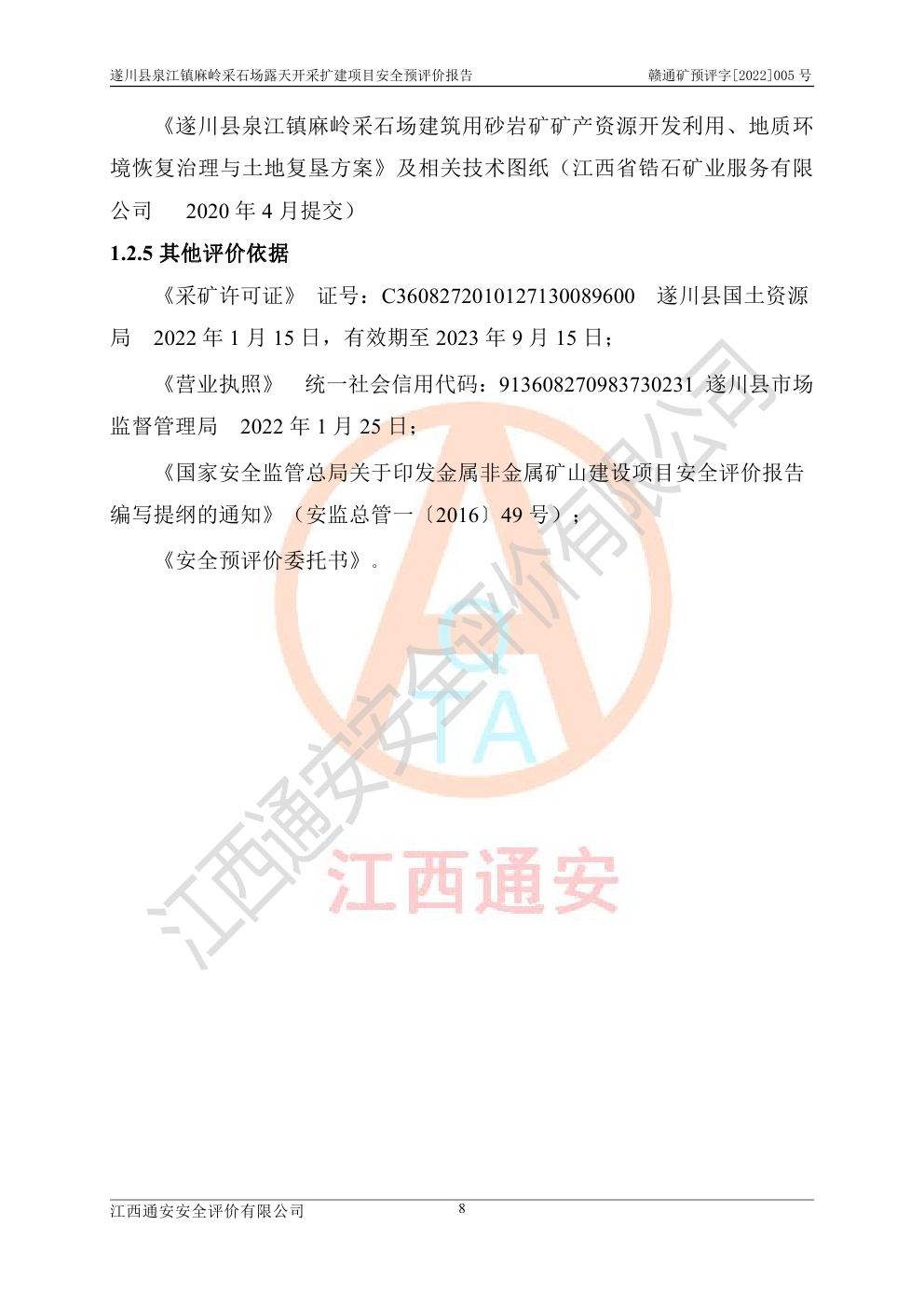 遂川县泉江镇麻岭采石场露天开采扩建项目安全预评价报告