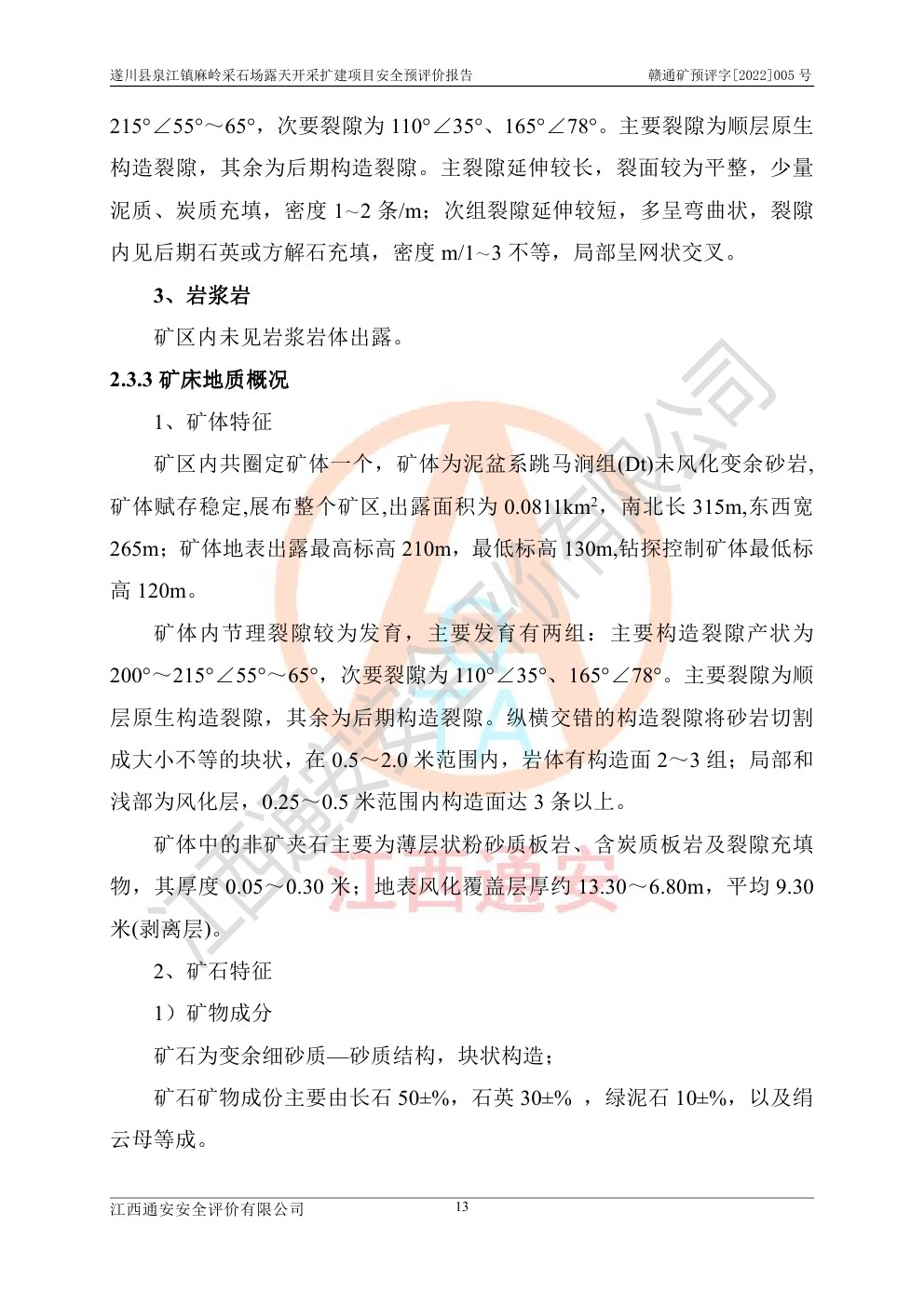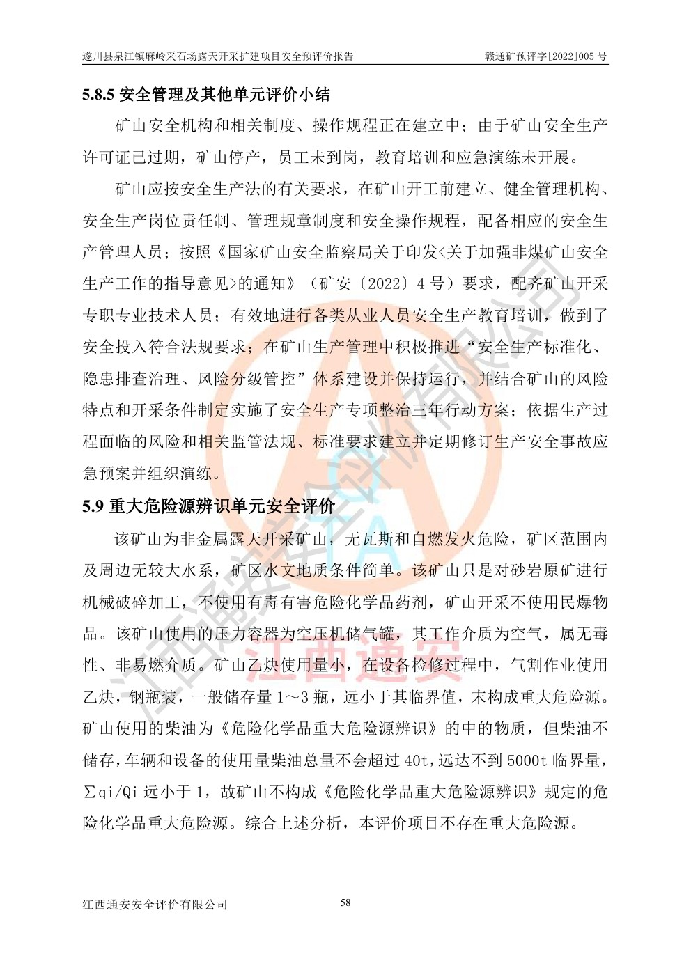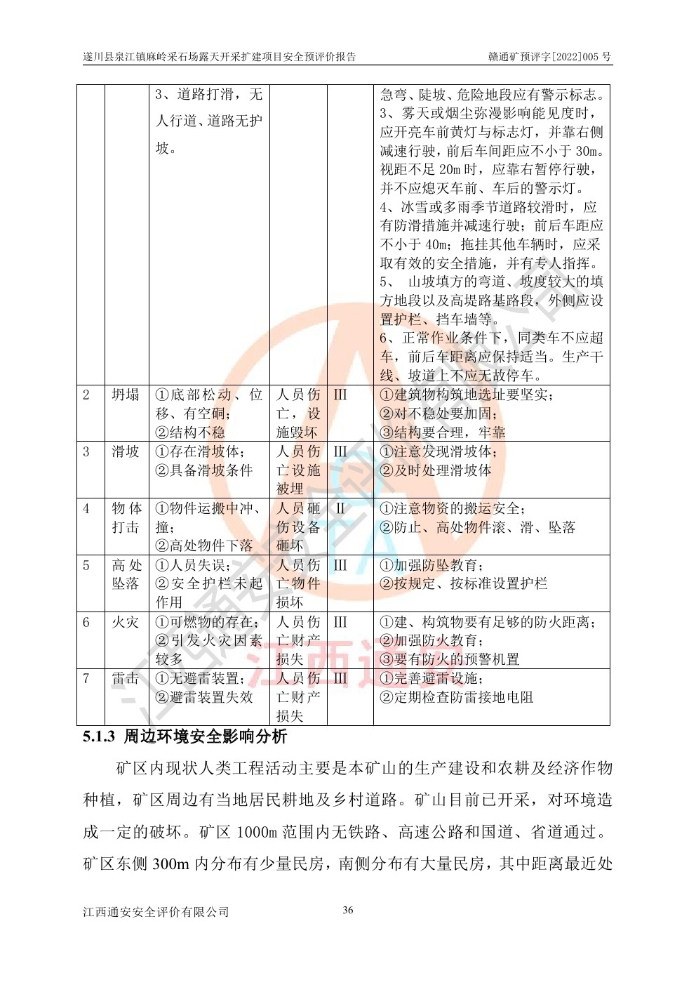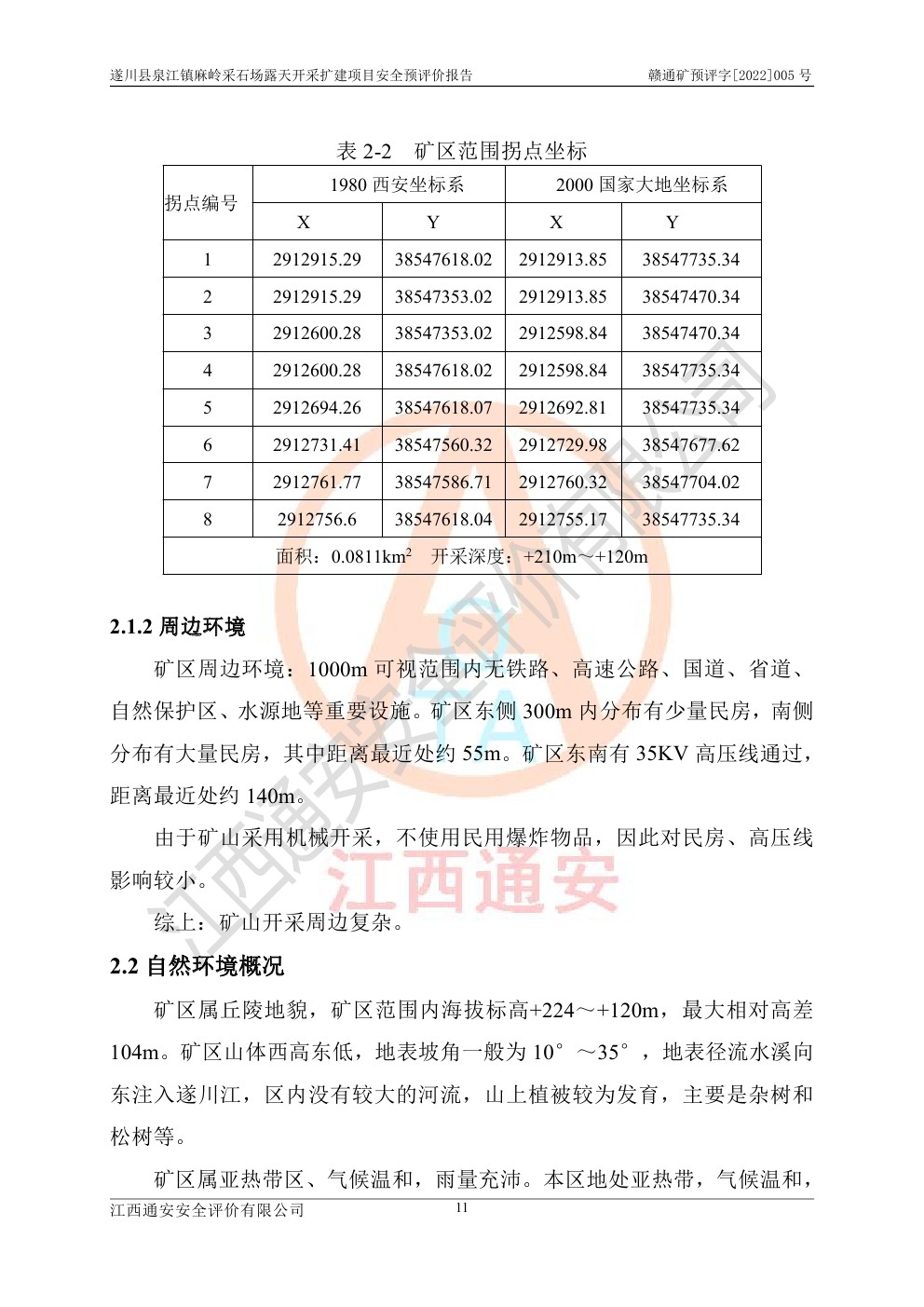 遂川县泉江镇麻岭采石场露天开采扩建项目安全预评价报告