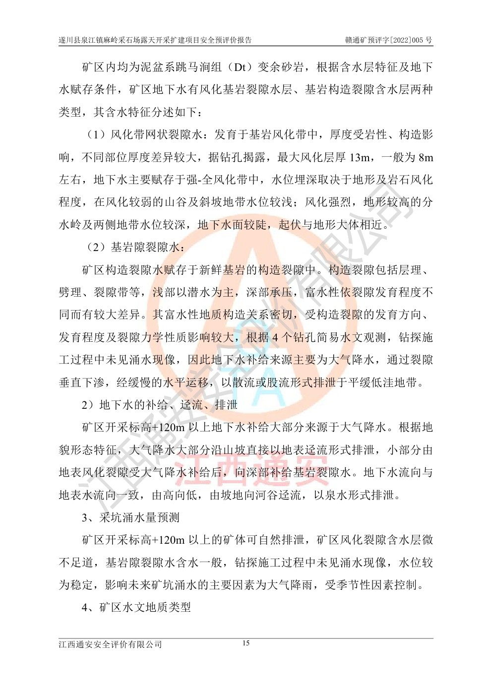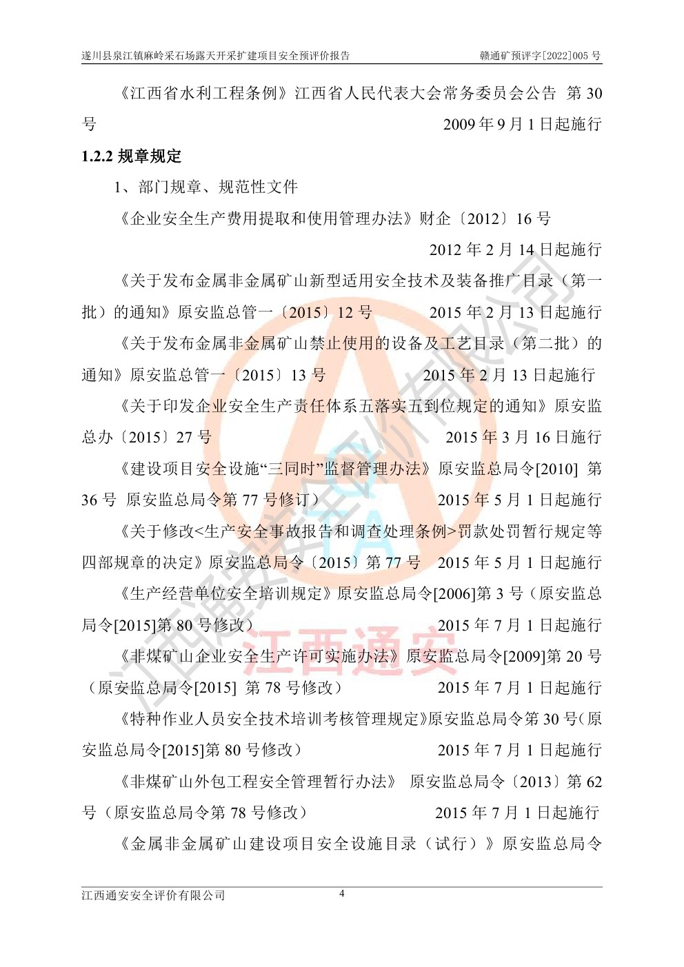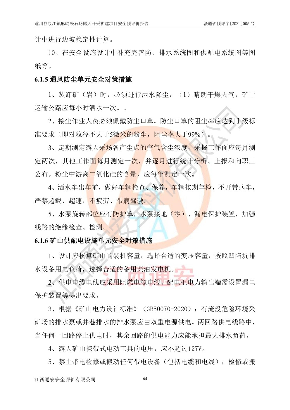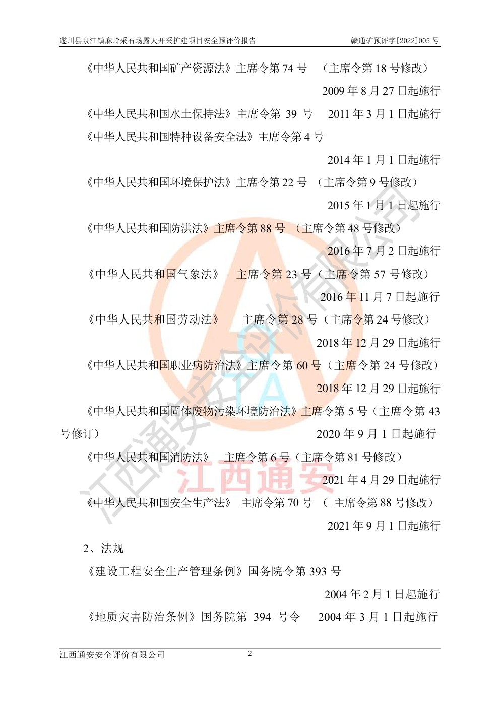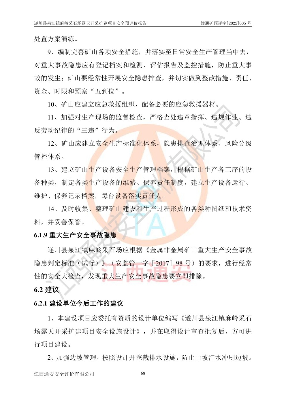 遂川县泉江镇麻岭采石场露天开采扩建项目安全预评价报告