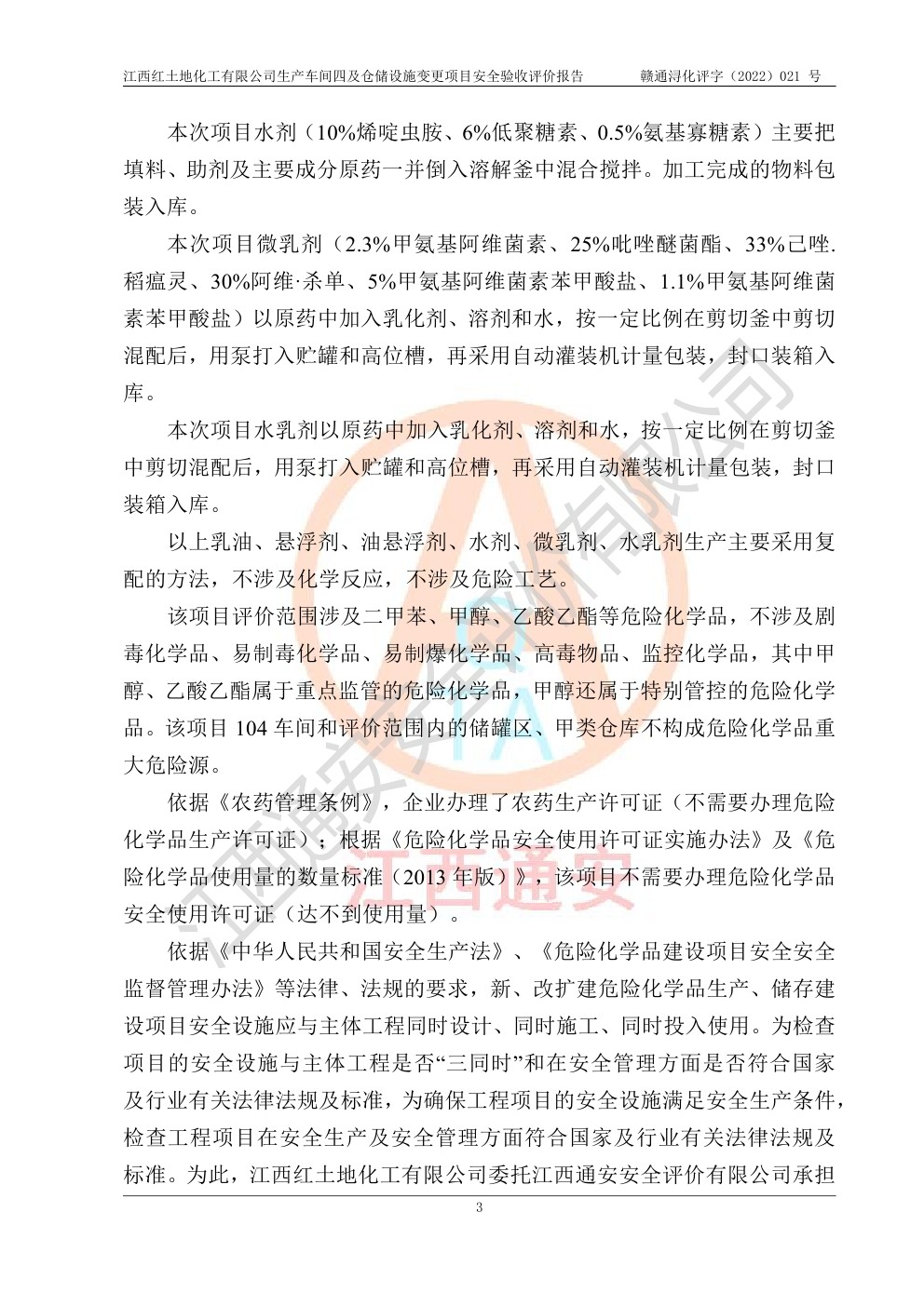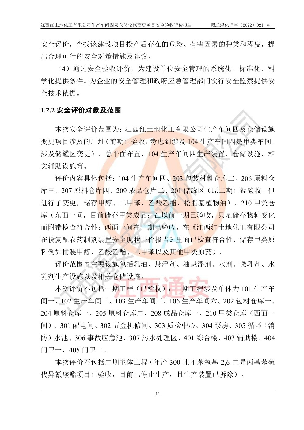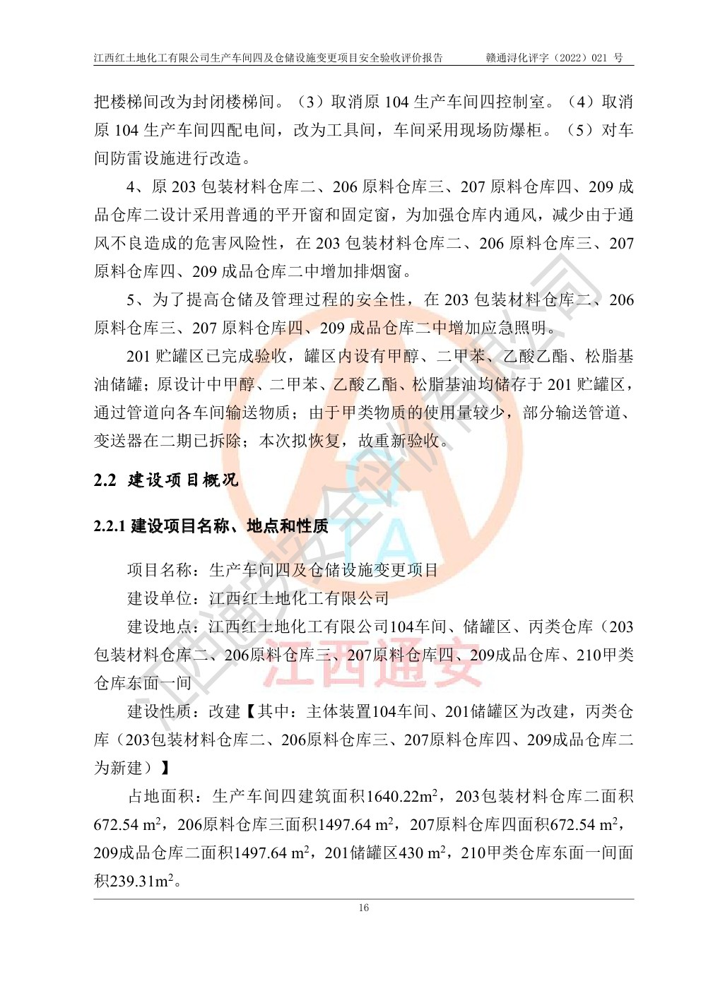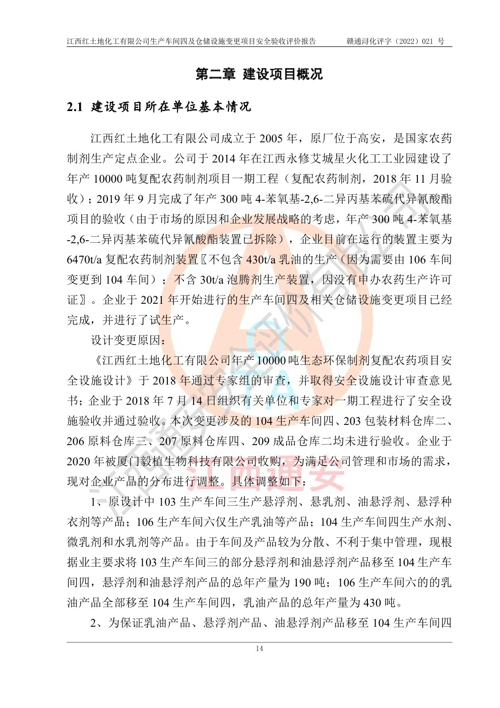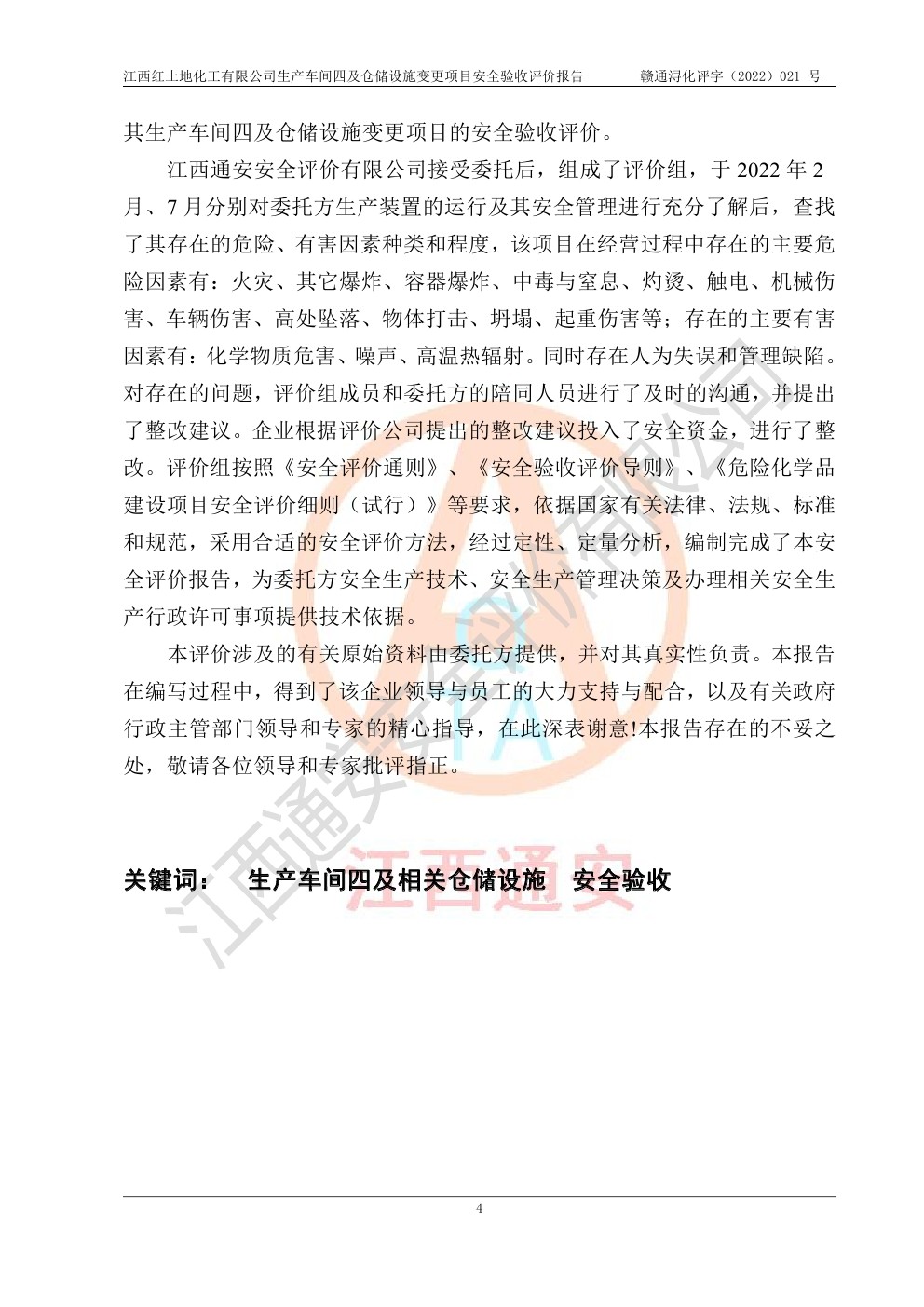 江西红土地化工有限公司生产车间四及仓储设施变更项目安全验收评价报告