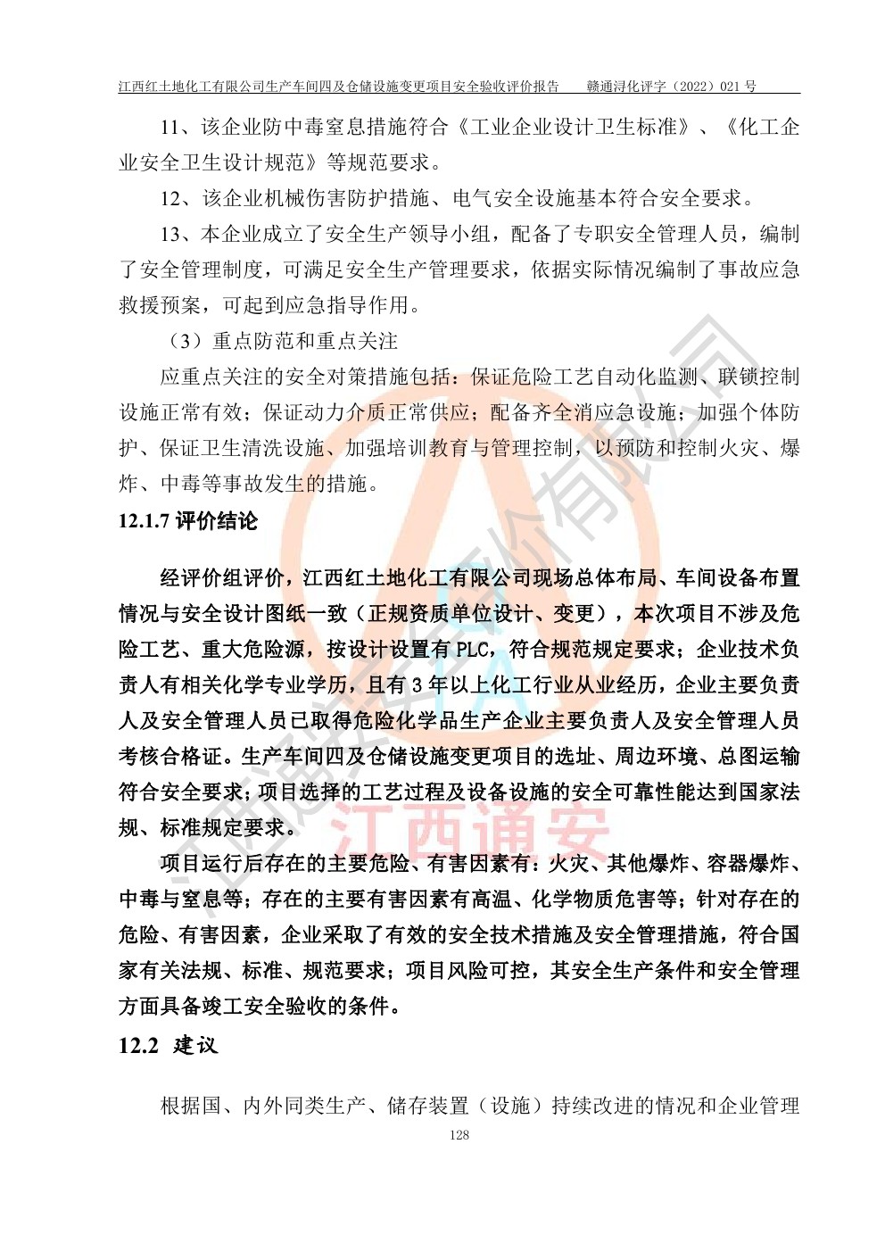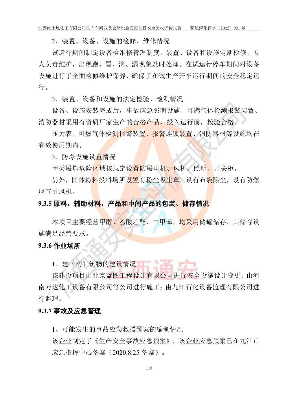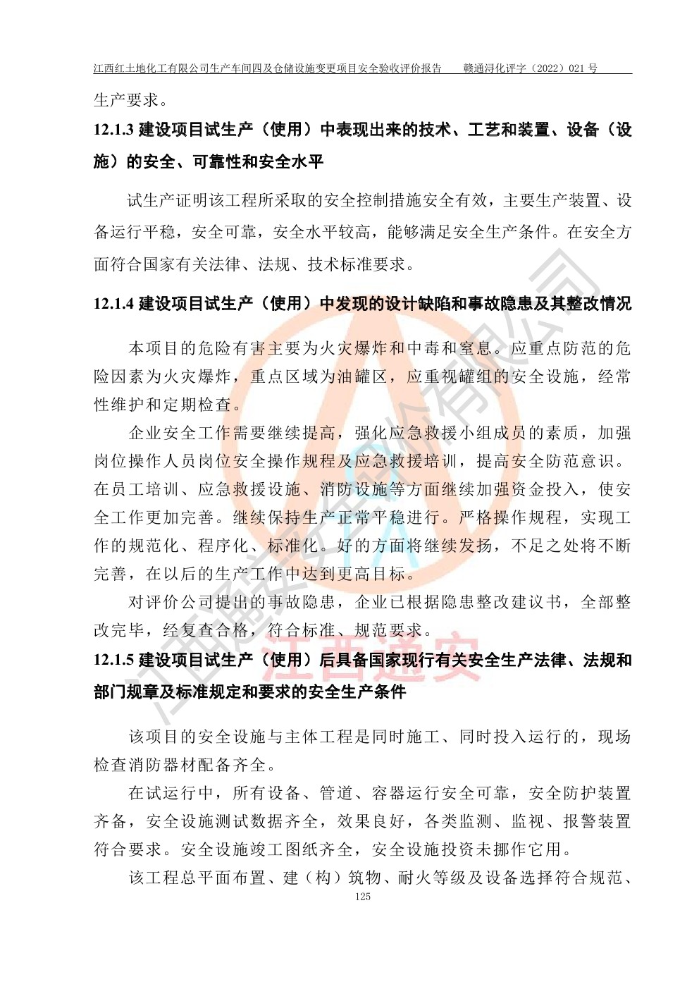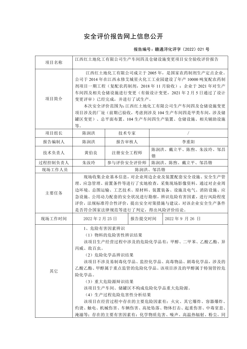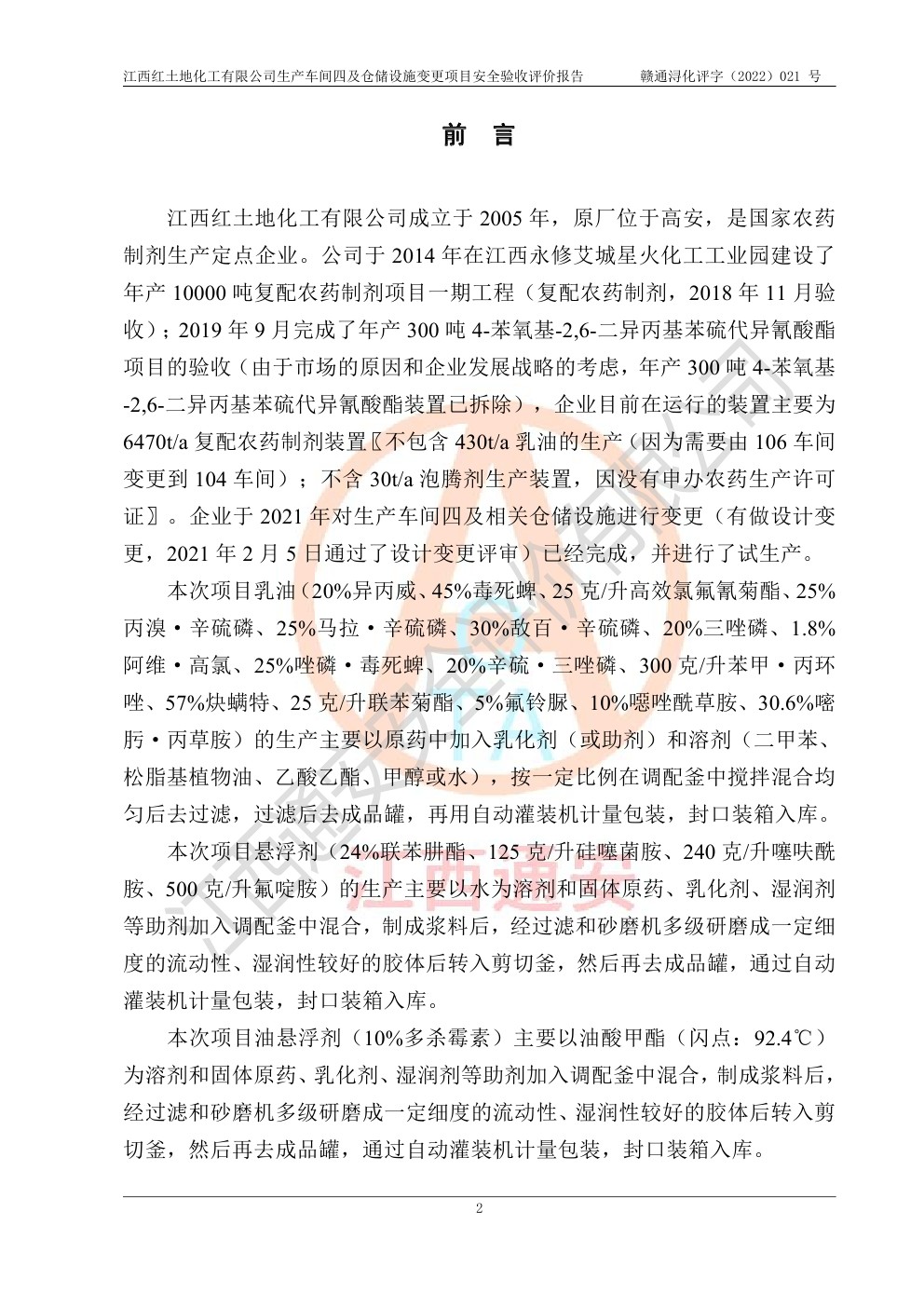江西红土地化工有限公司生产车间四及仓储设施变更项目安全验收评价报告