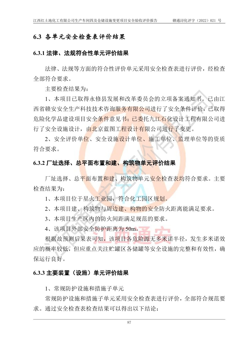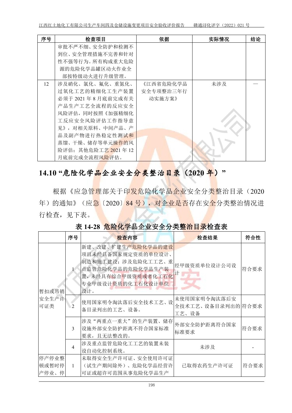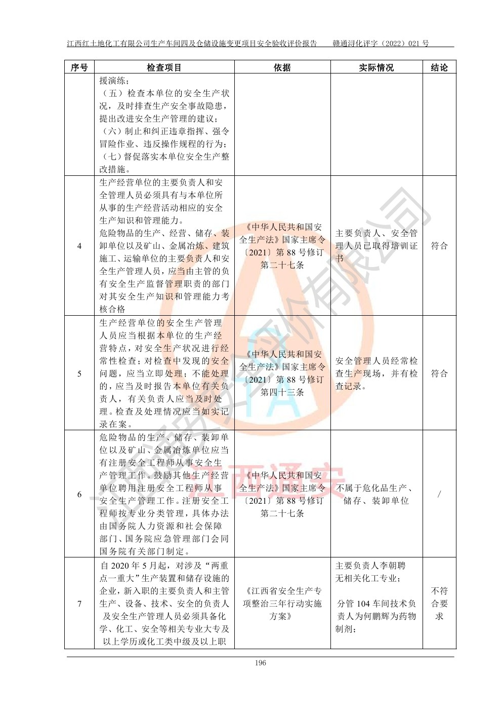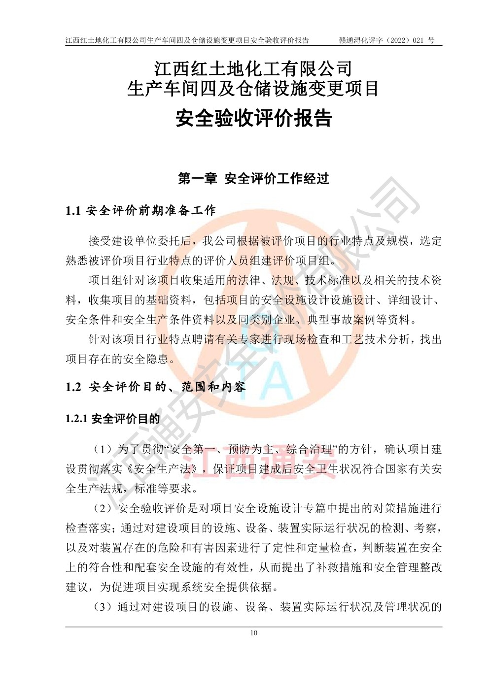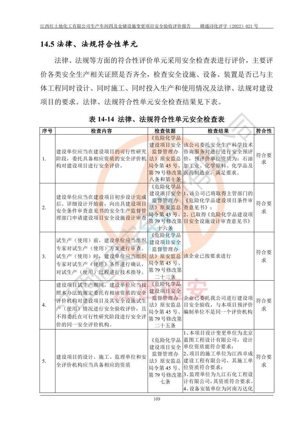 江西红土地化工有限公司生产车间四及仓储设施变更项目安全验收评价报告
