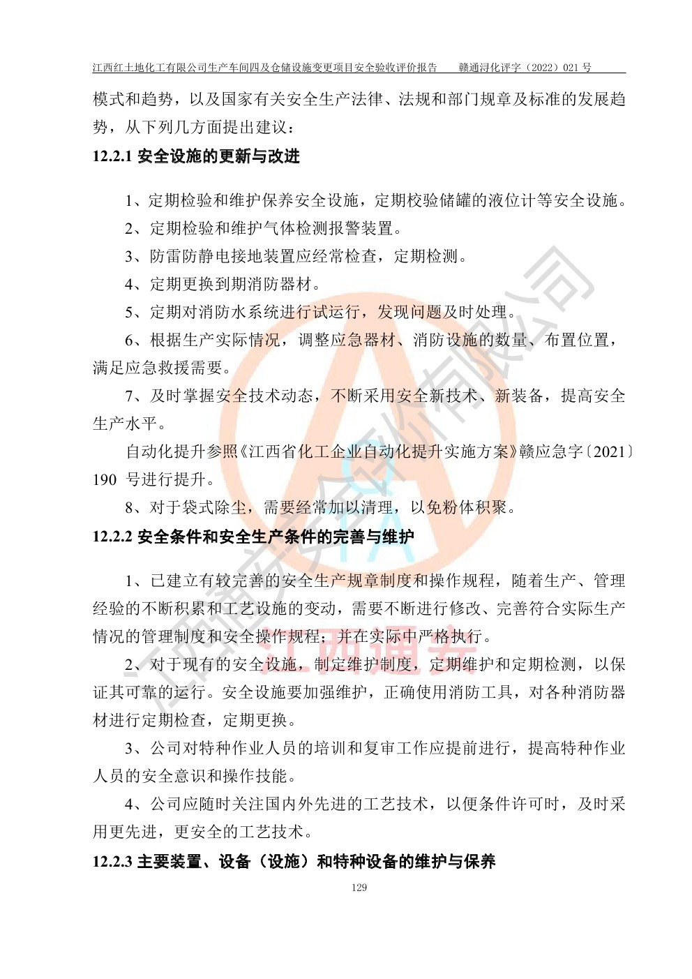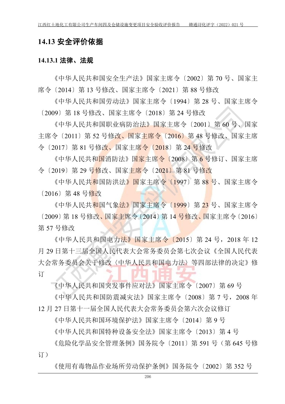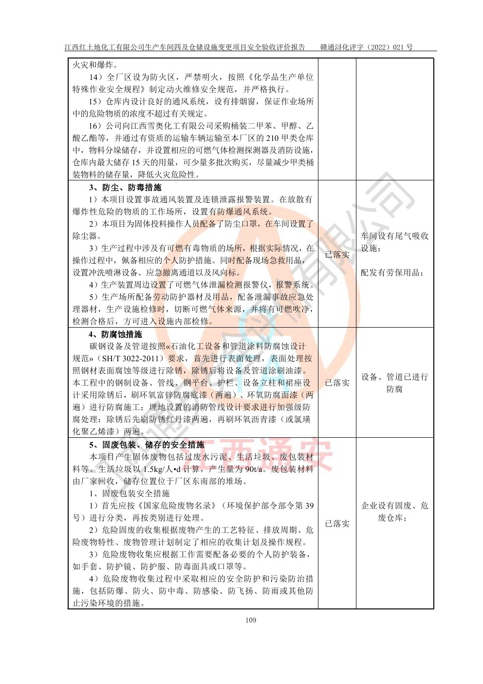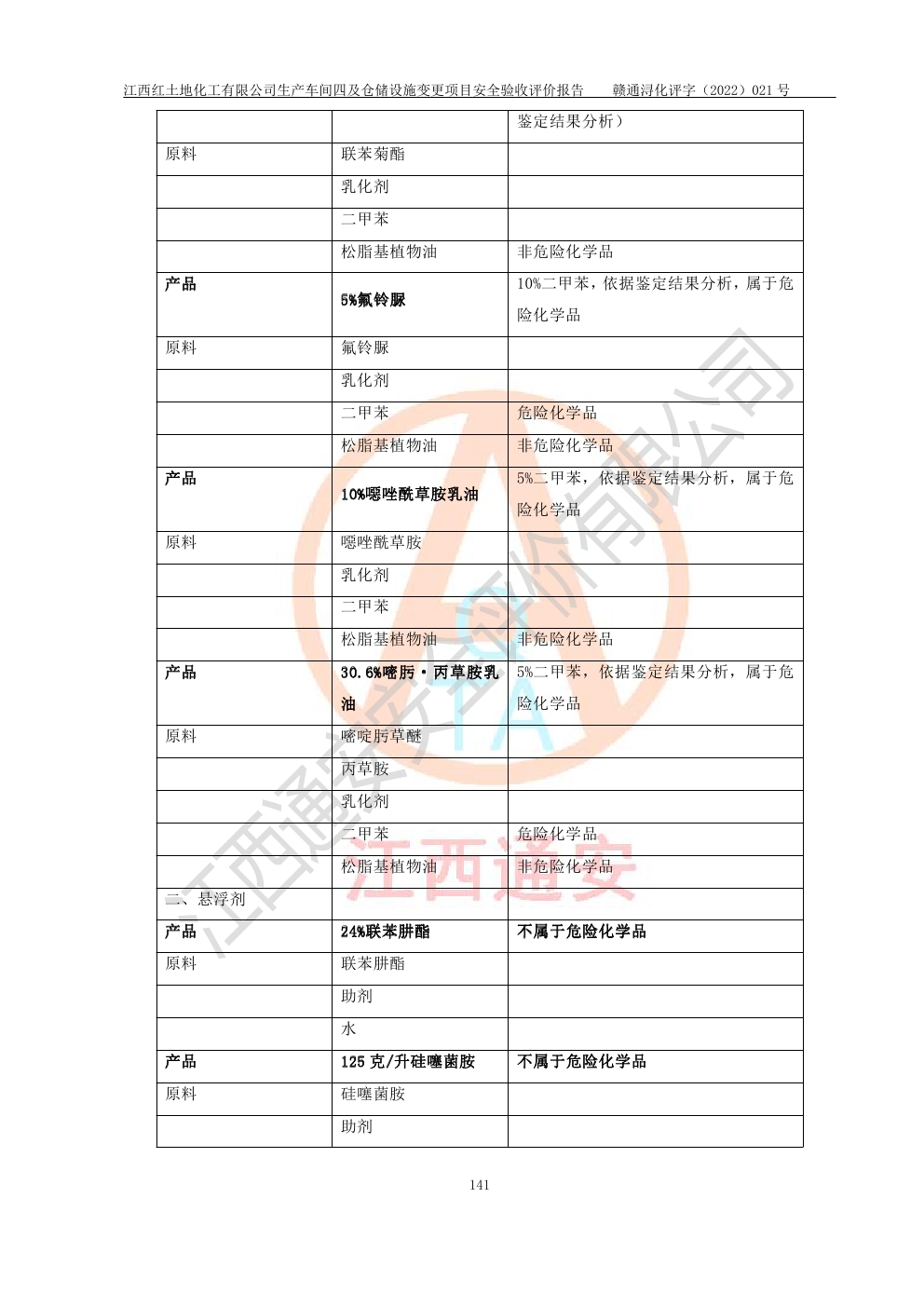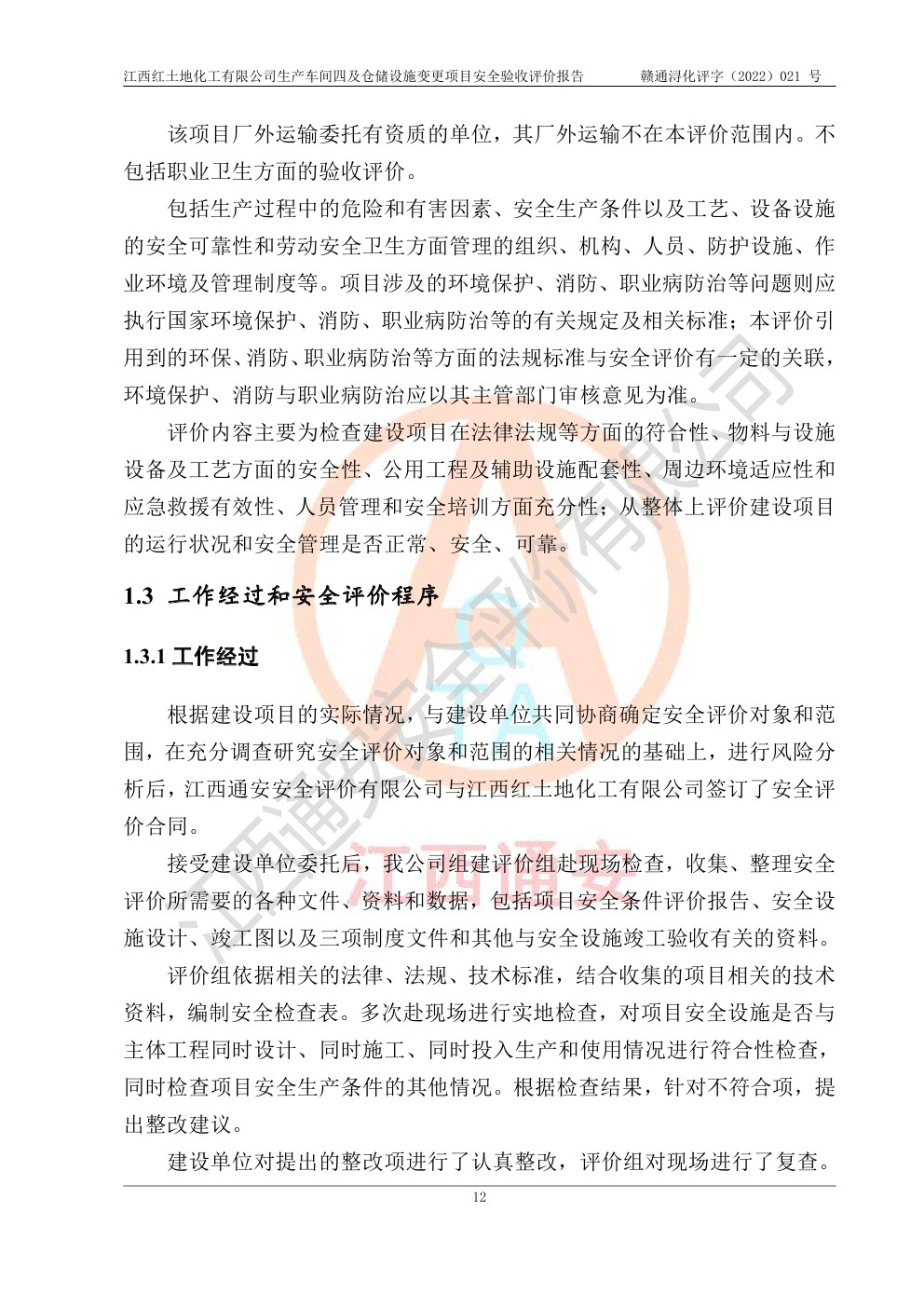 江西红土地化工有限公司生产车间四及仓储设施变更项目安全验收评价报告