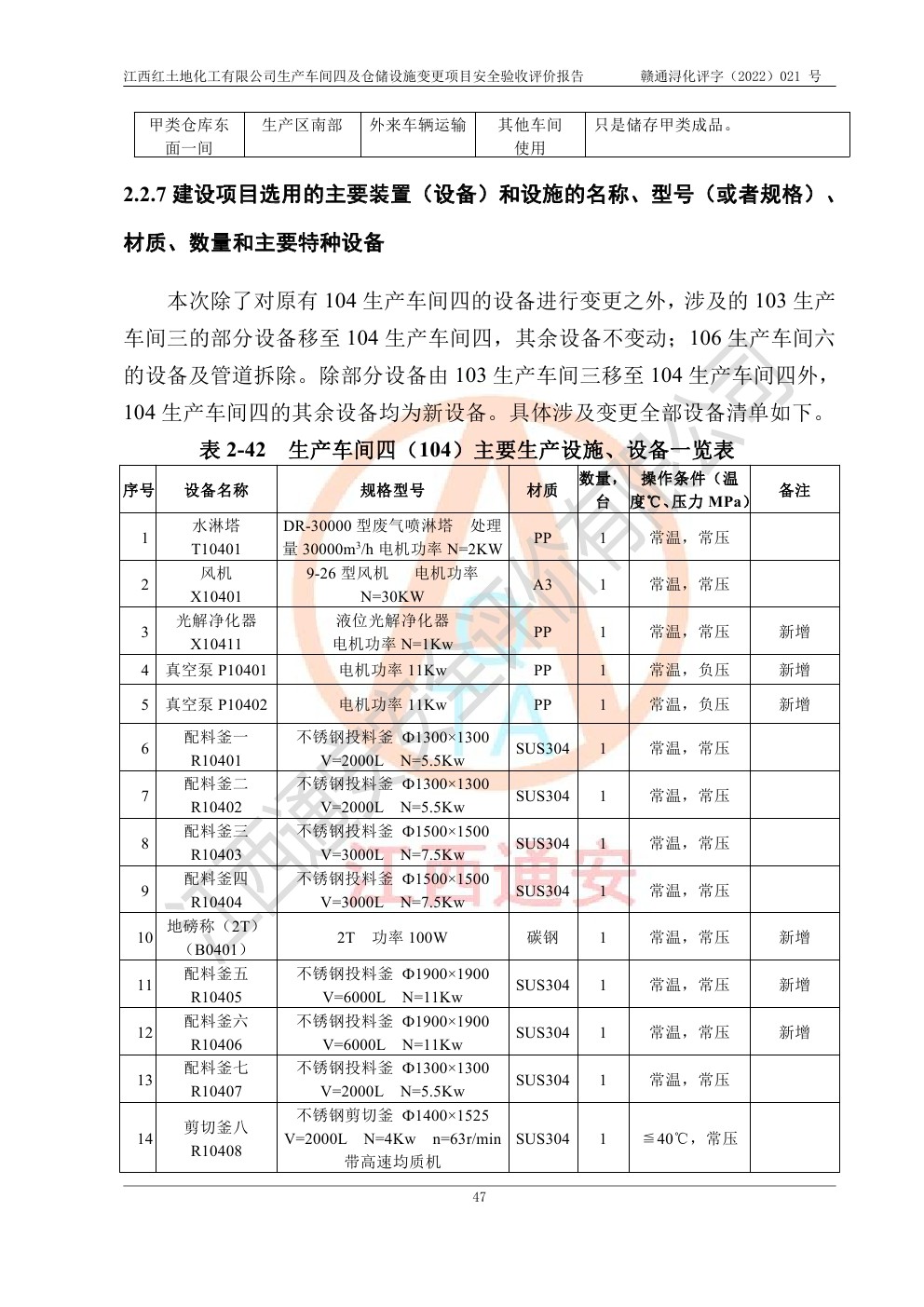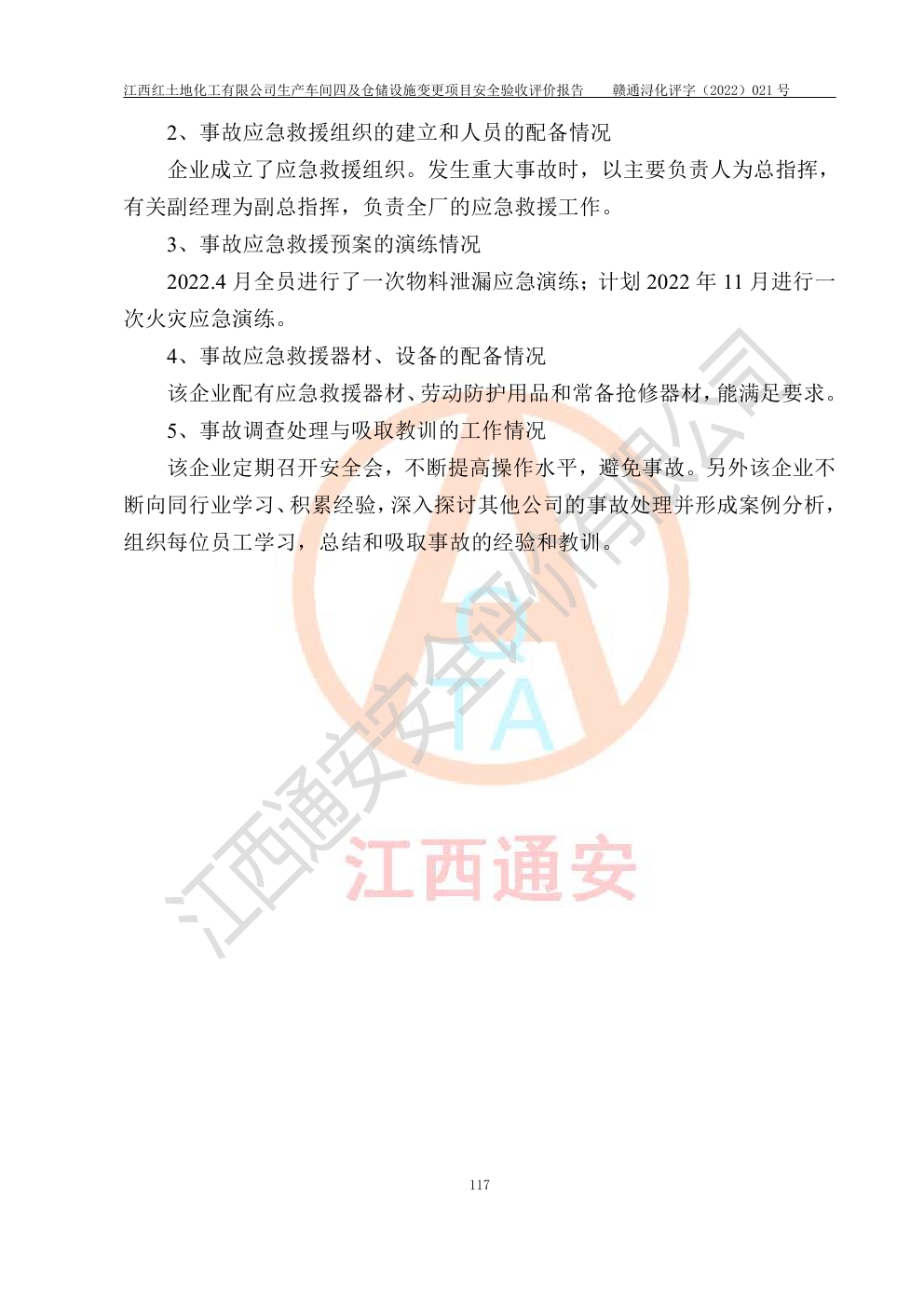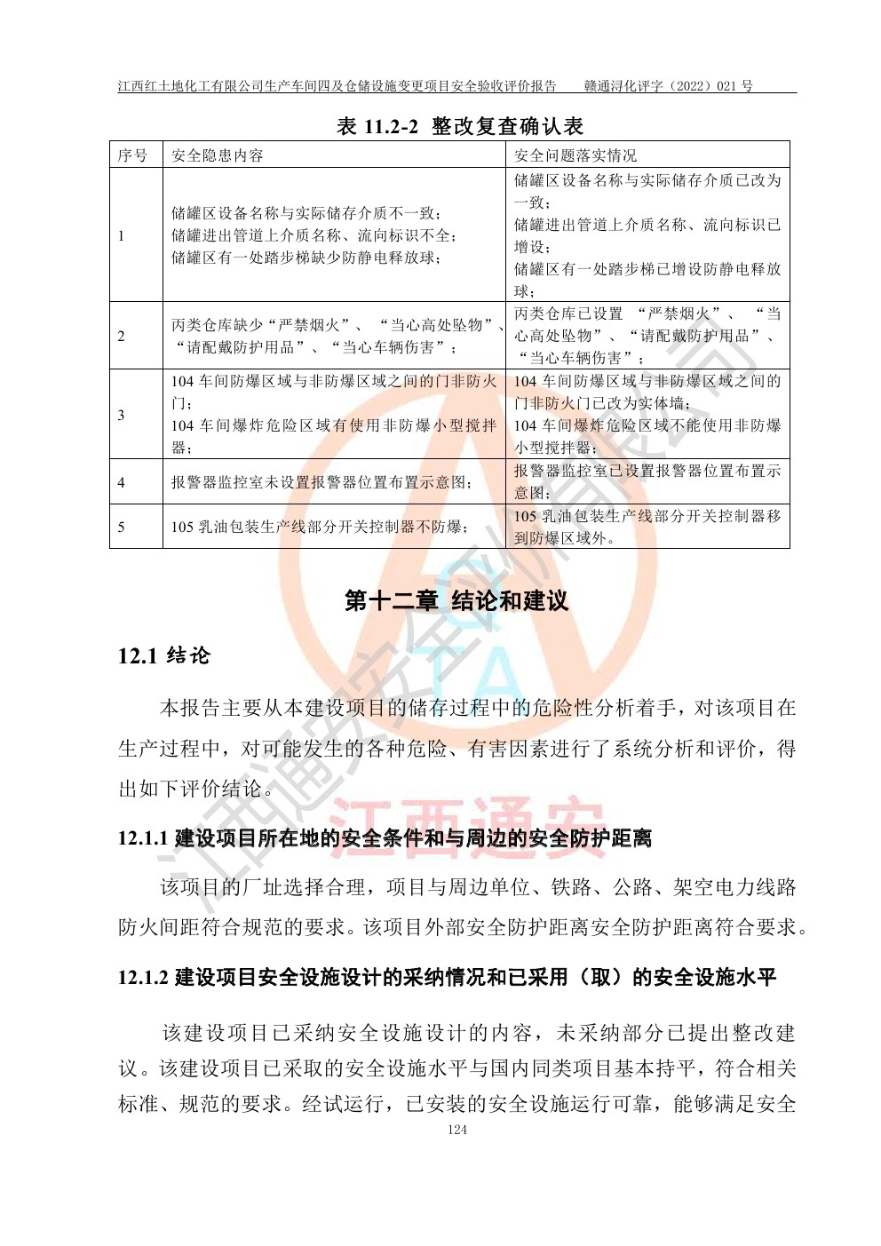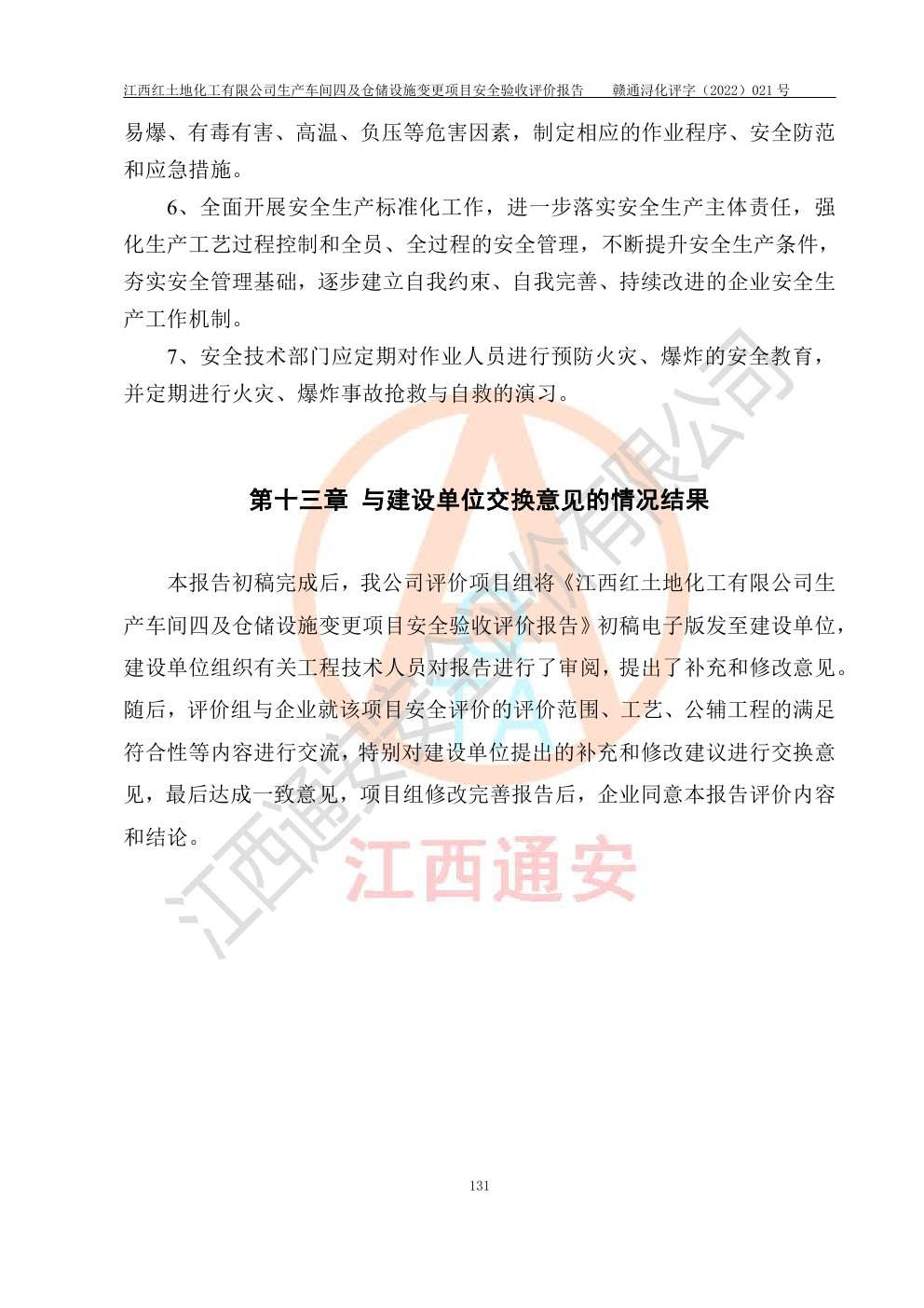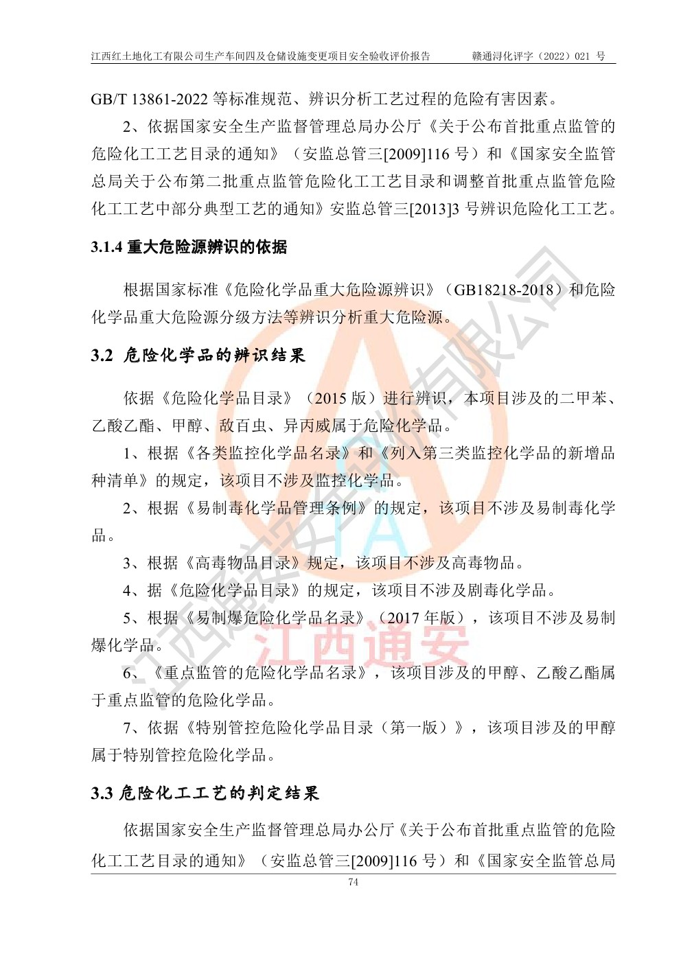 江西红土地化工有限公司生产车间四及仓储设施变更项目安全验收评价报告
