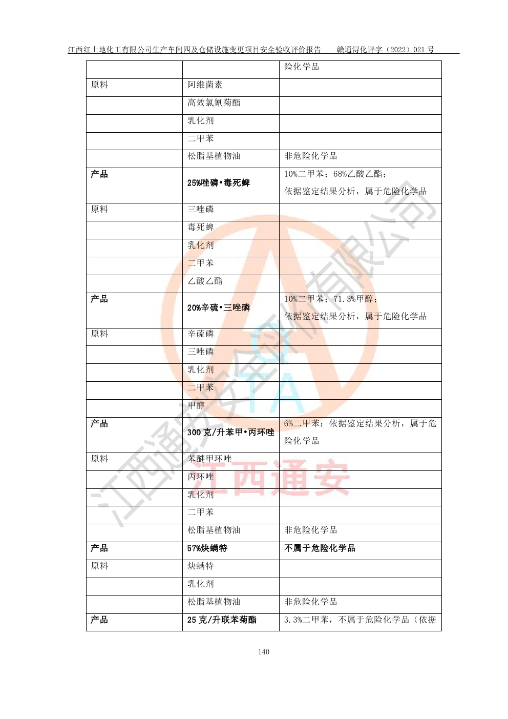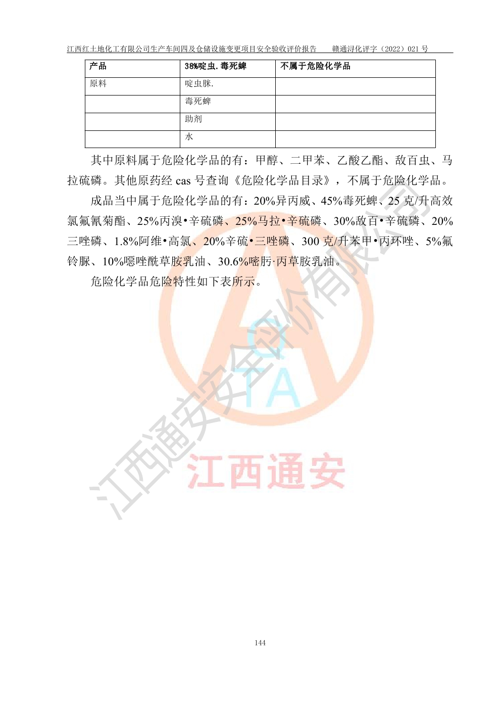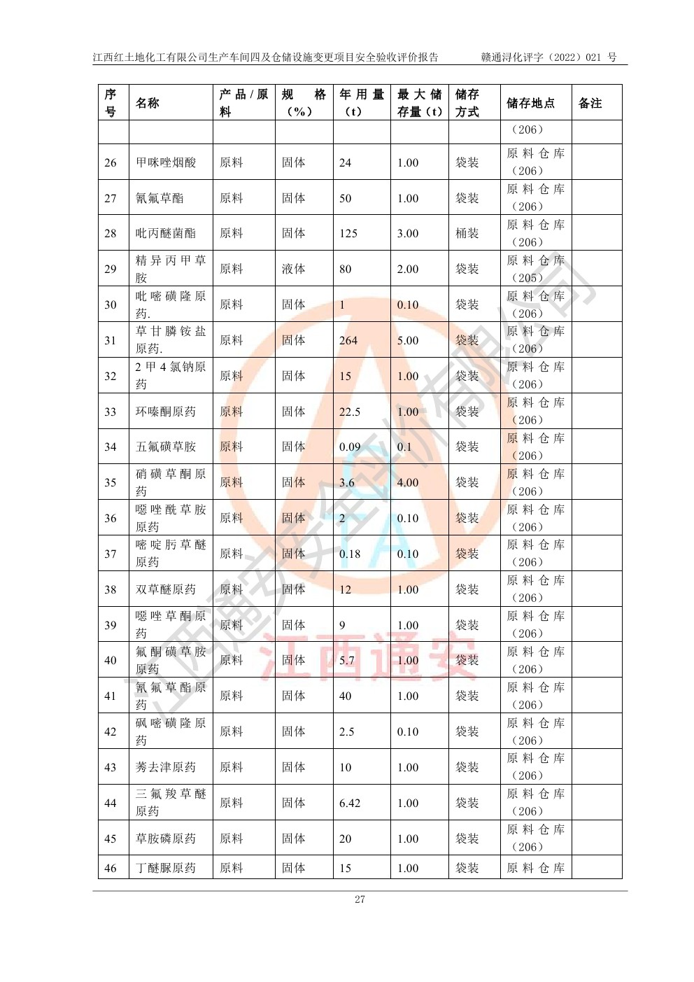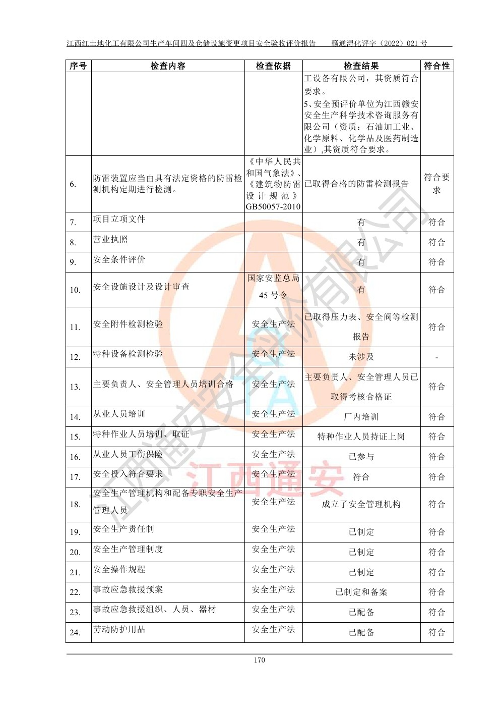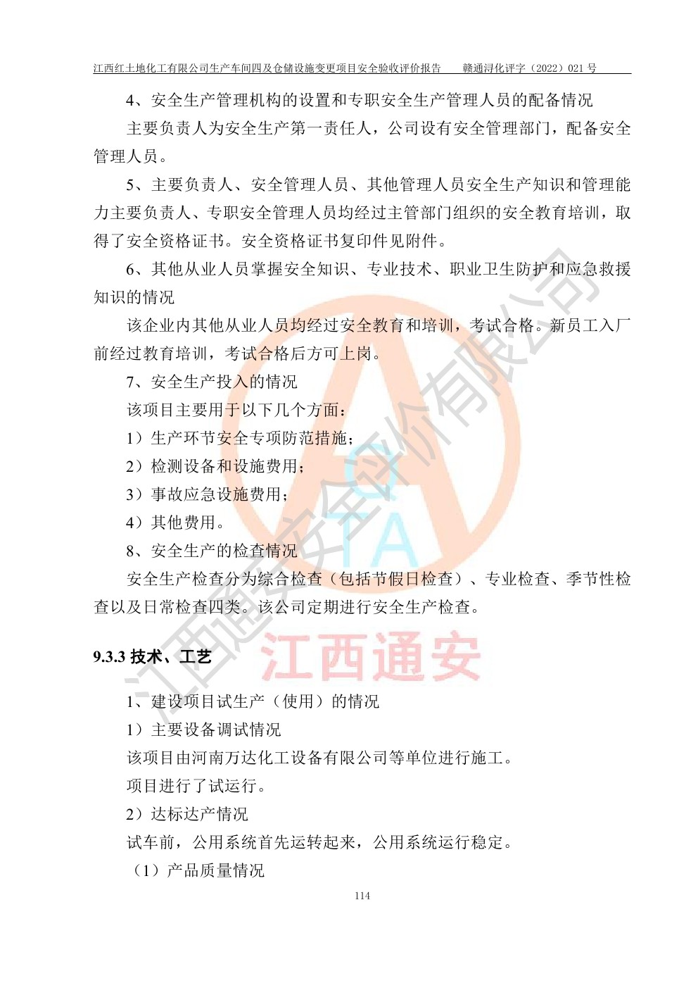 江西红土地化工有限公司生产车间四及仓储设施变更项目安全验收评价报告
