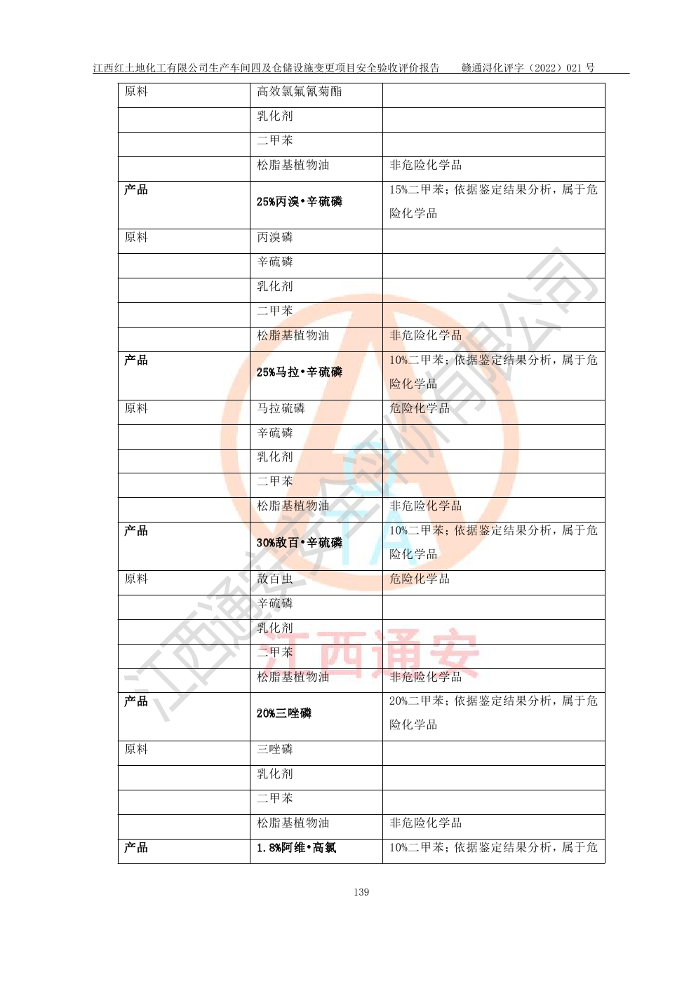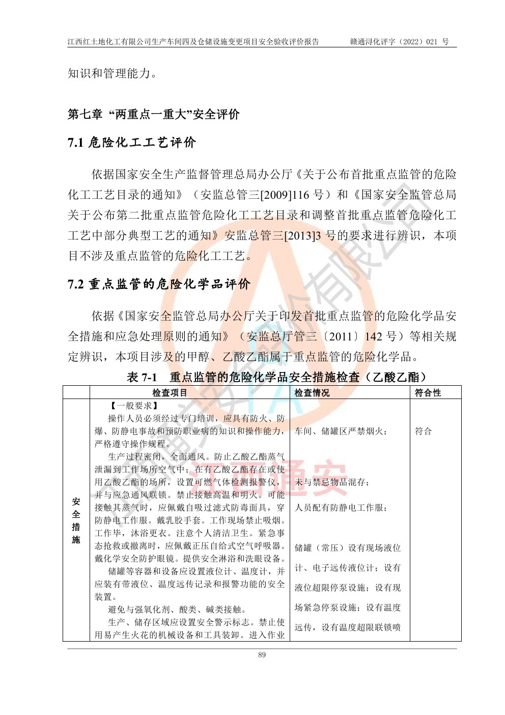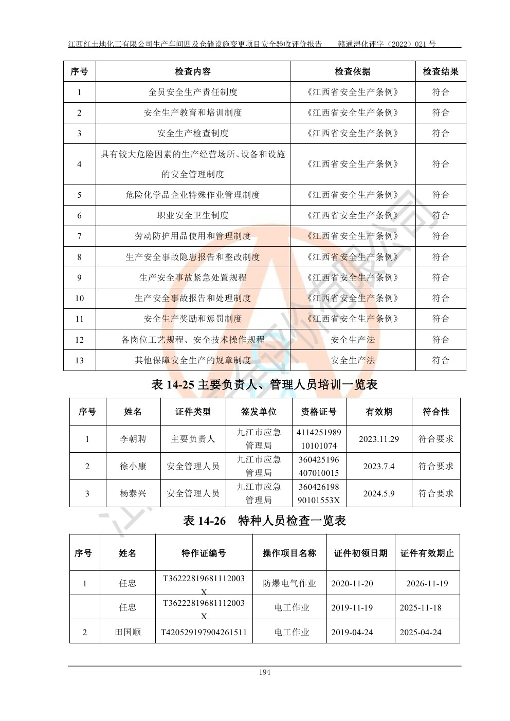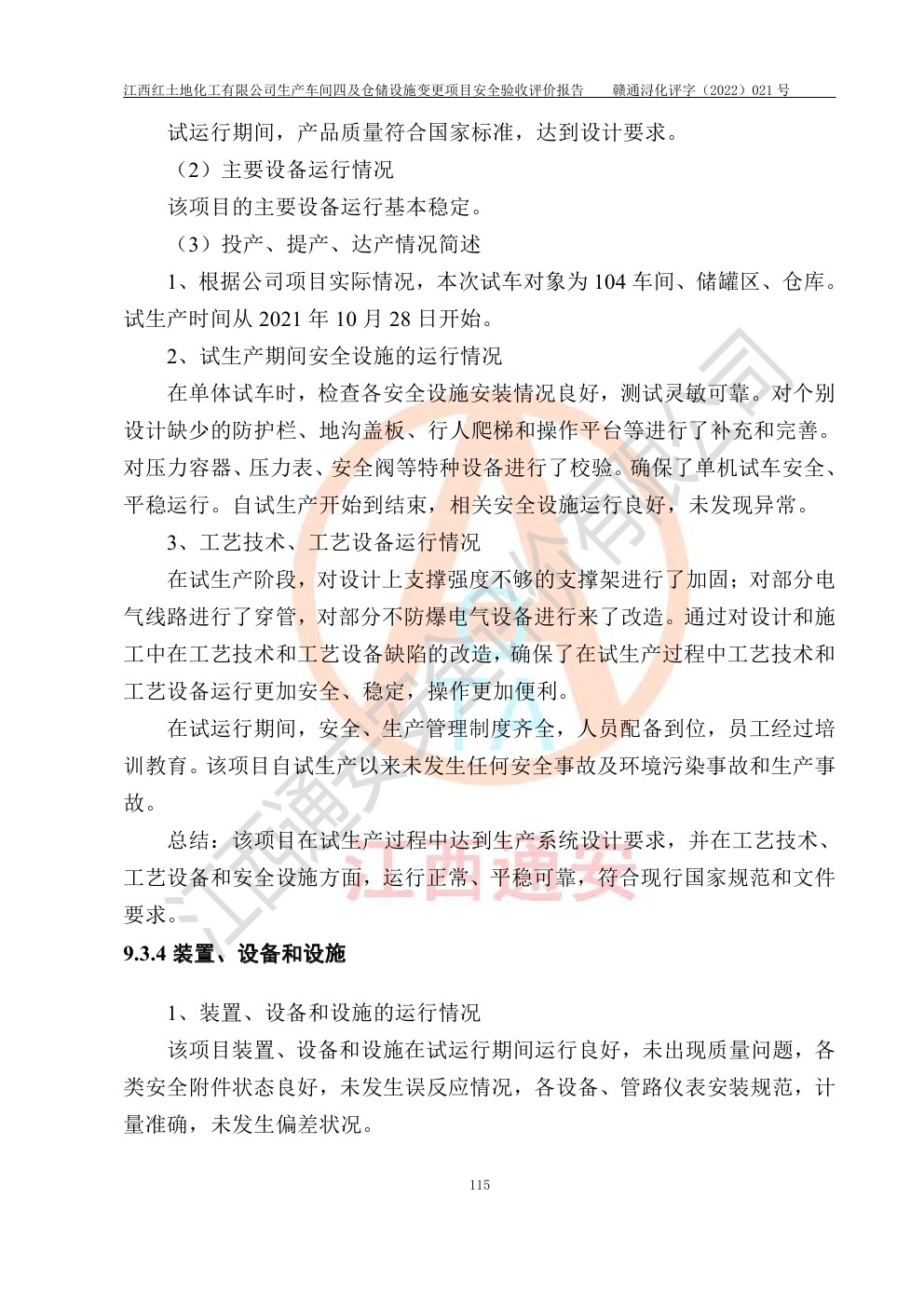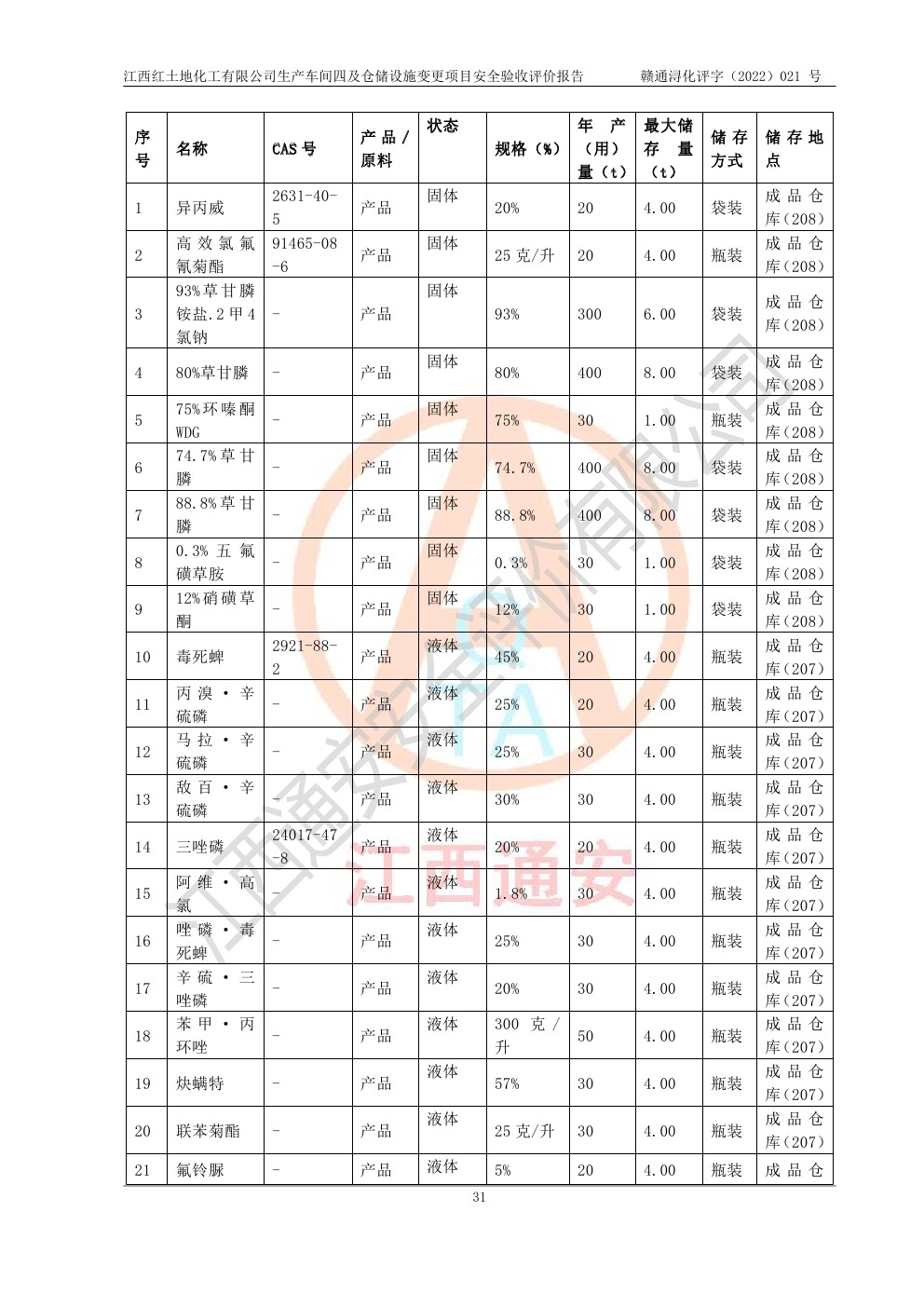 江西红土地化工有限公司生产车间四及仓储设施变更项目安全验收评价报告