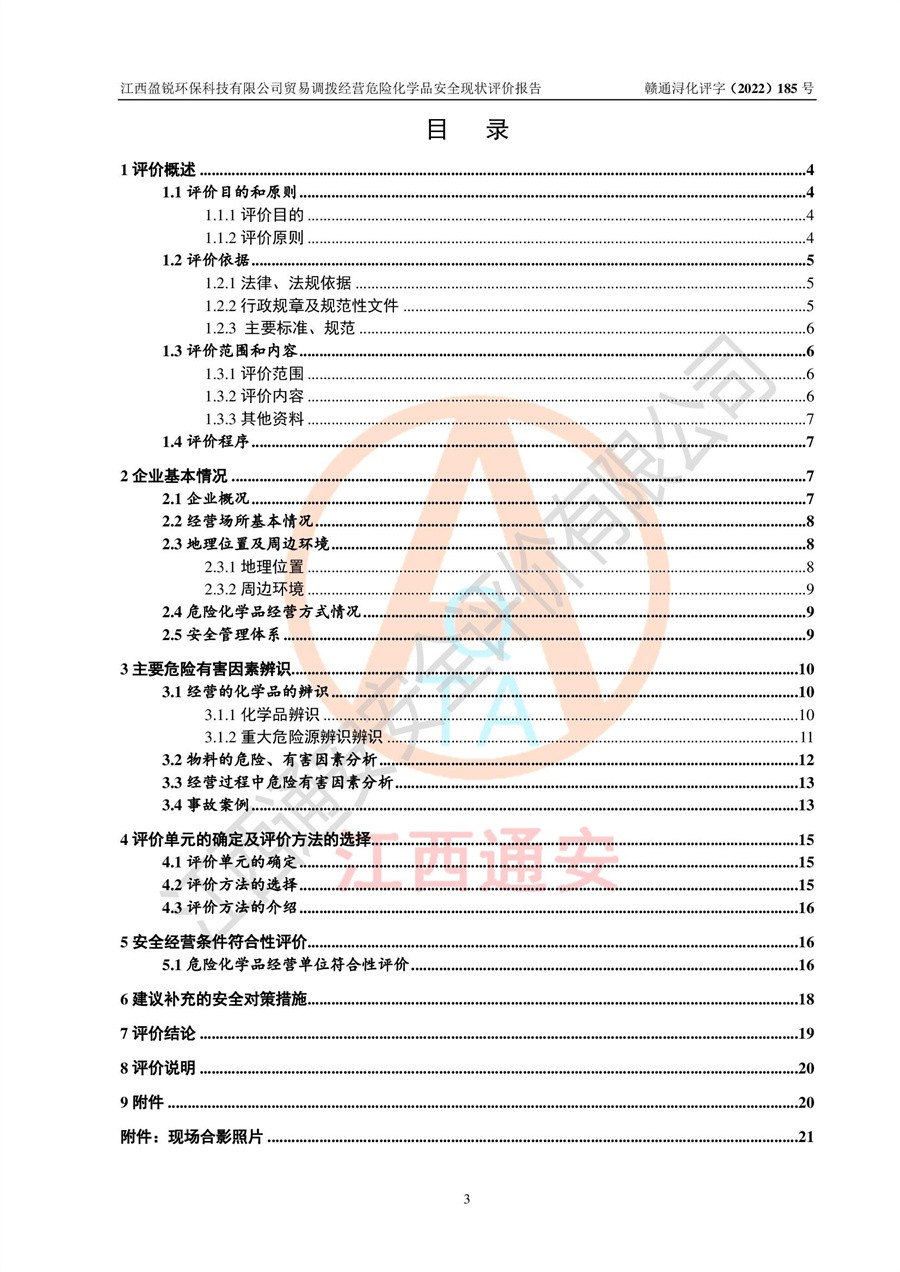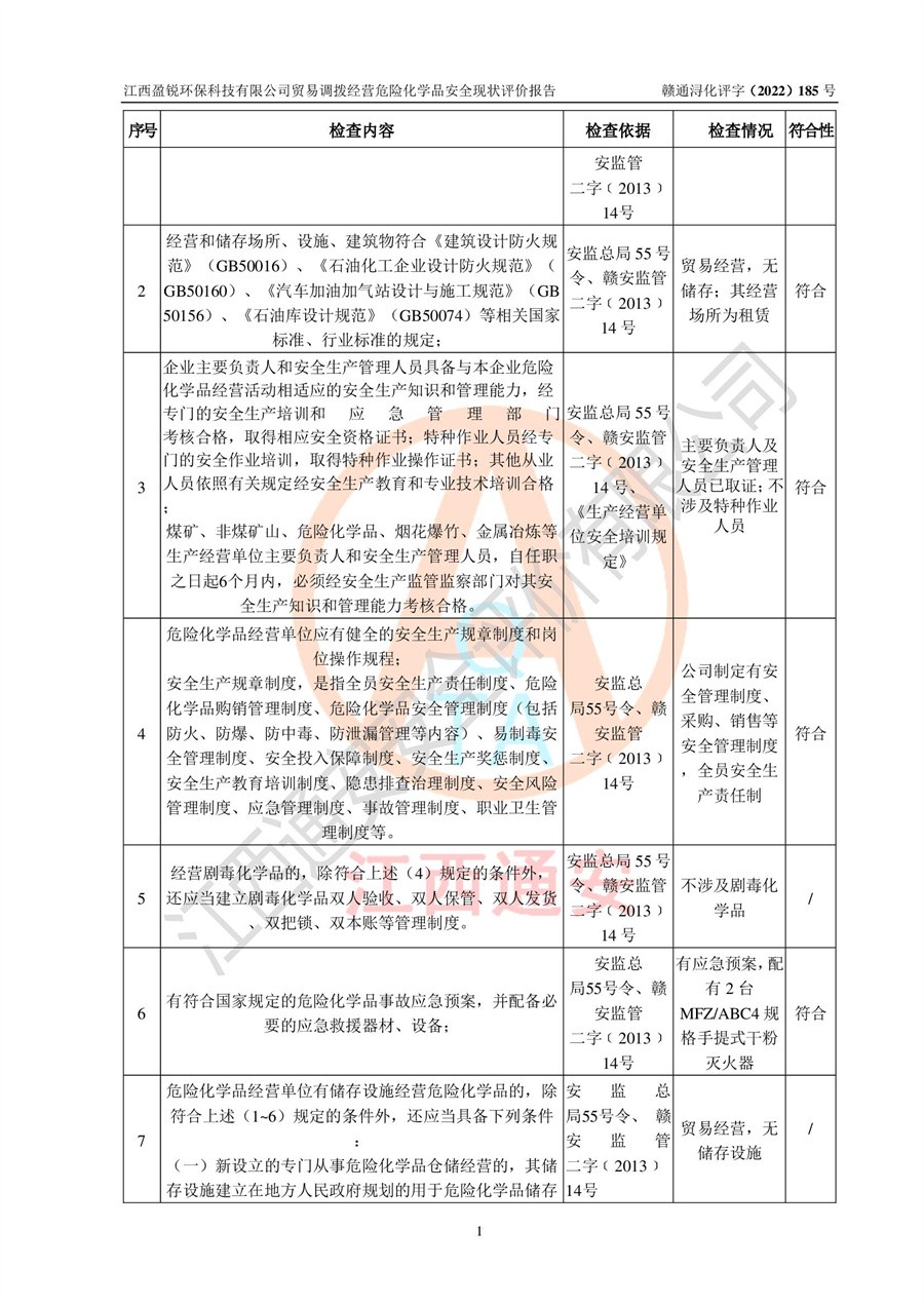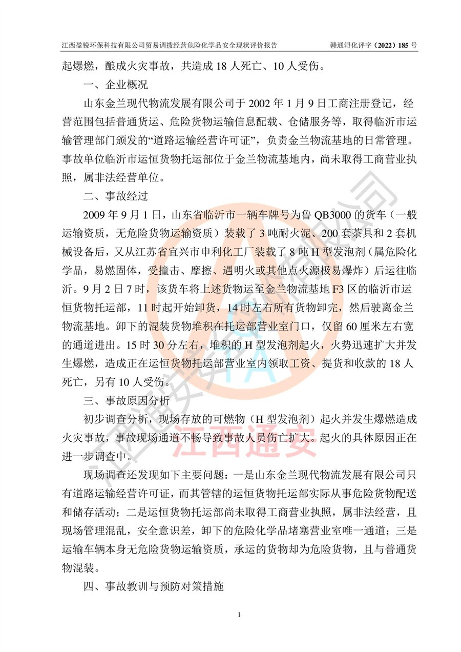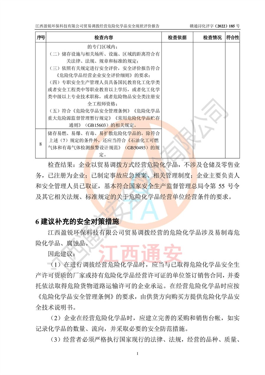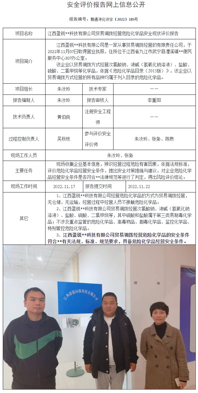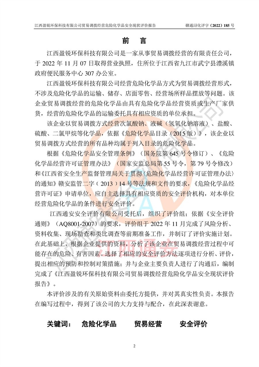 江西盈锐**科技有限公司贸易调拨经营危险化学品安全现状评价报告