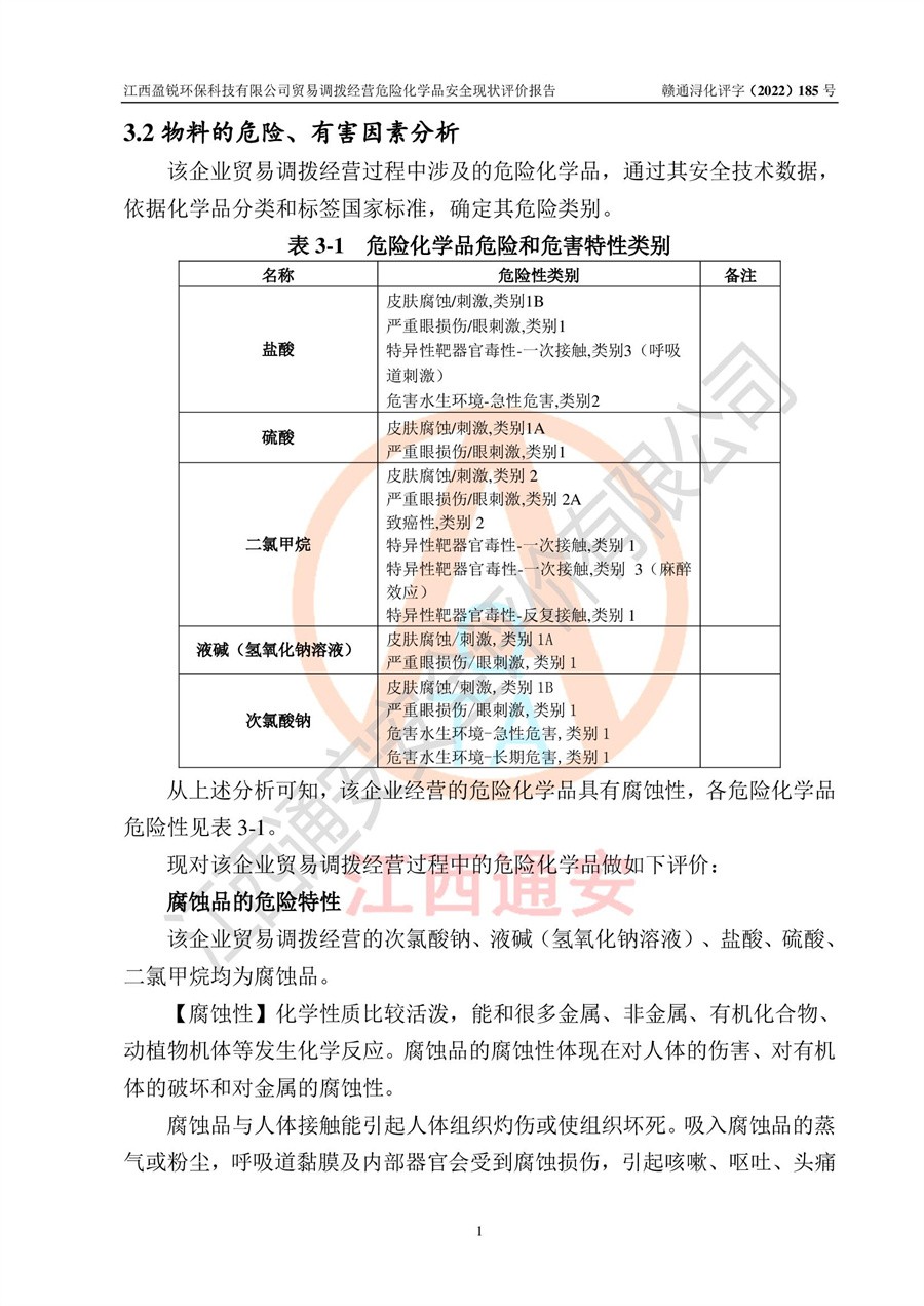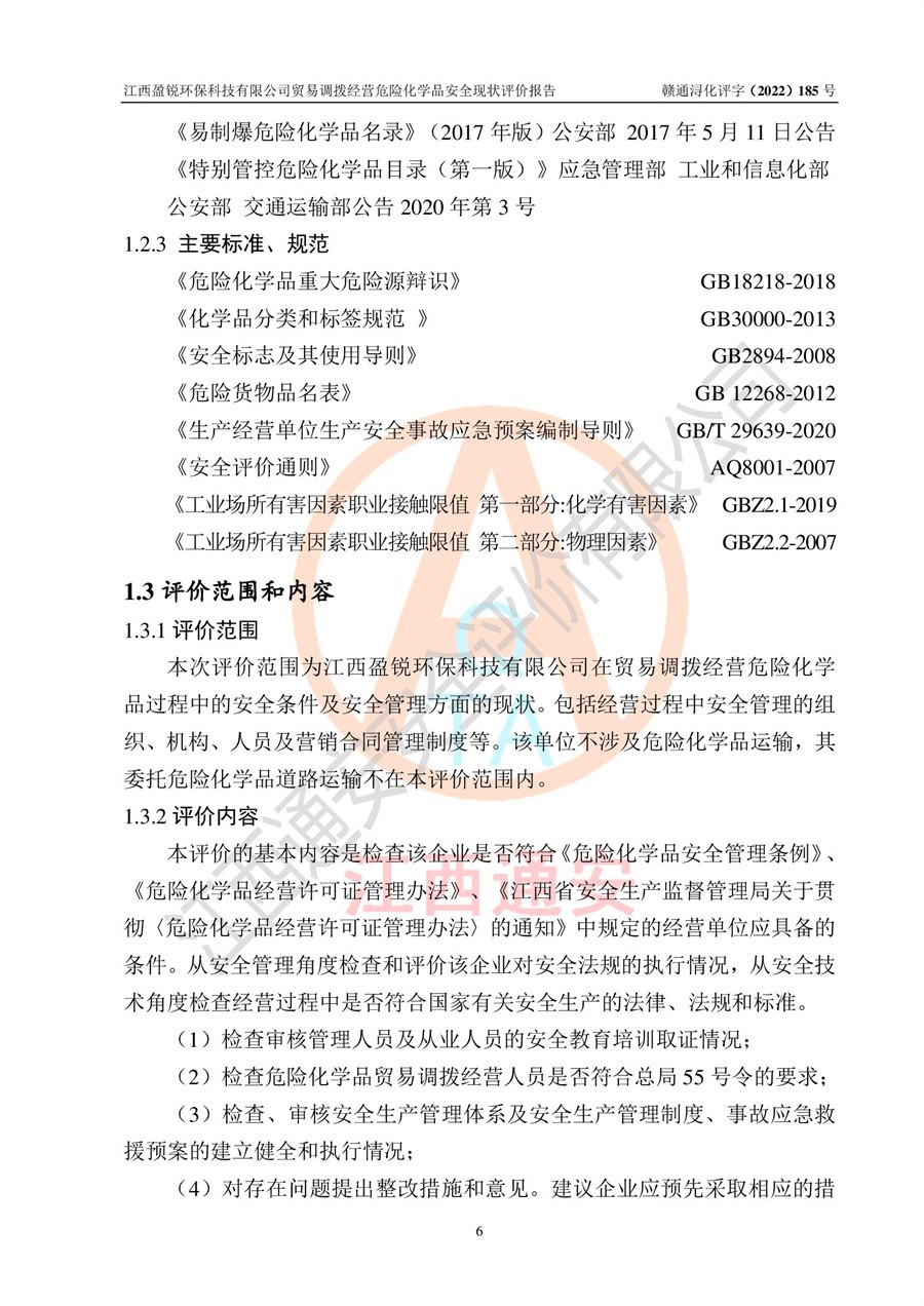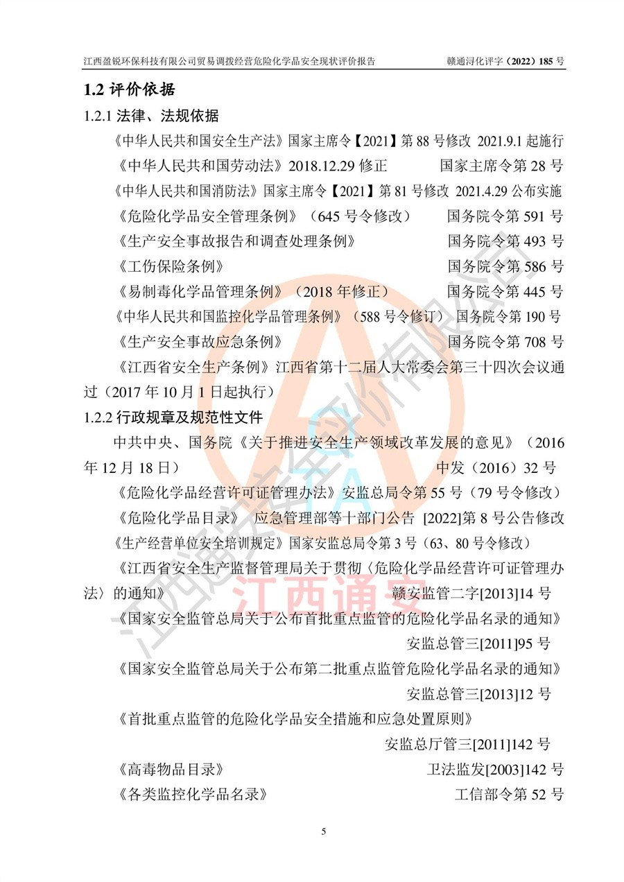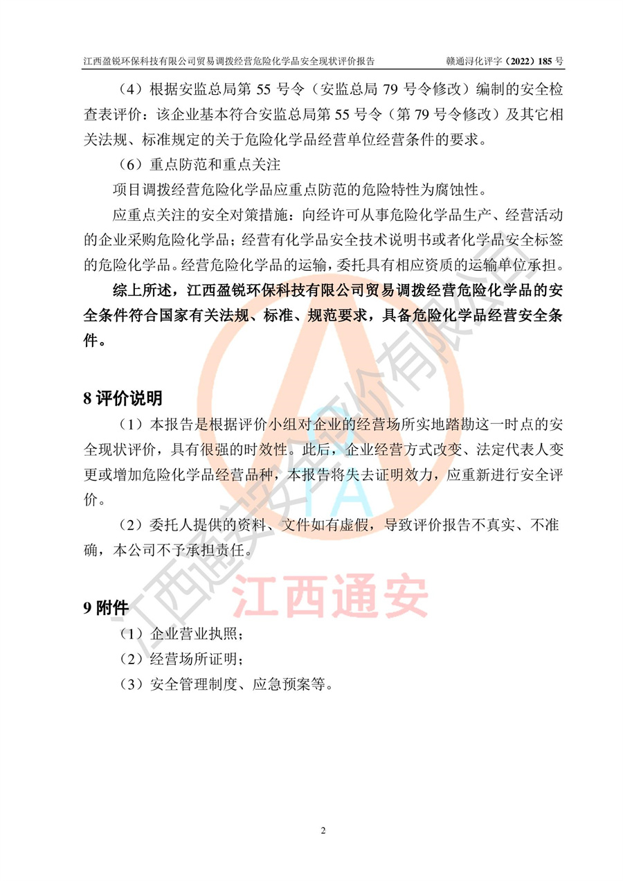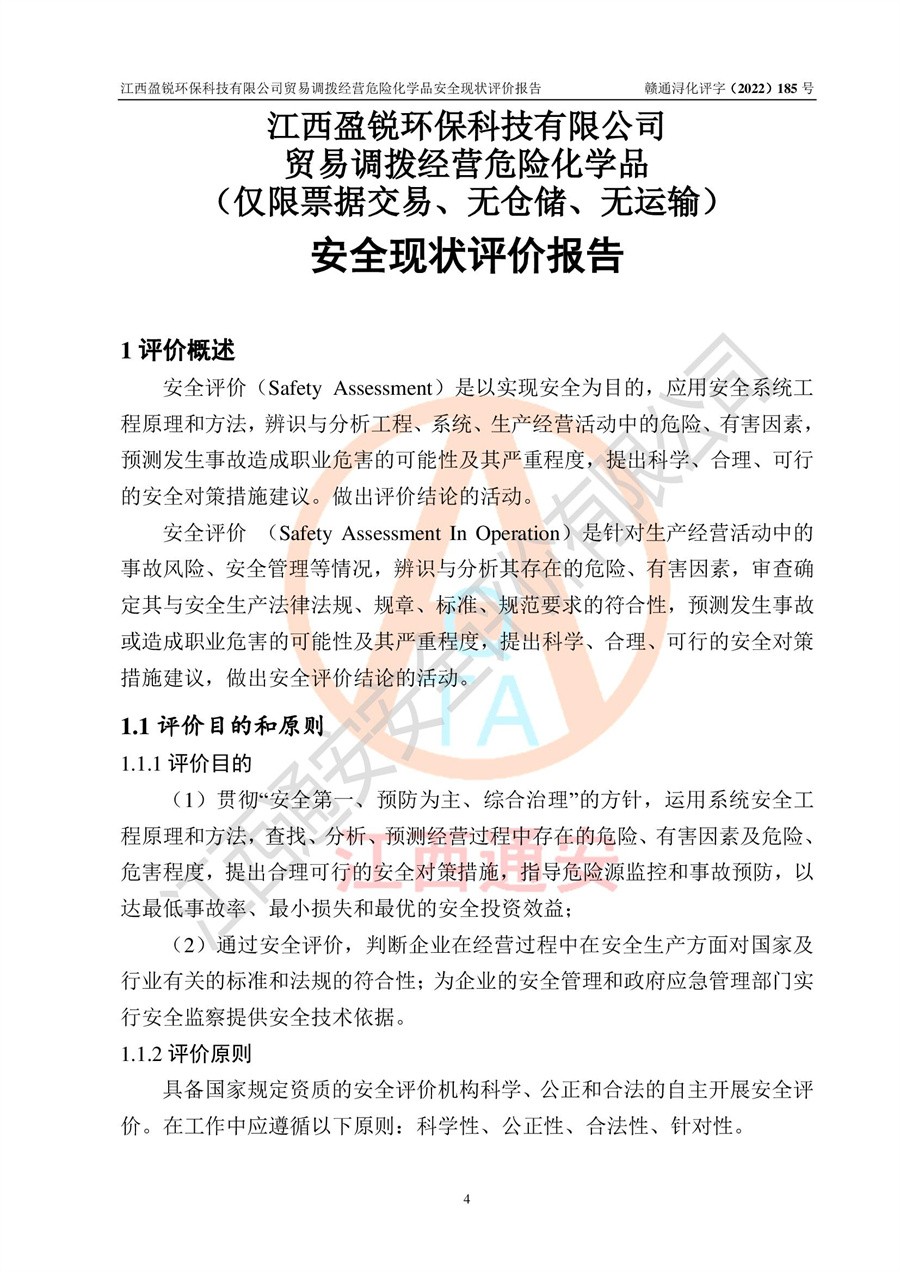 江西盈锐**科技有限公司贸易调拨经营危险化学品安全现状评价报告