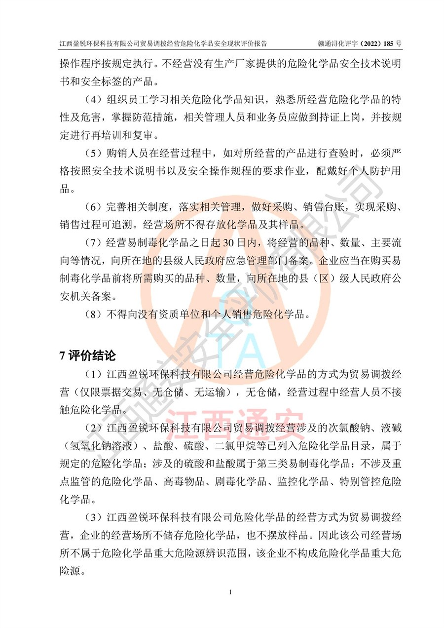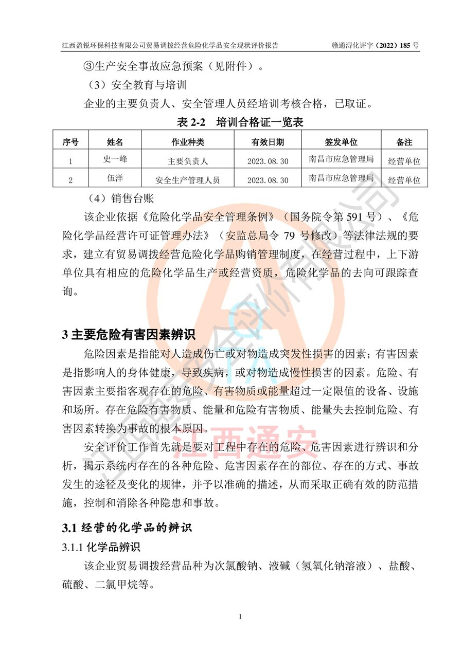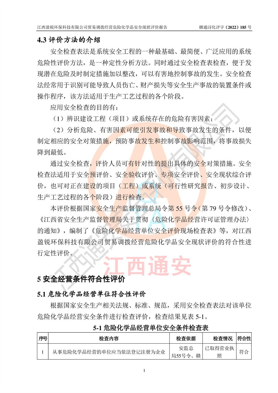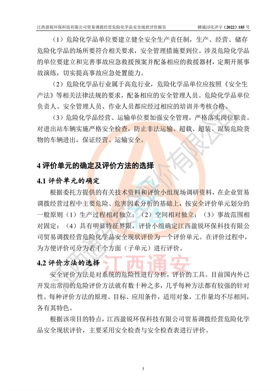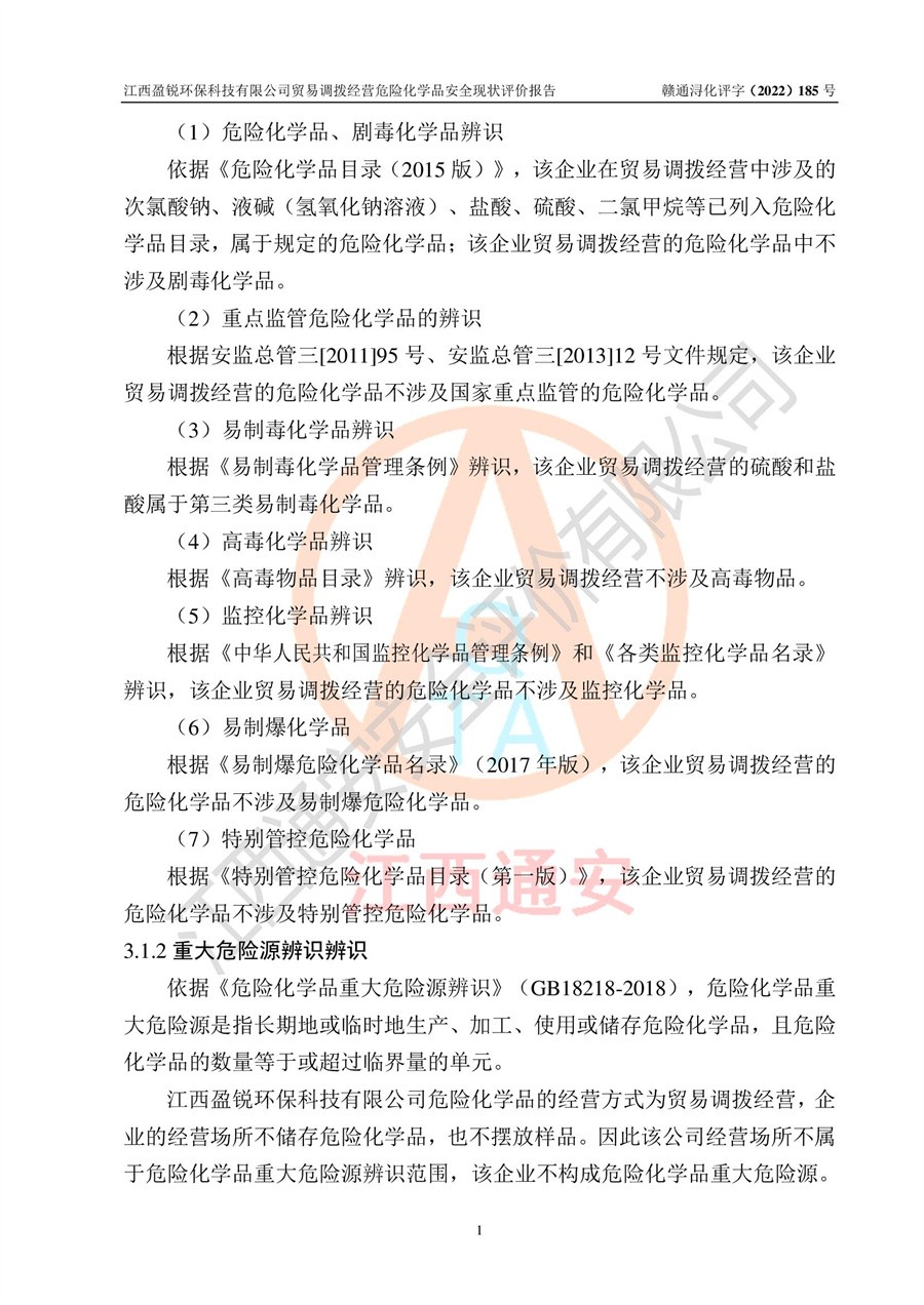 江西盈锐**科技有限公司贸易调拨经营危险化学品安全现状评价报告