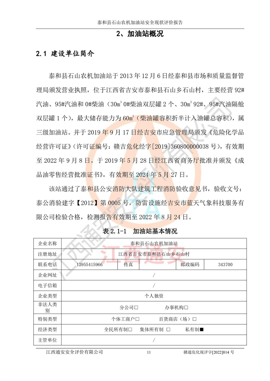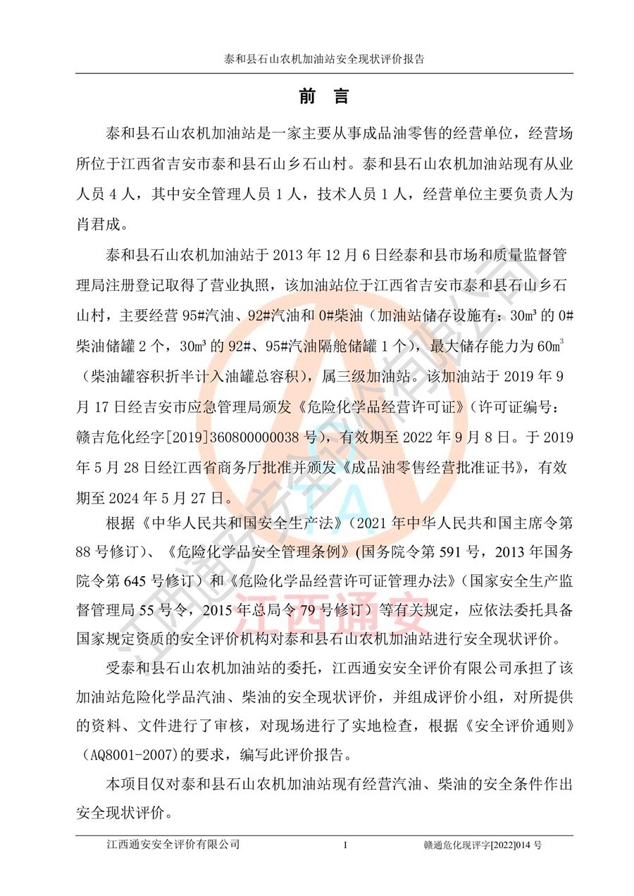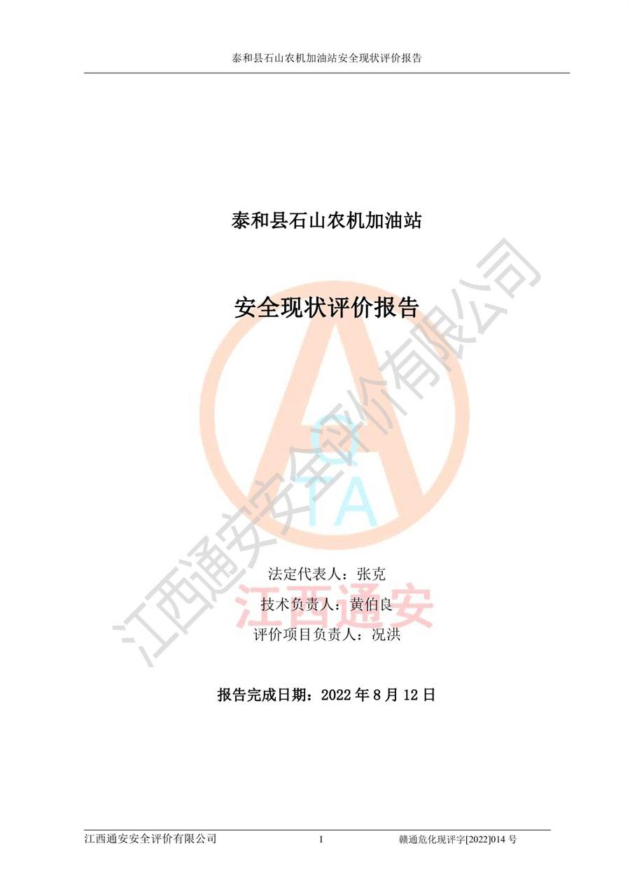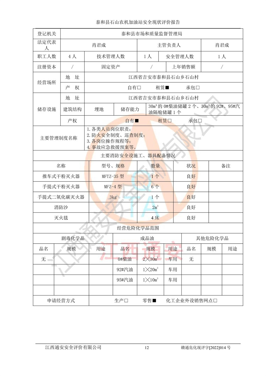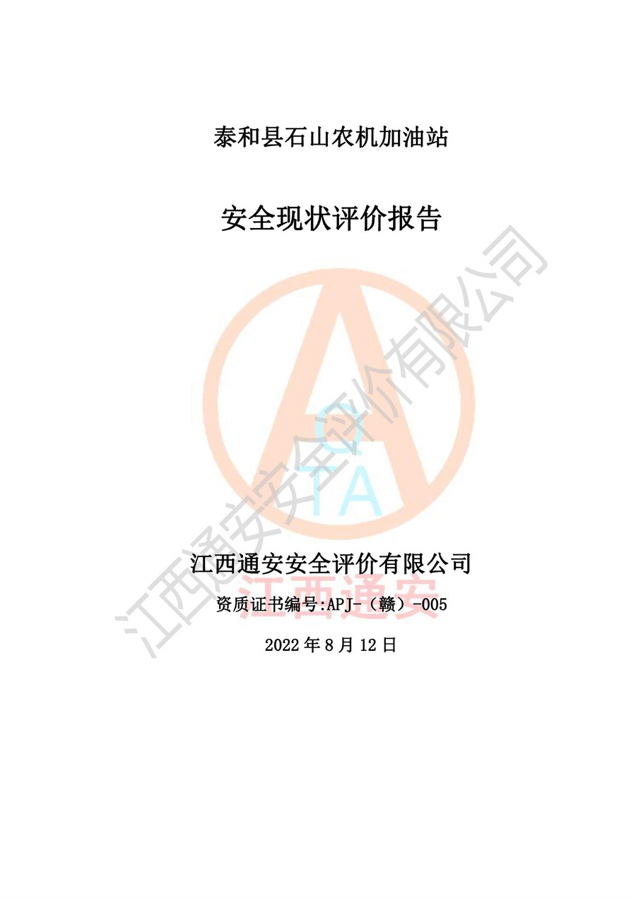 泰和县石山农机加油站安全现状评价报告