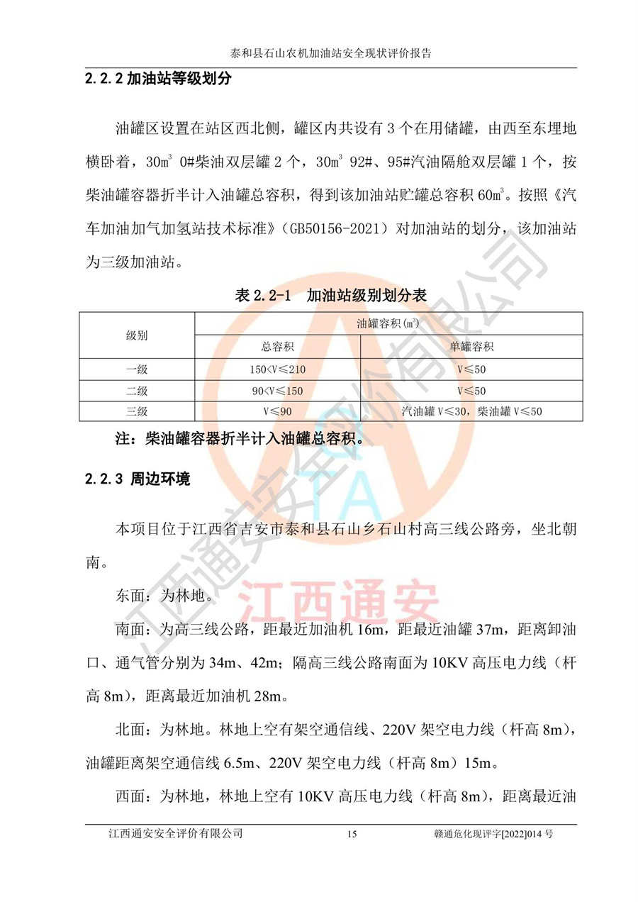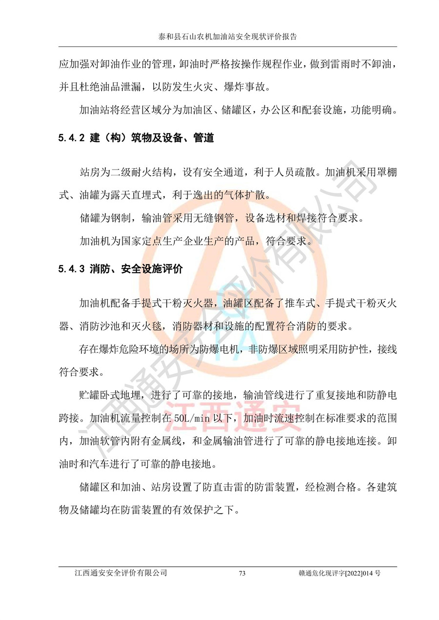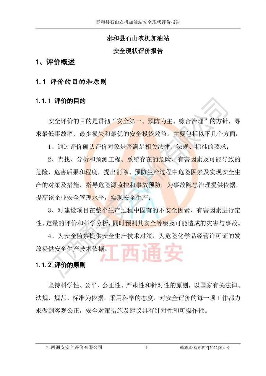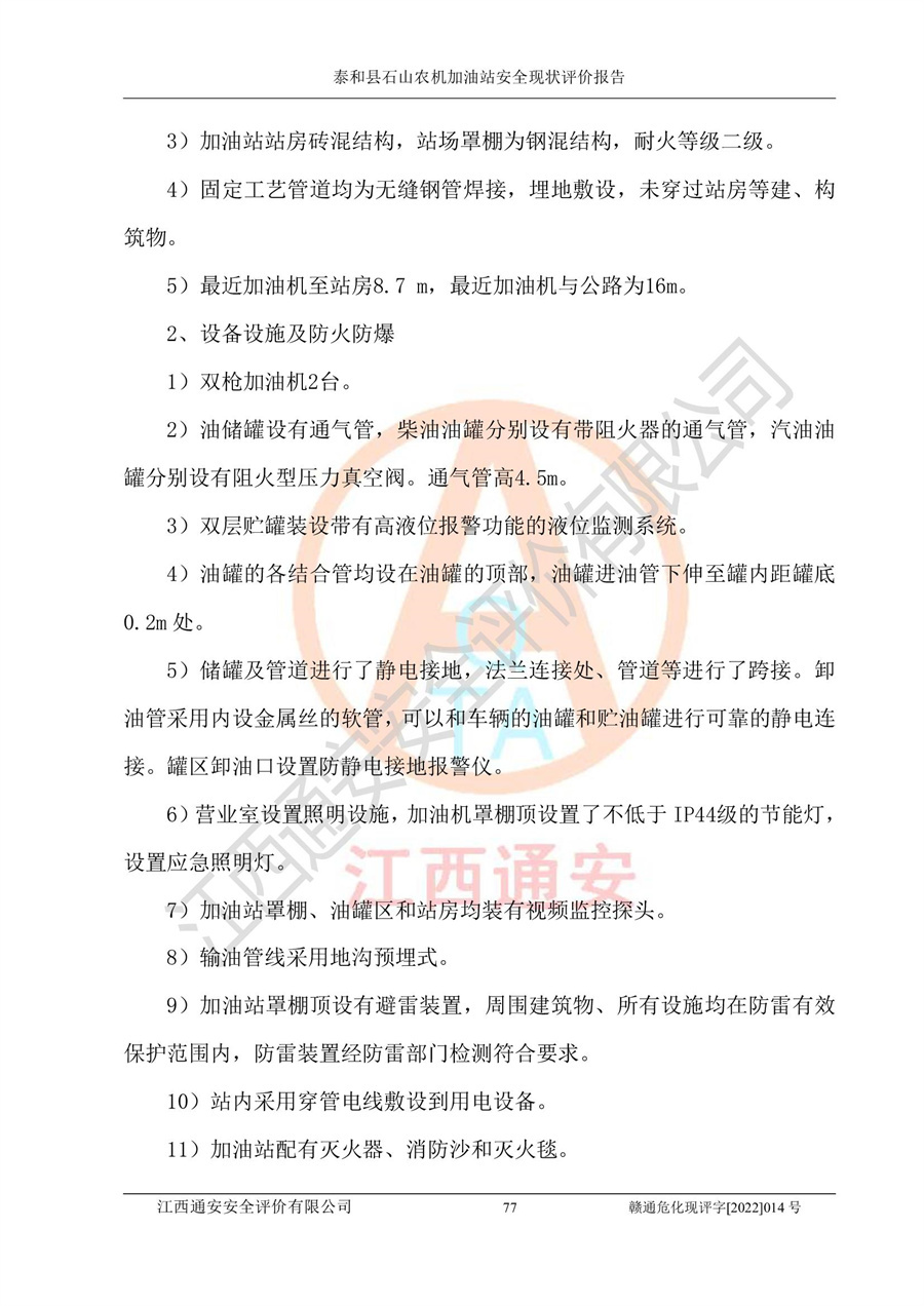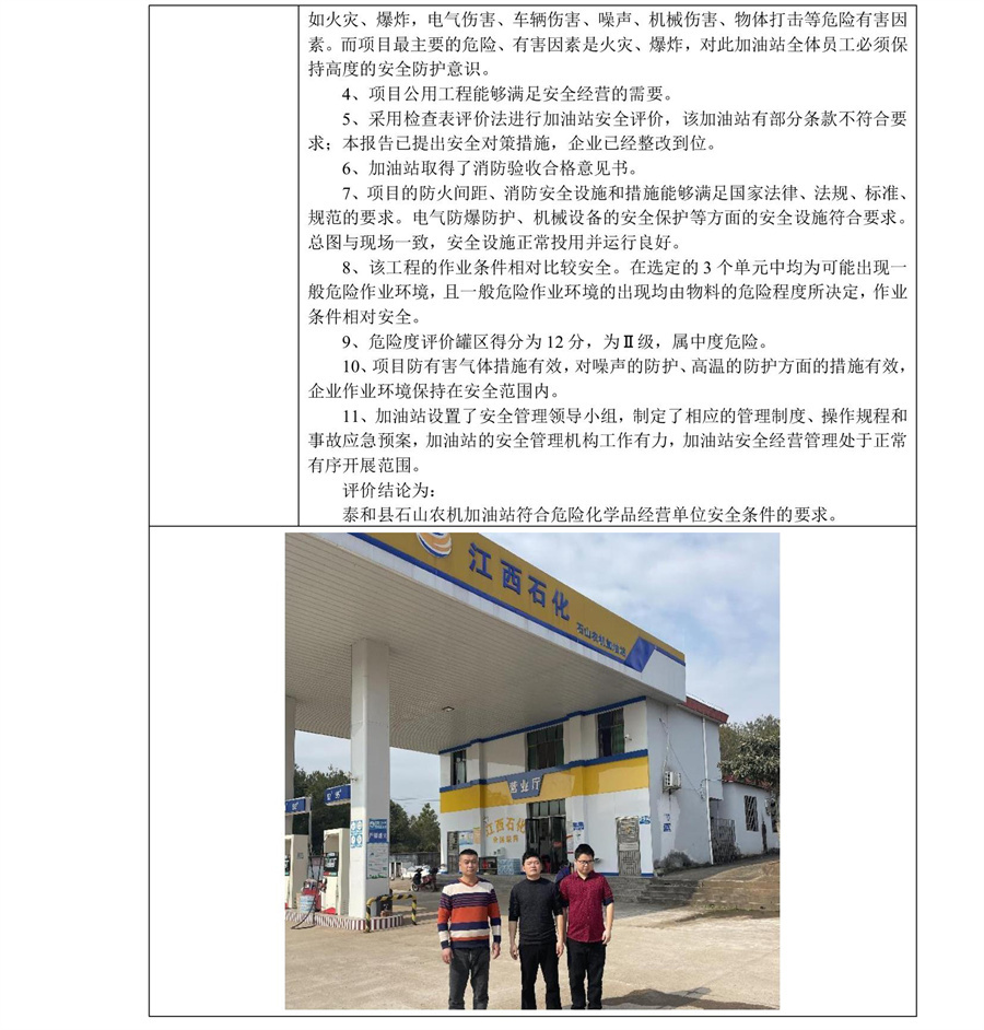 泰和县石山农机加油站安全现状评价报告