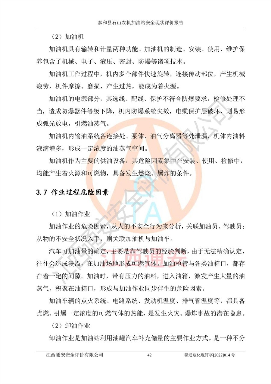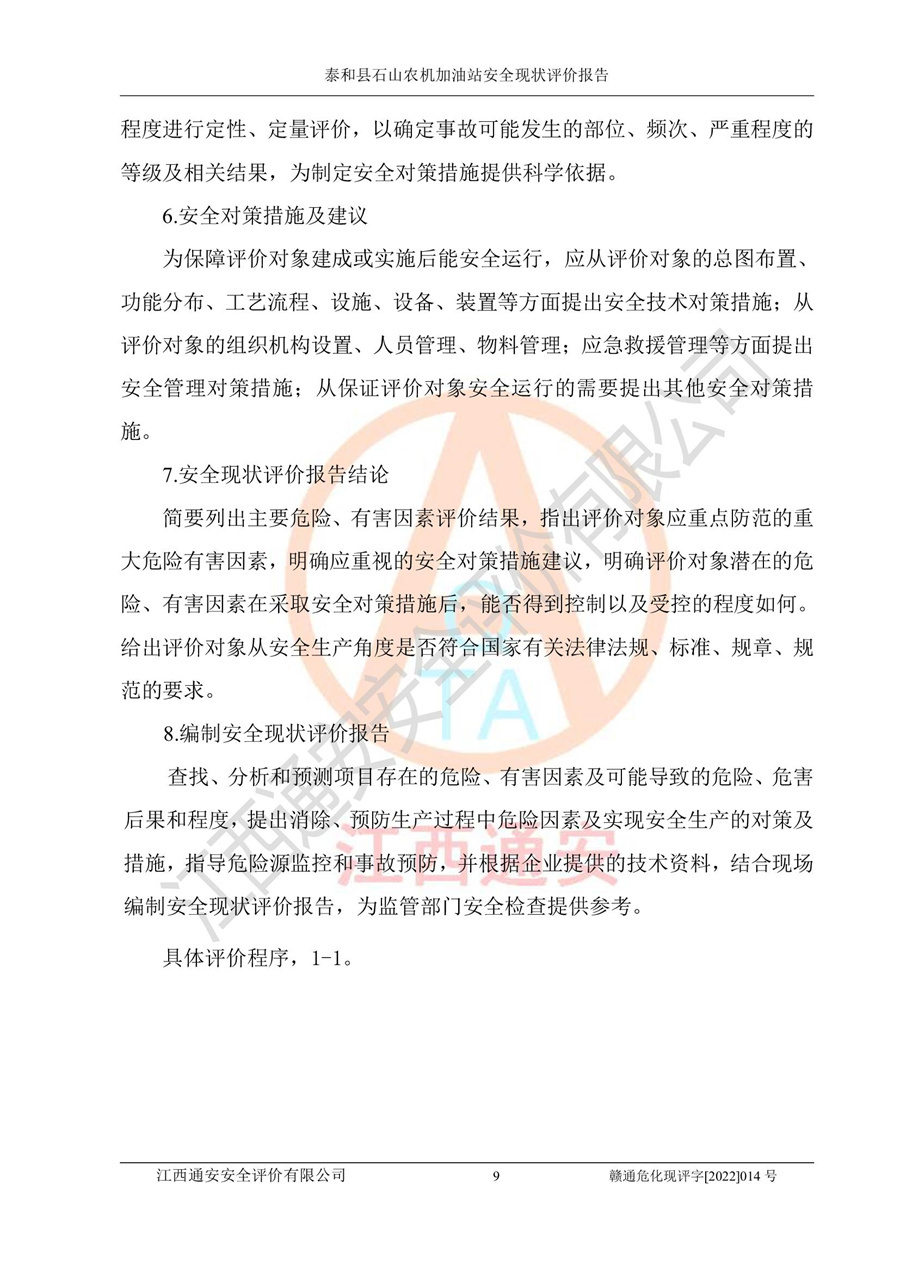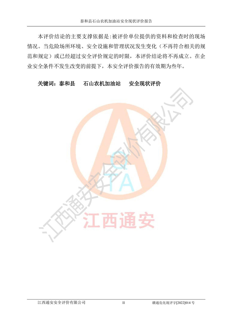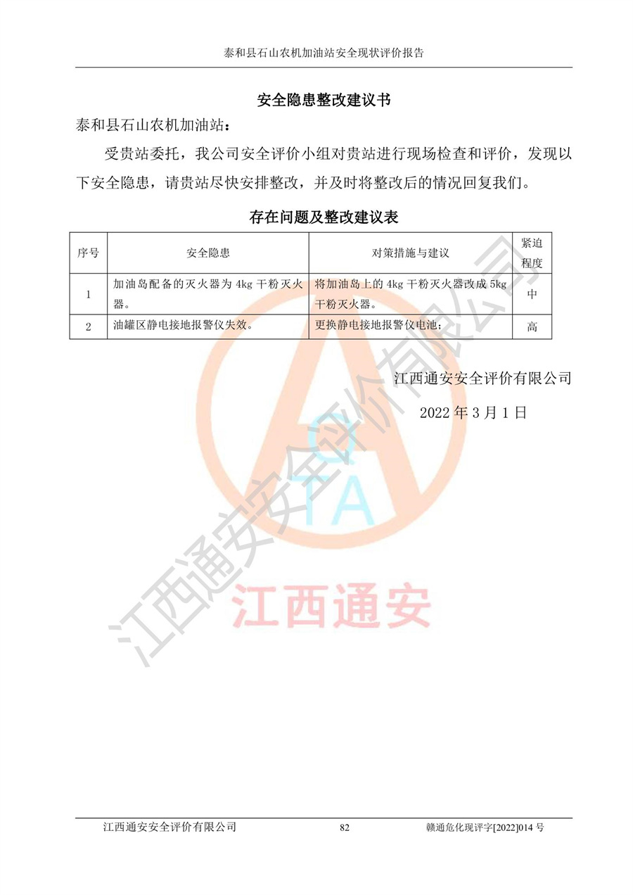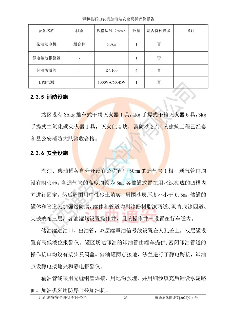 泰和县石山农机加油站安全现状评价报告