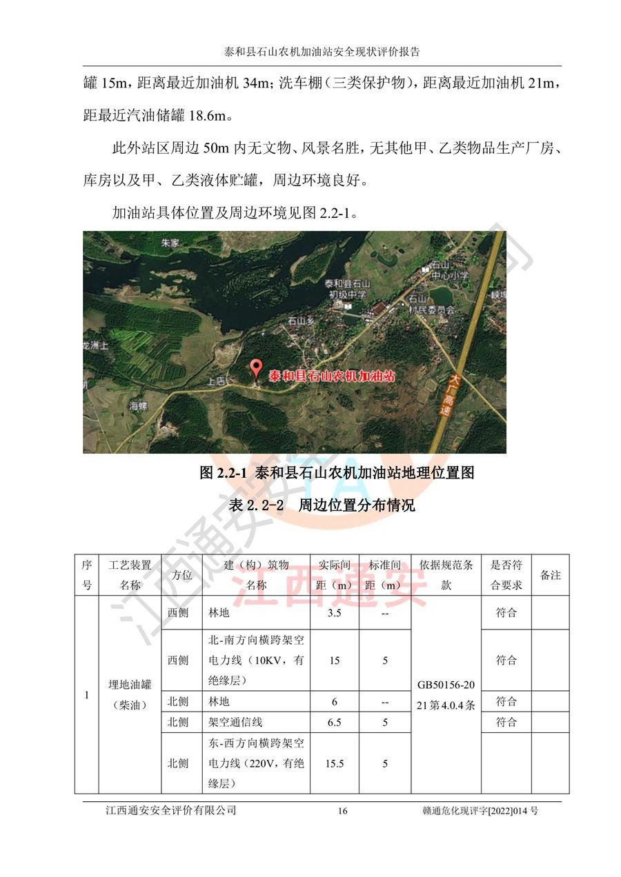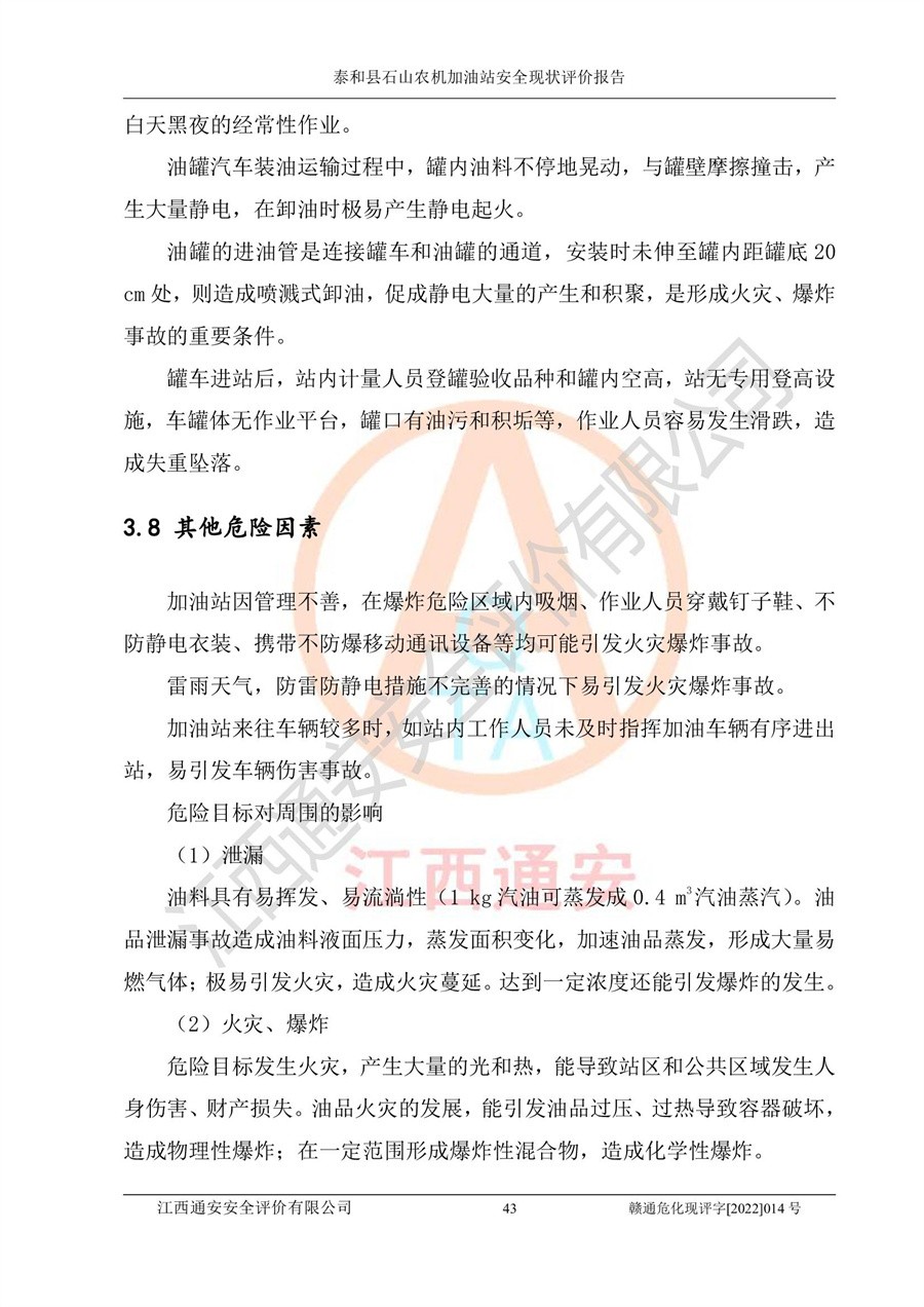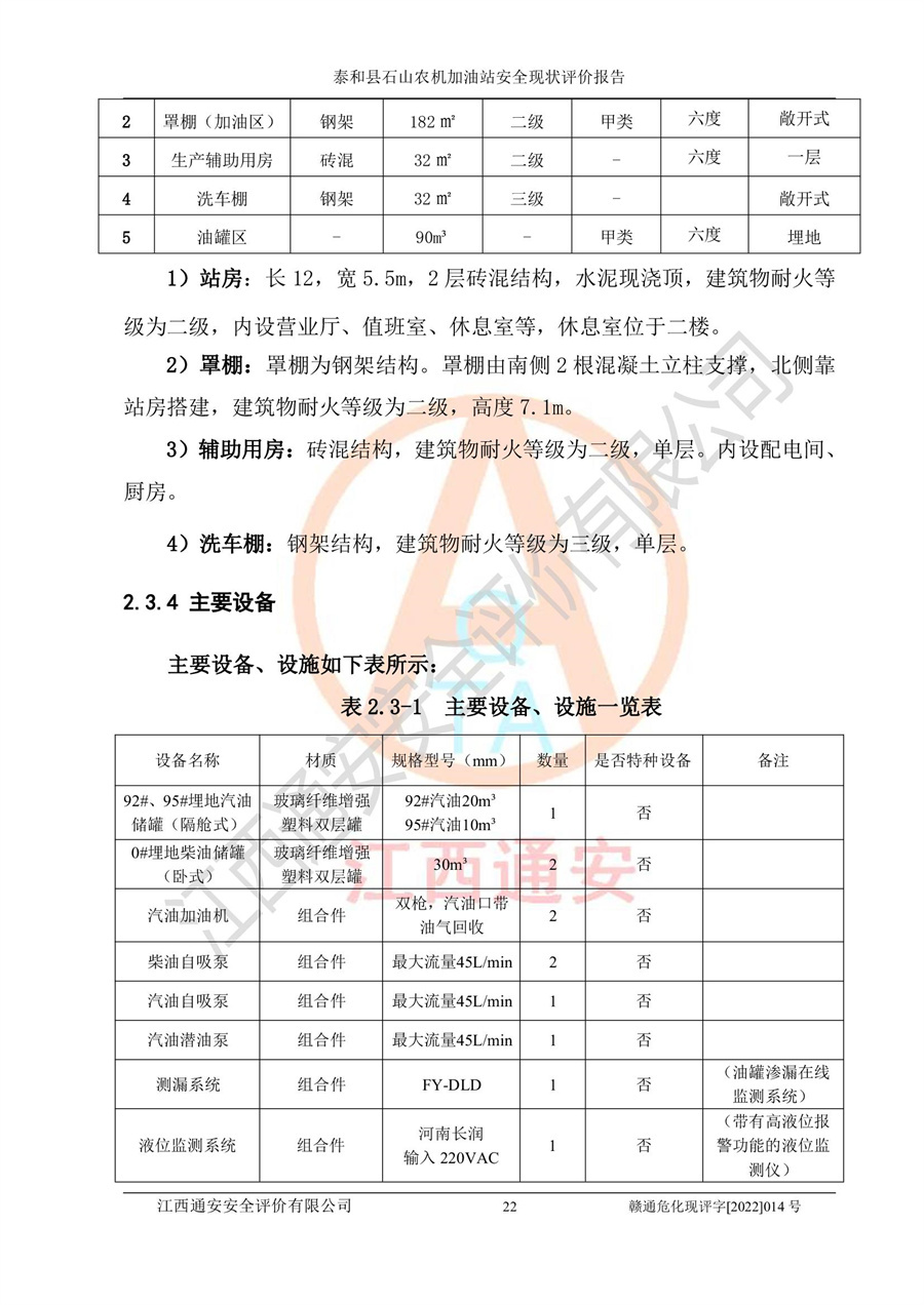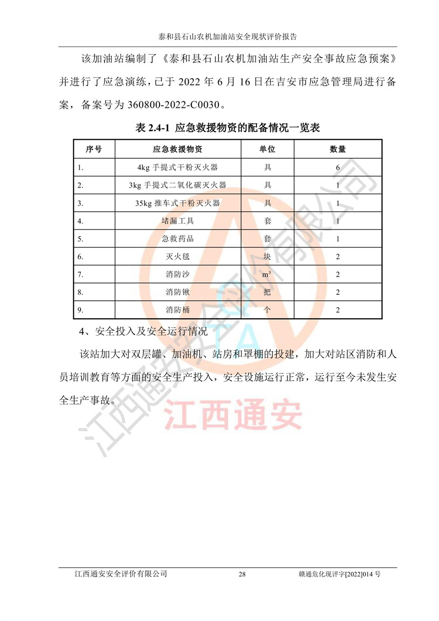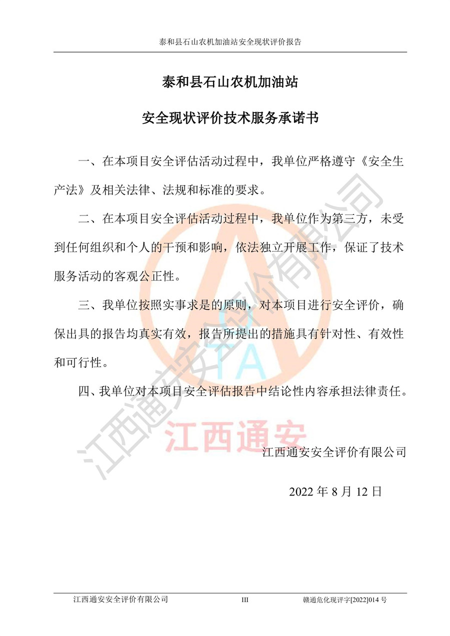 泰和县石山农机加油站安全现状评价报告