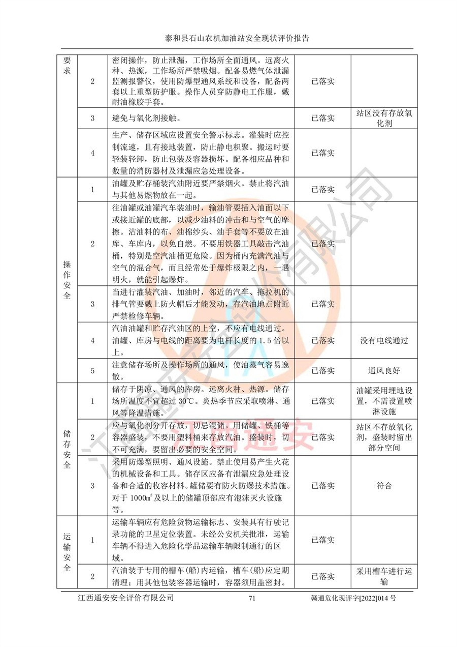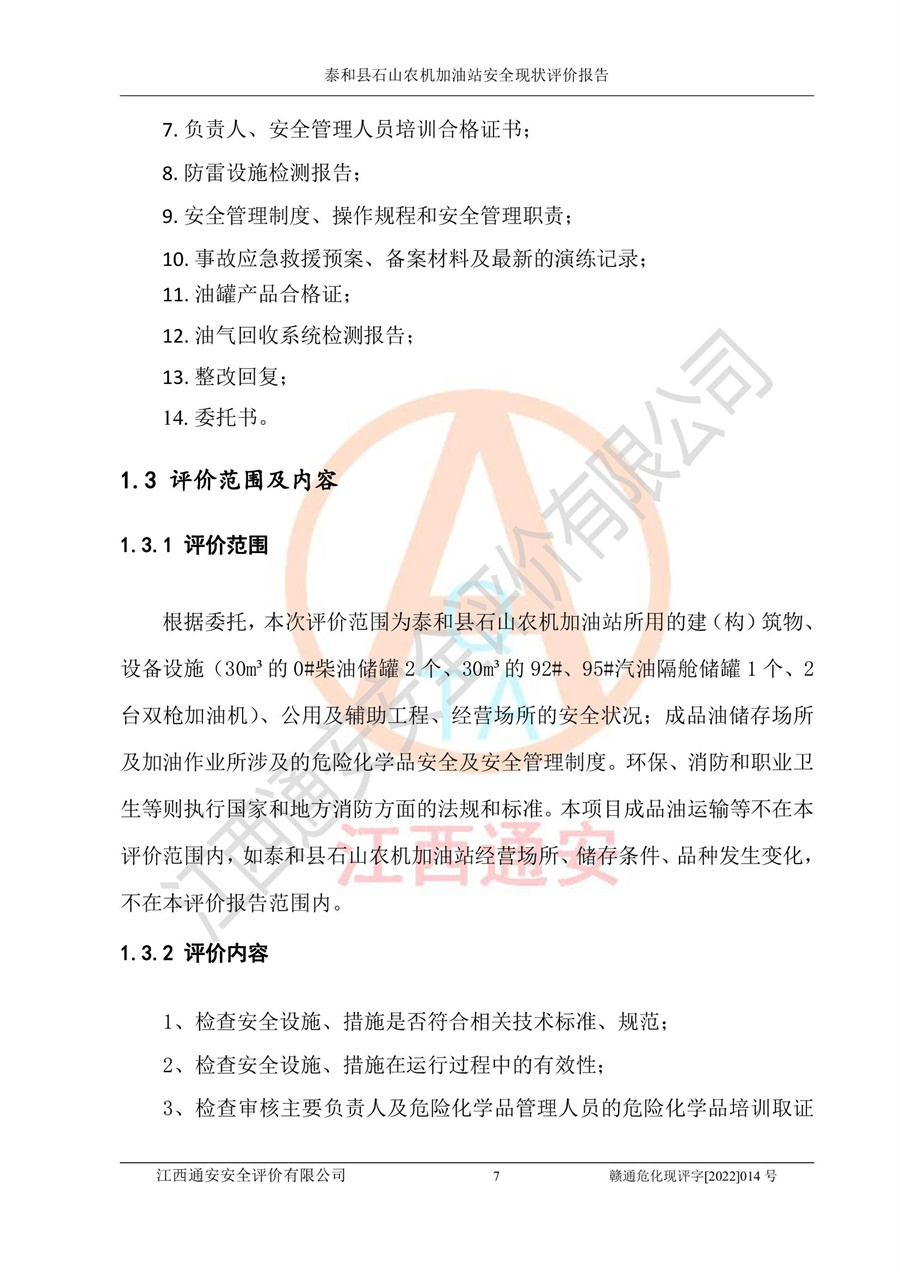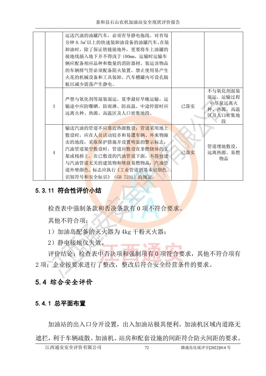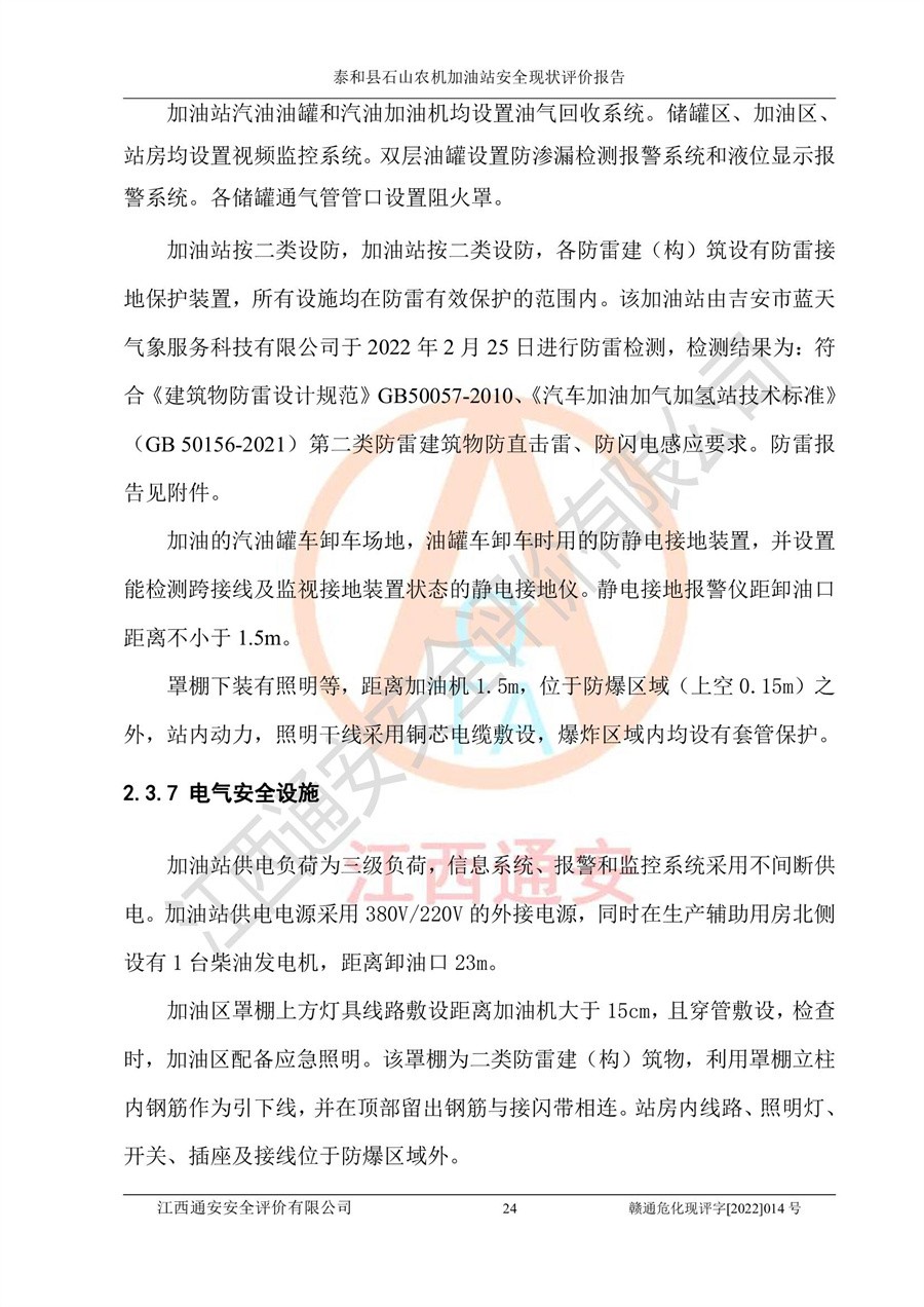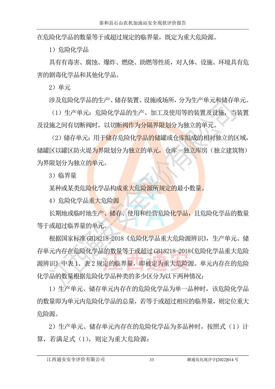 泰和县石山农机加油站安全现状评价报告