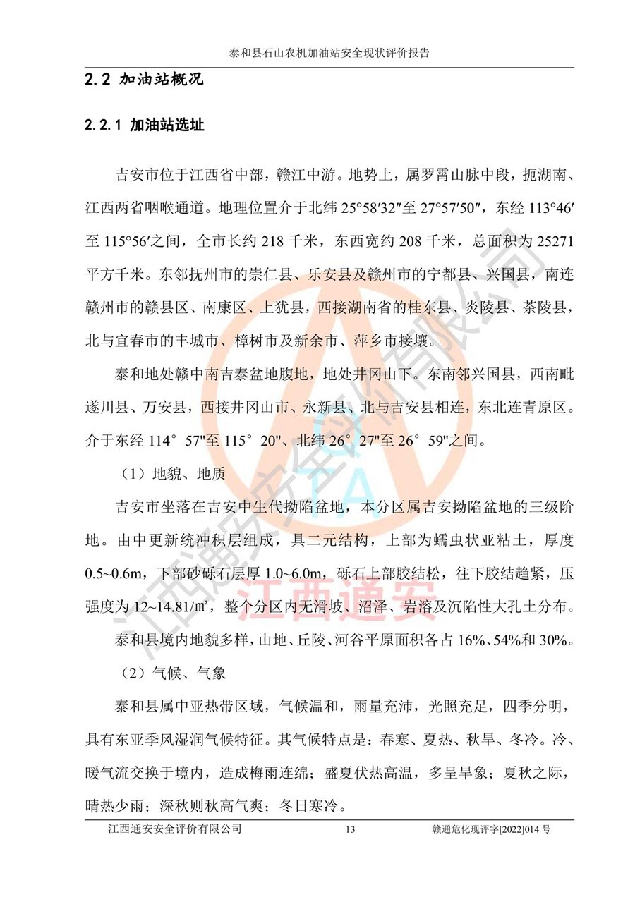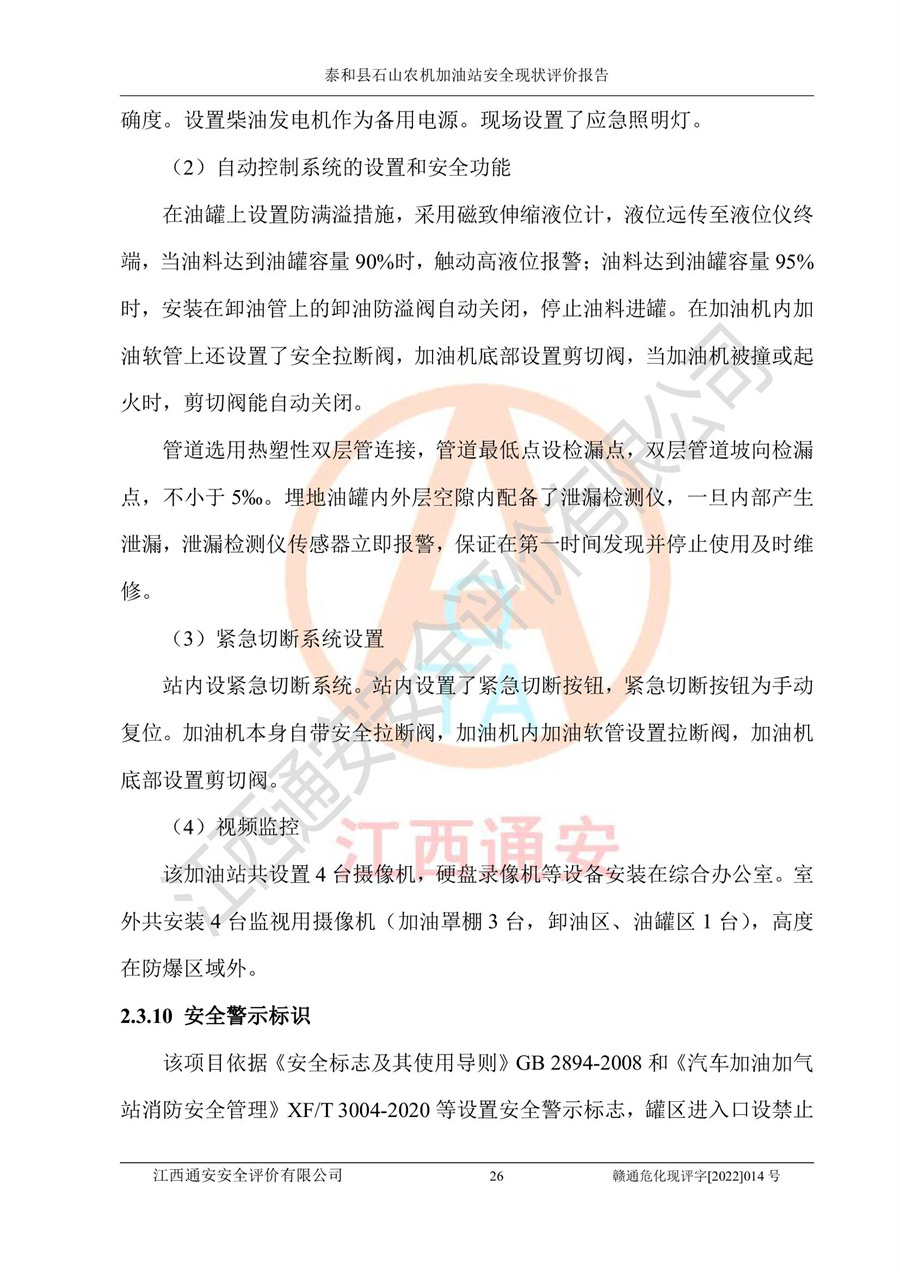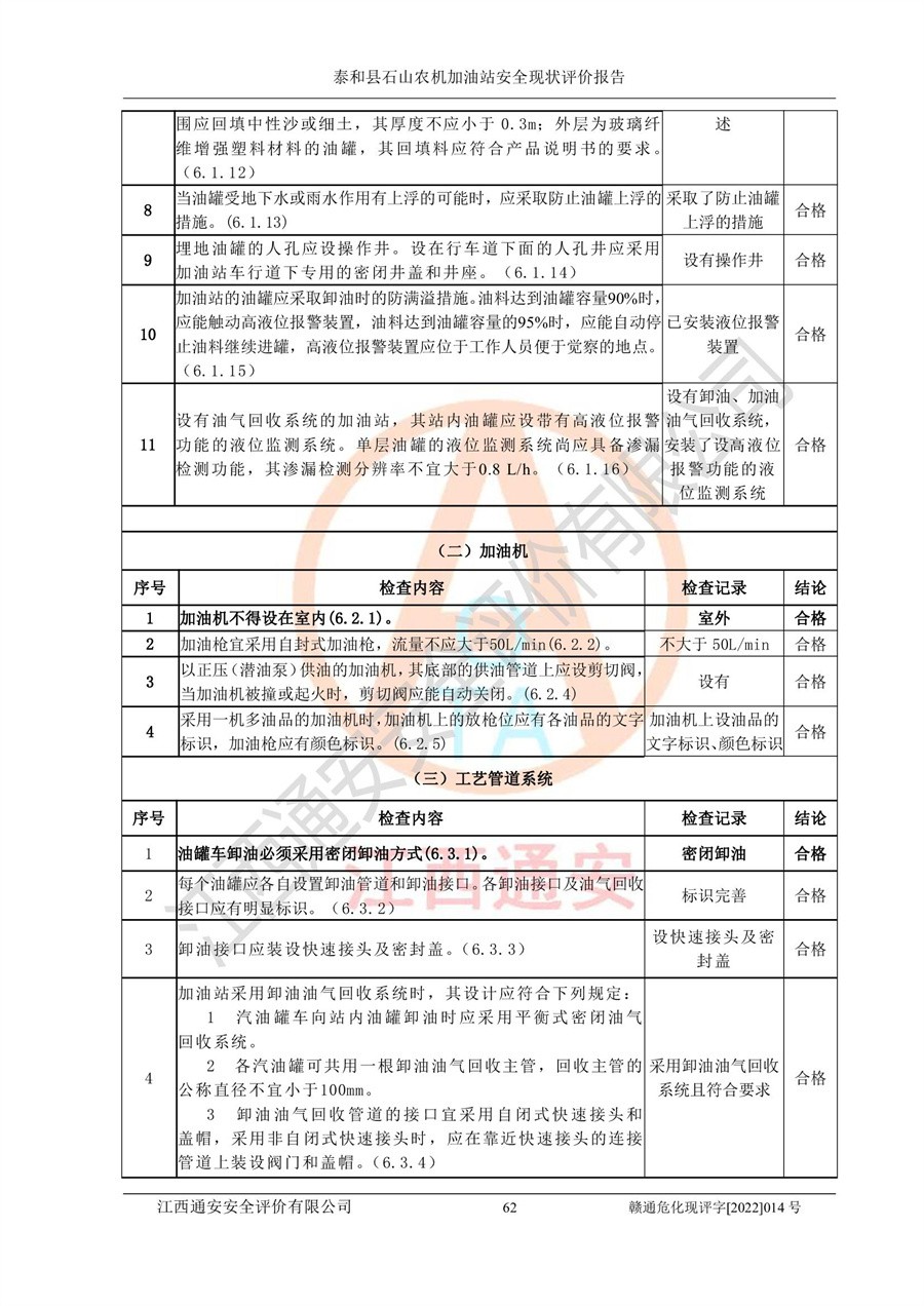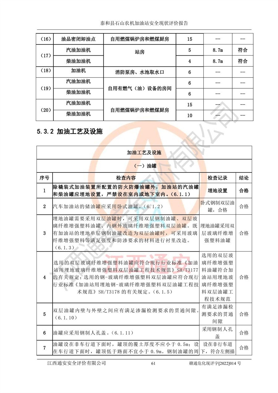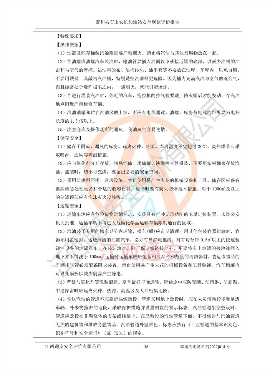 泰和县石山农机加油站安全现状评价报告