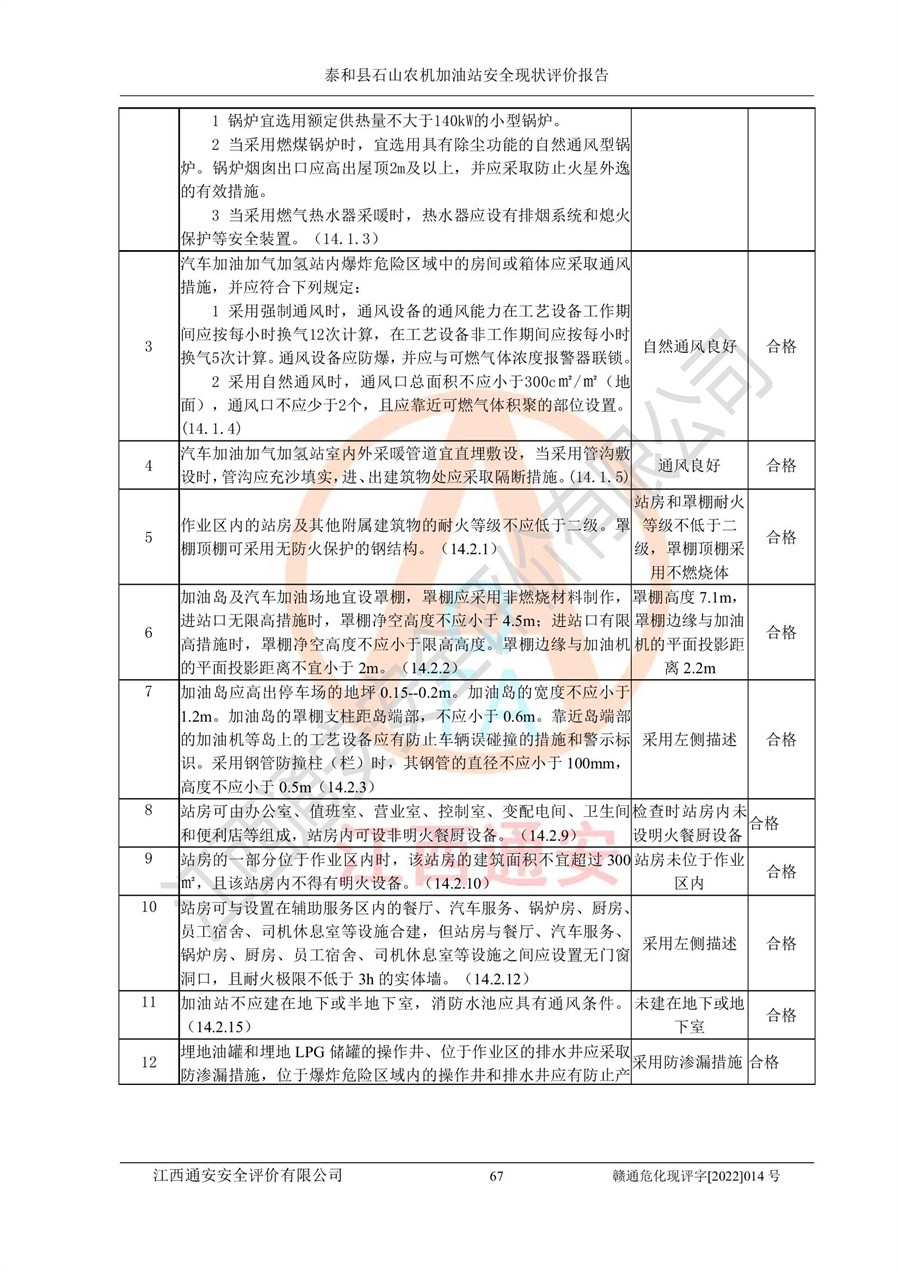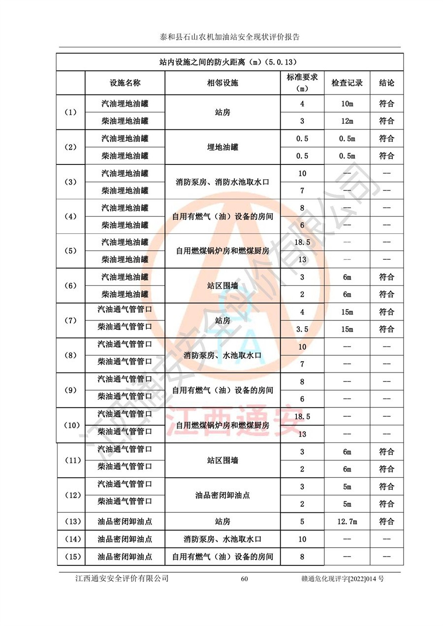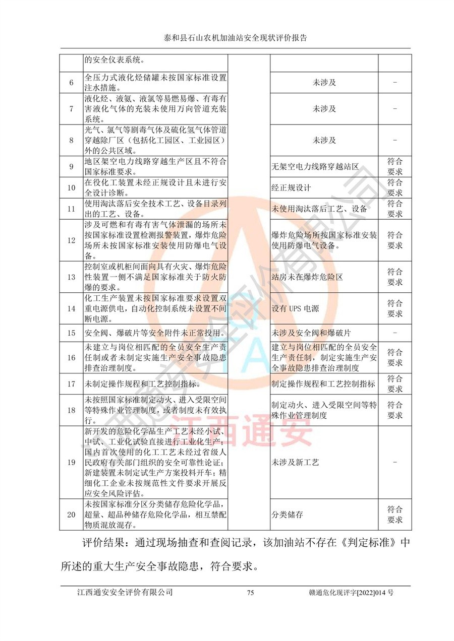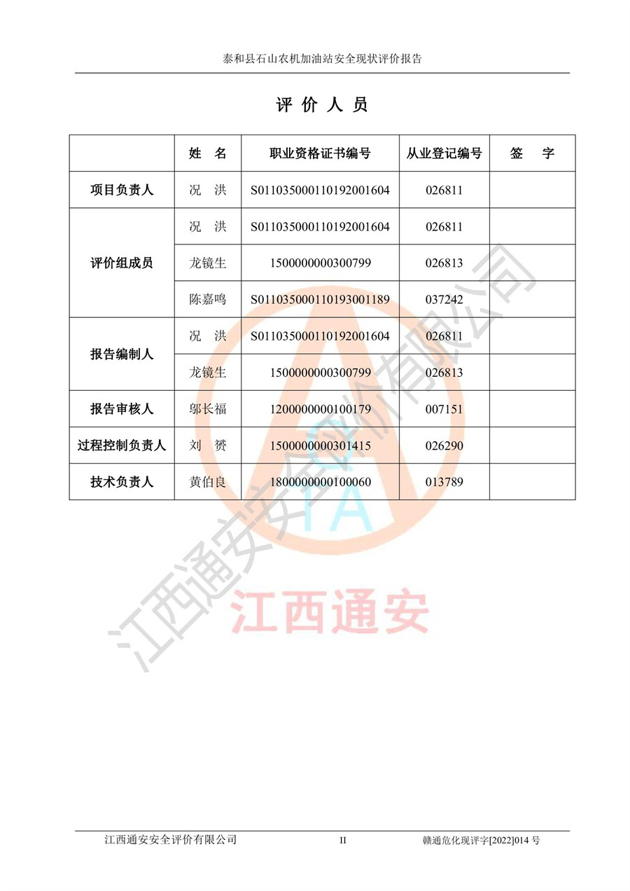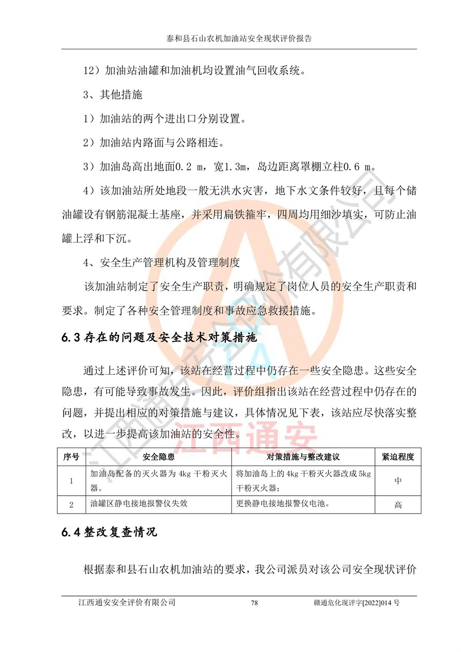 泰和县石山农机加油站安全现状评价报告