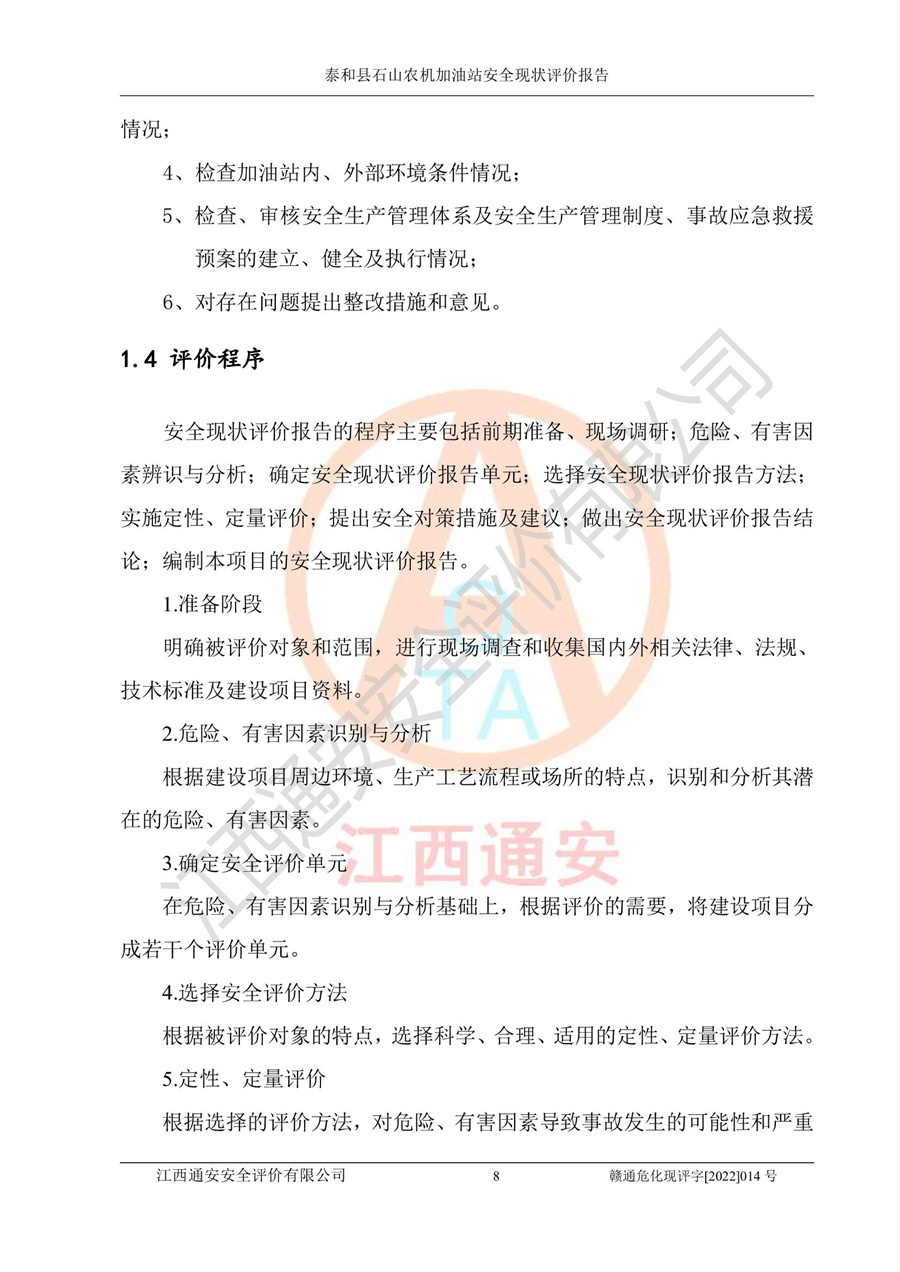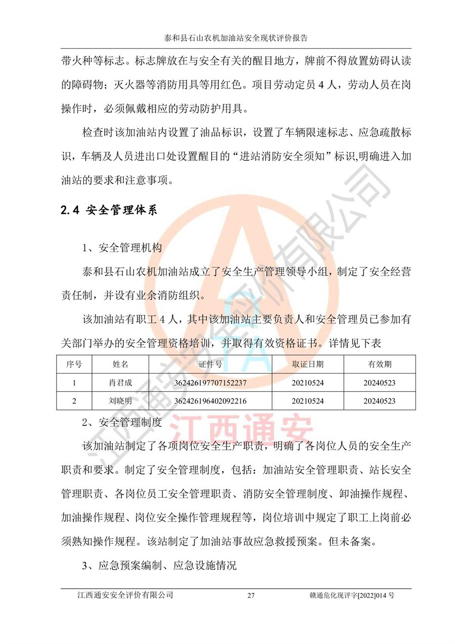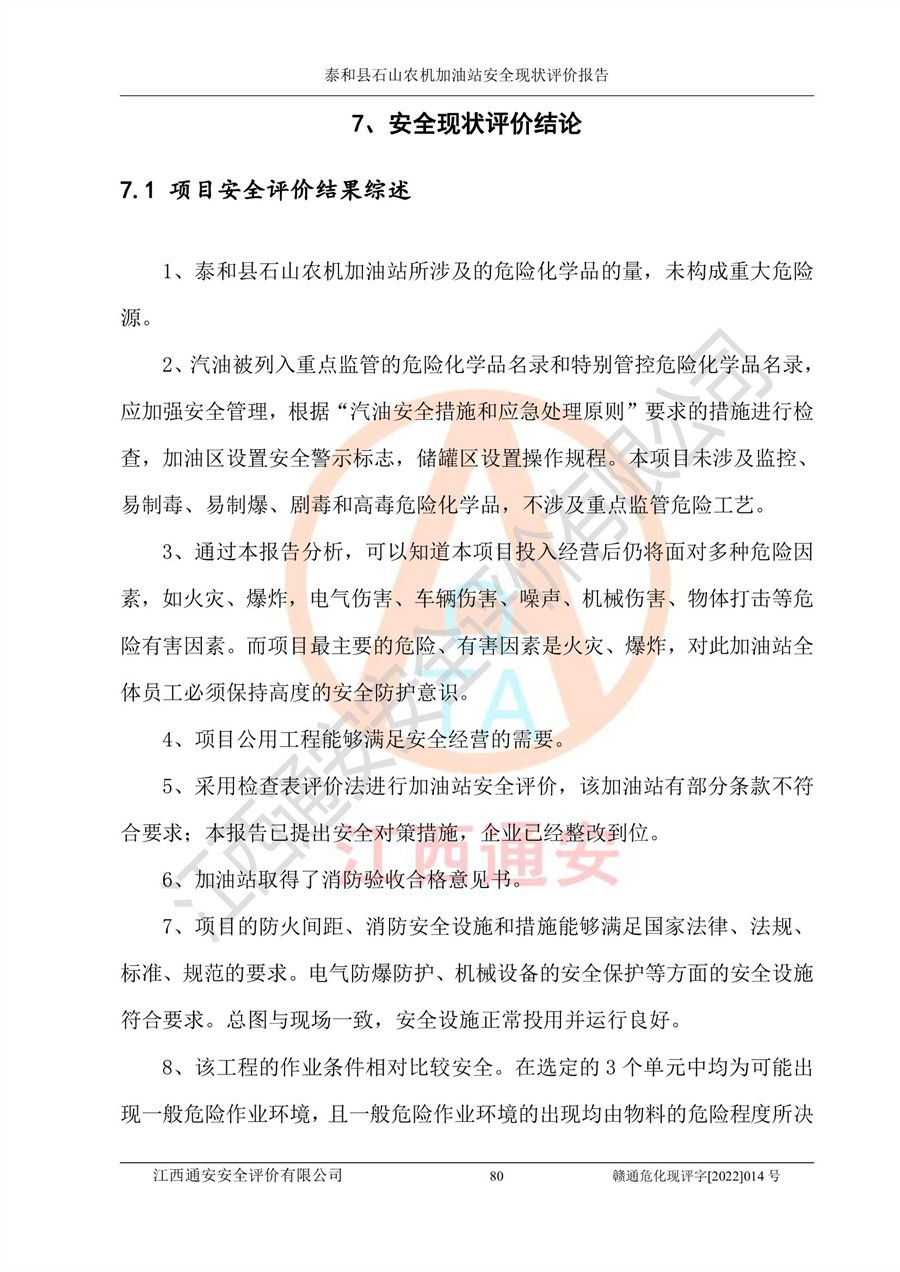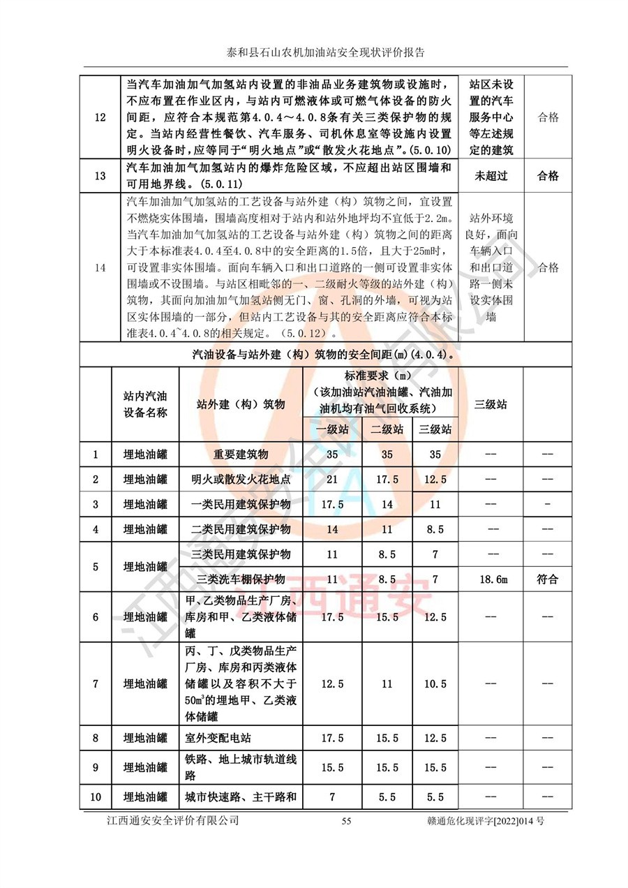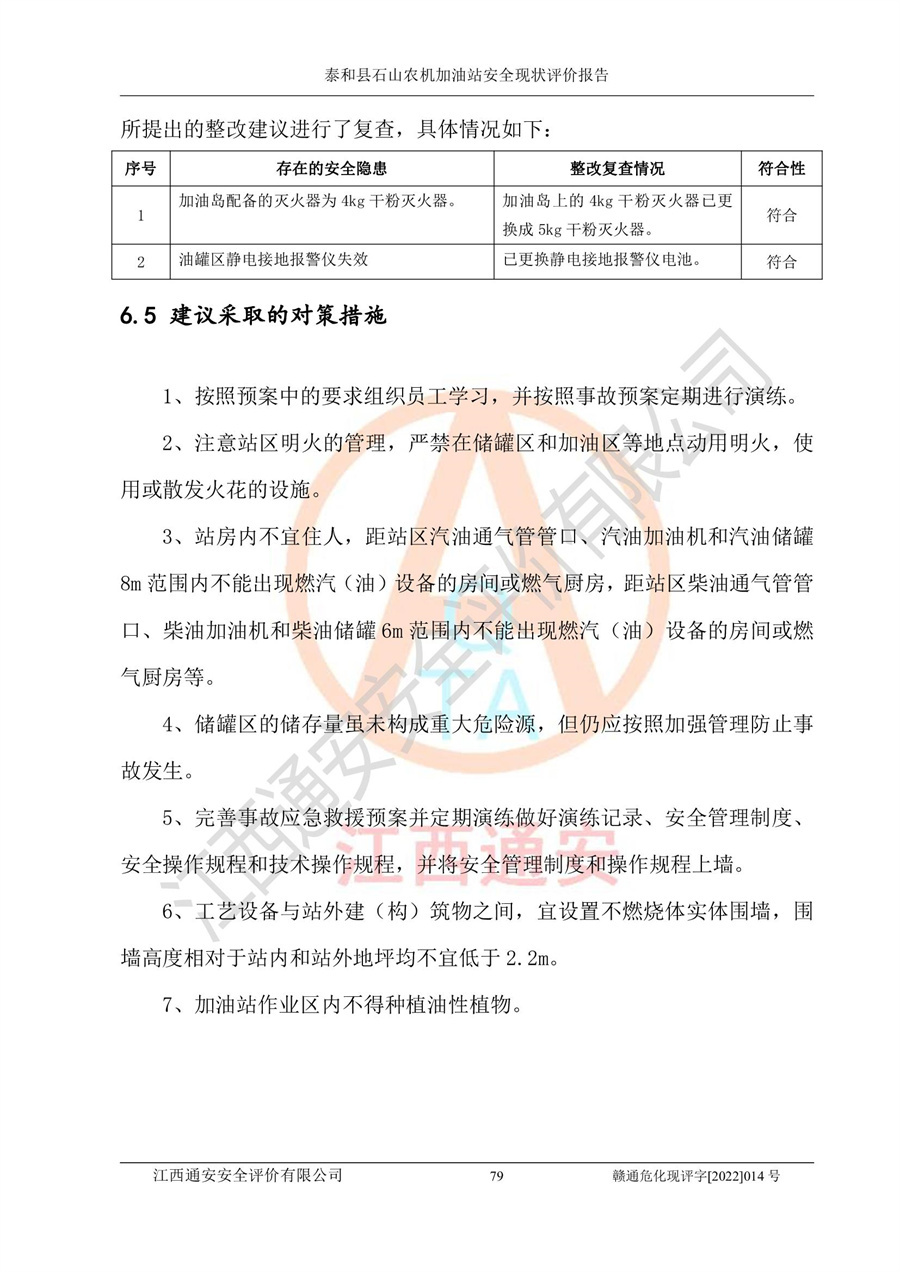 泰和县石山农机加油站安全现状评价报告