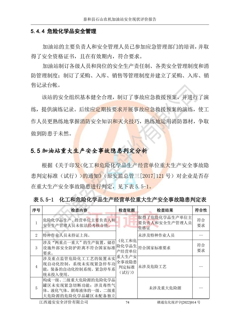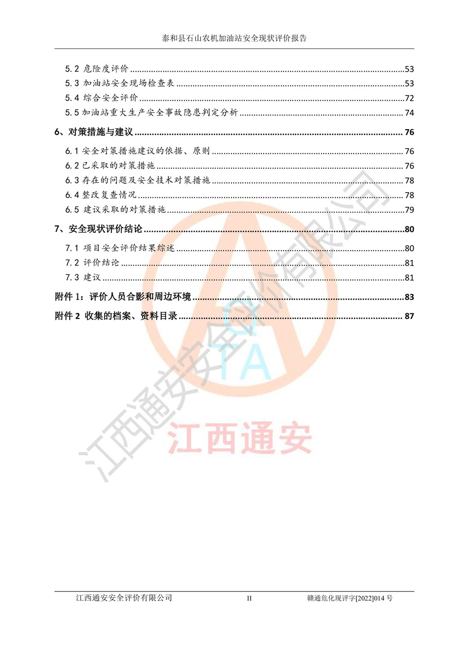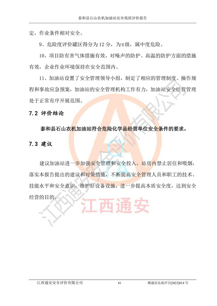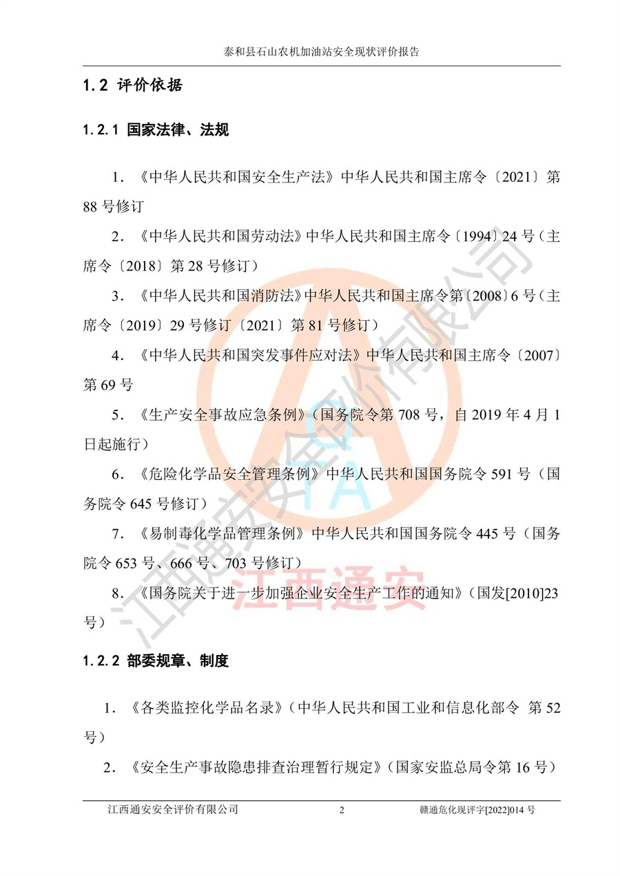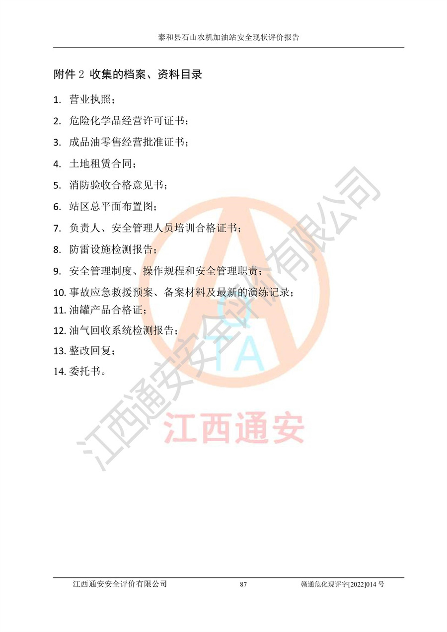 泰和县石山农机加油站安全现状评价报告