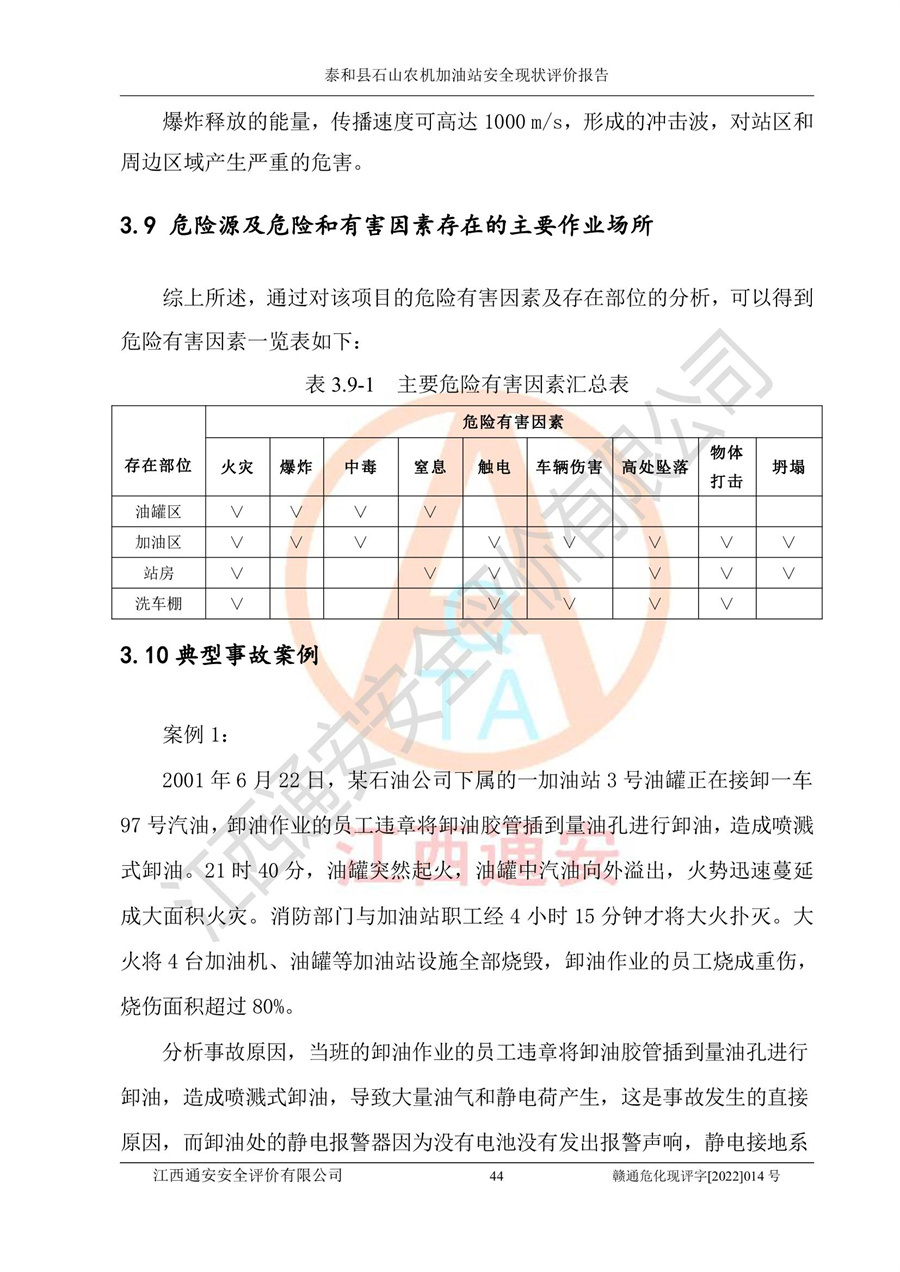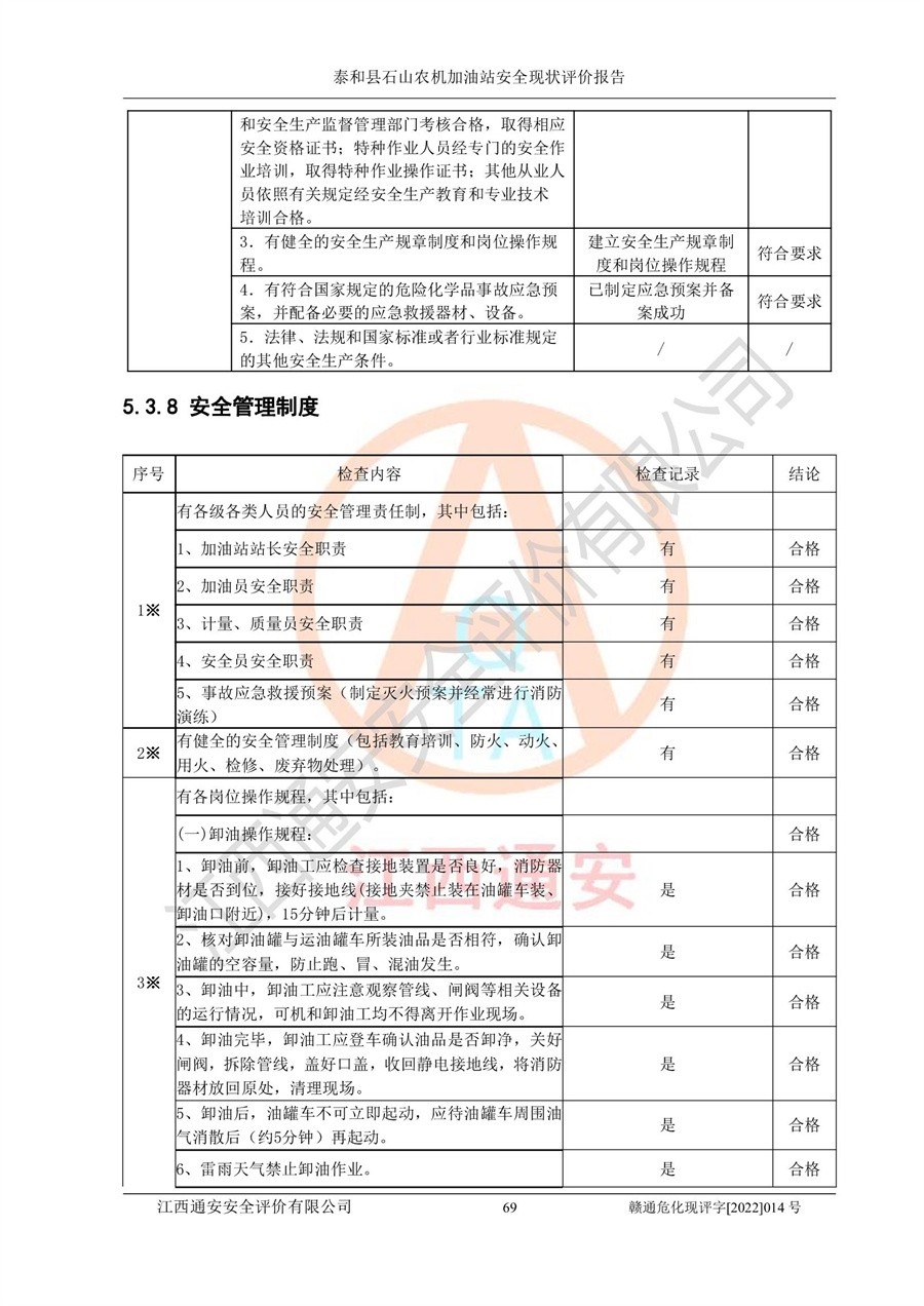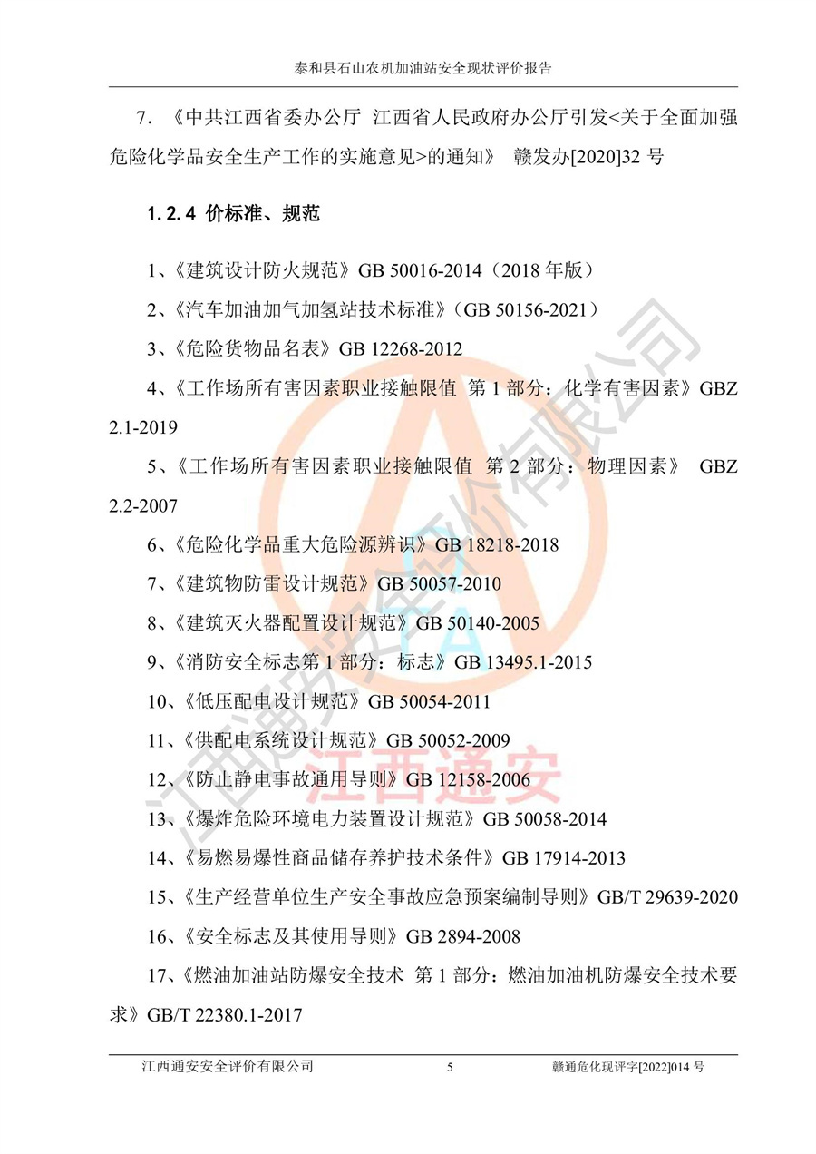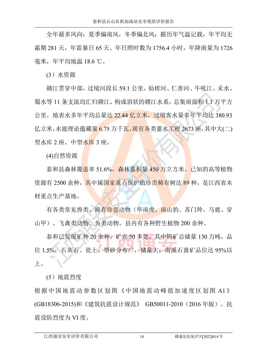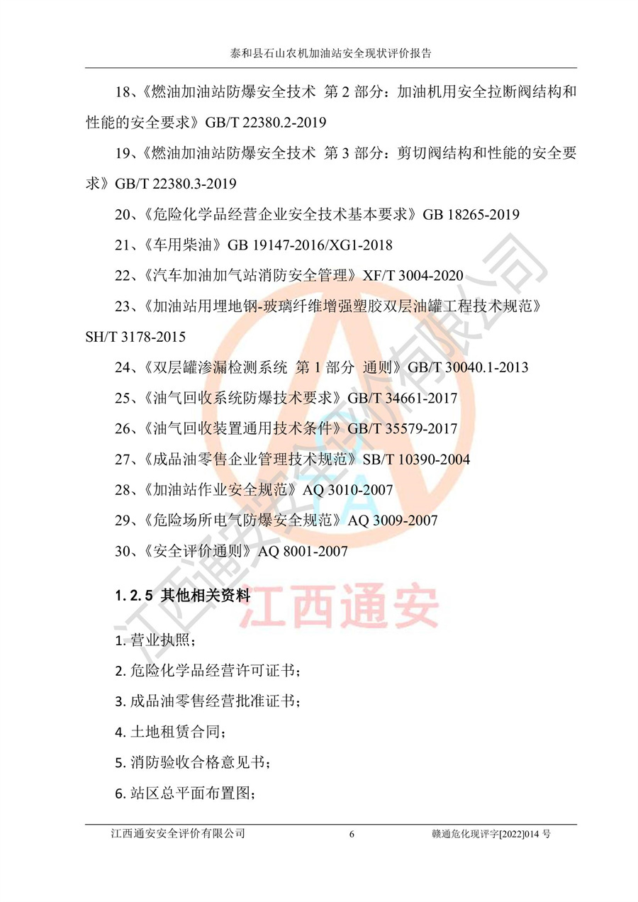 泰和县石山农机加油站安全现状评价报告