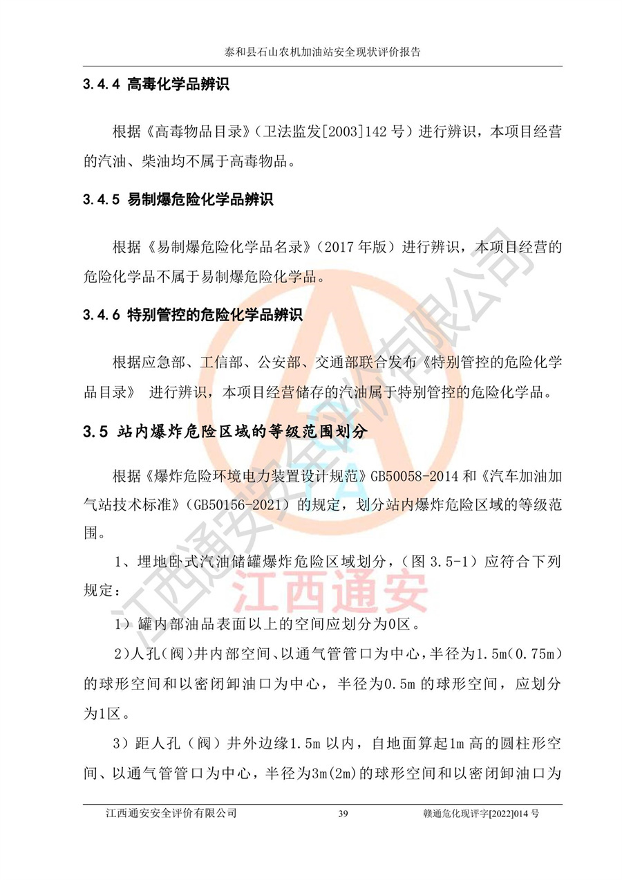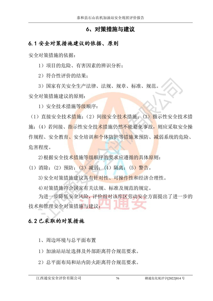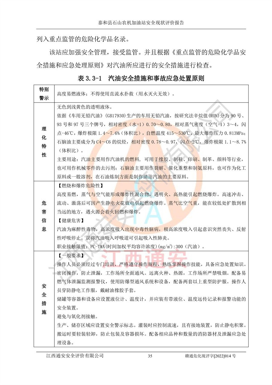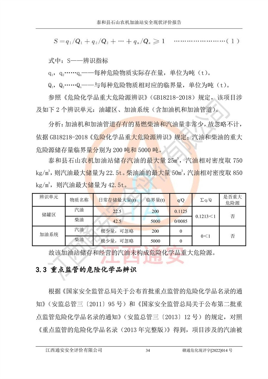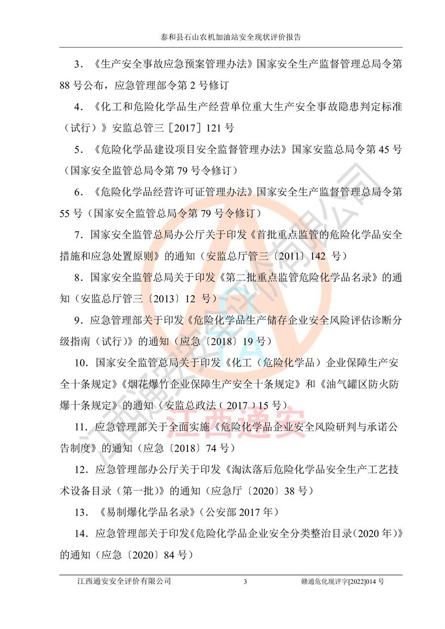 泰和县石山农机加油站安全现状评价报告