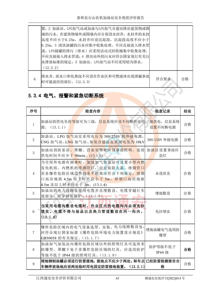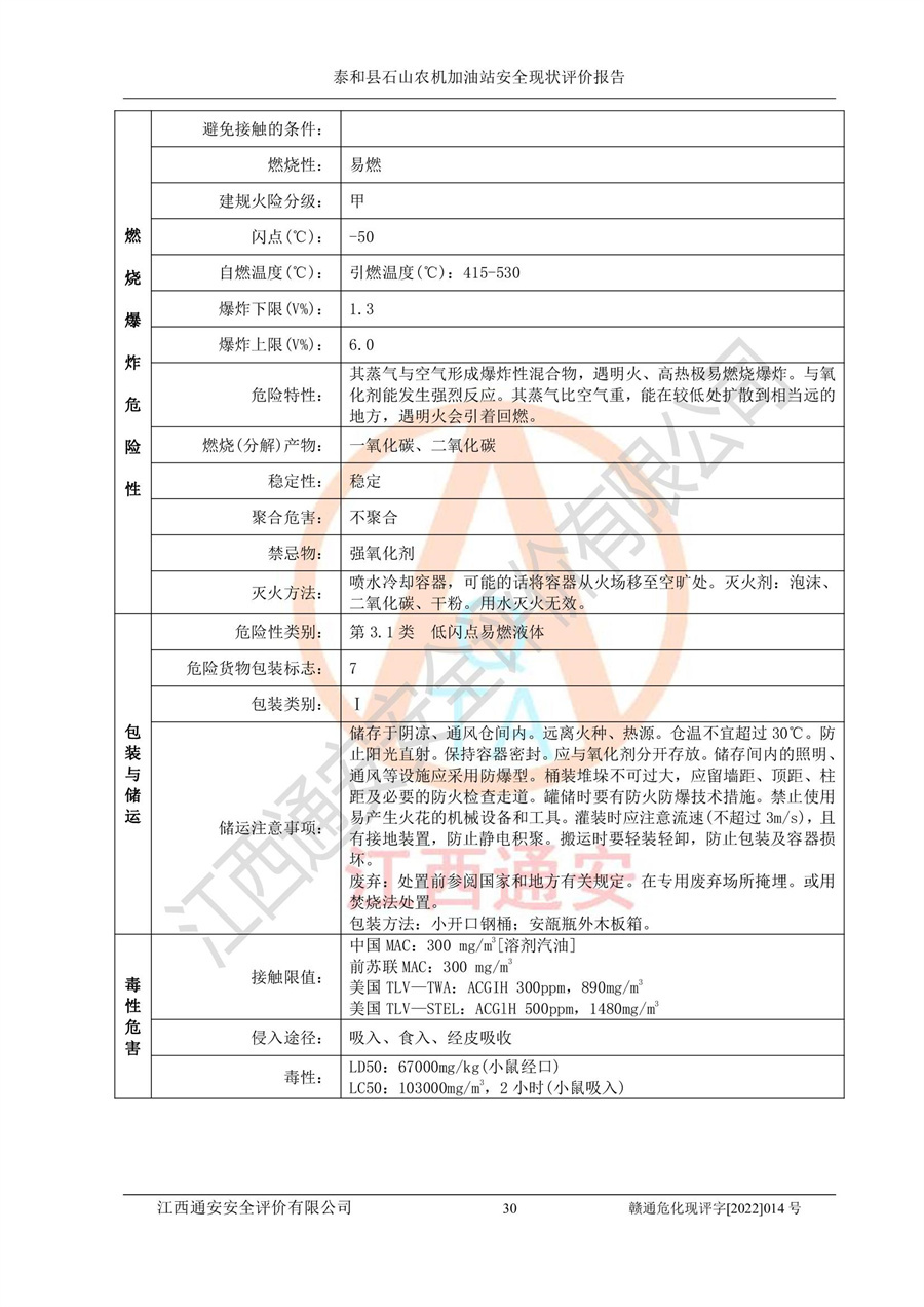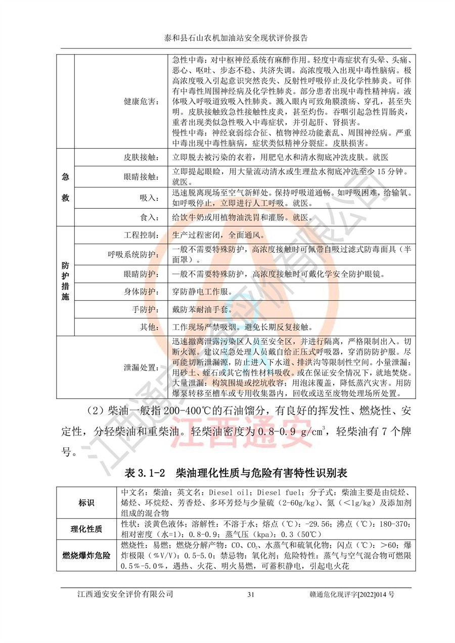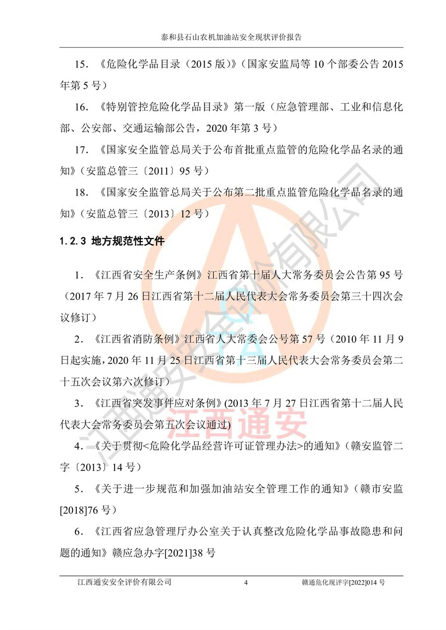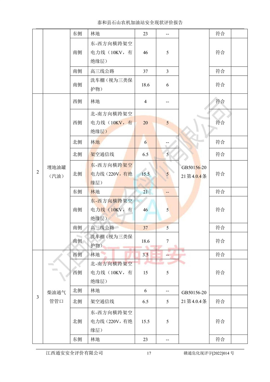 泰和县石山农机加油站安全现状评价报告