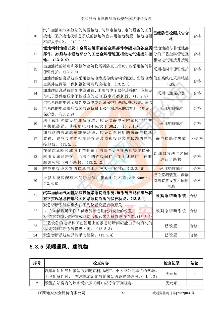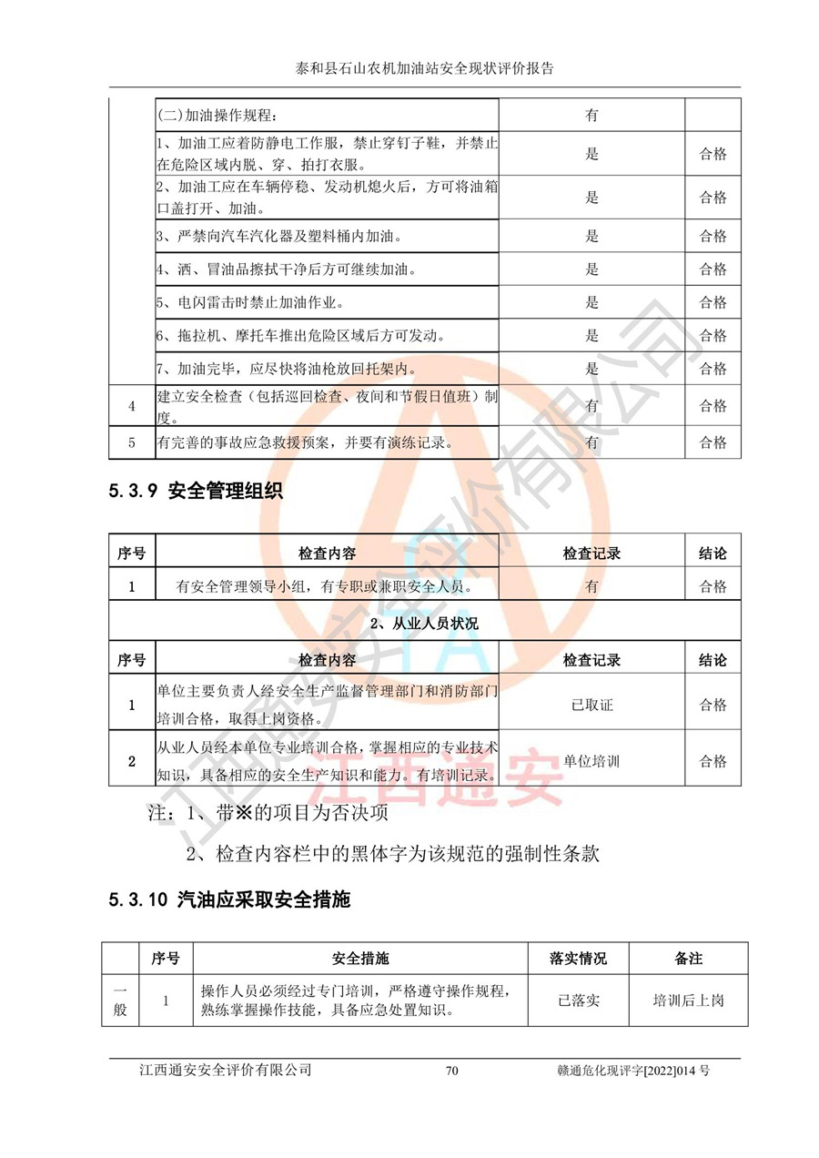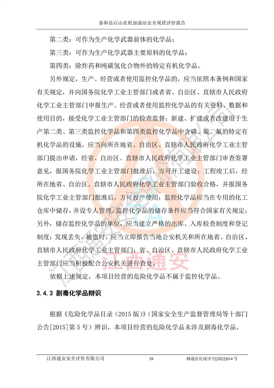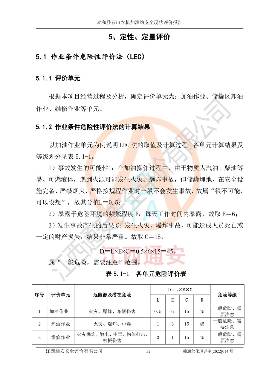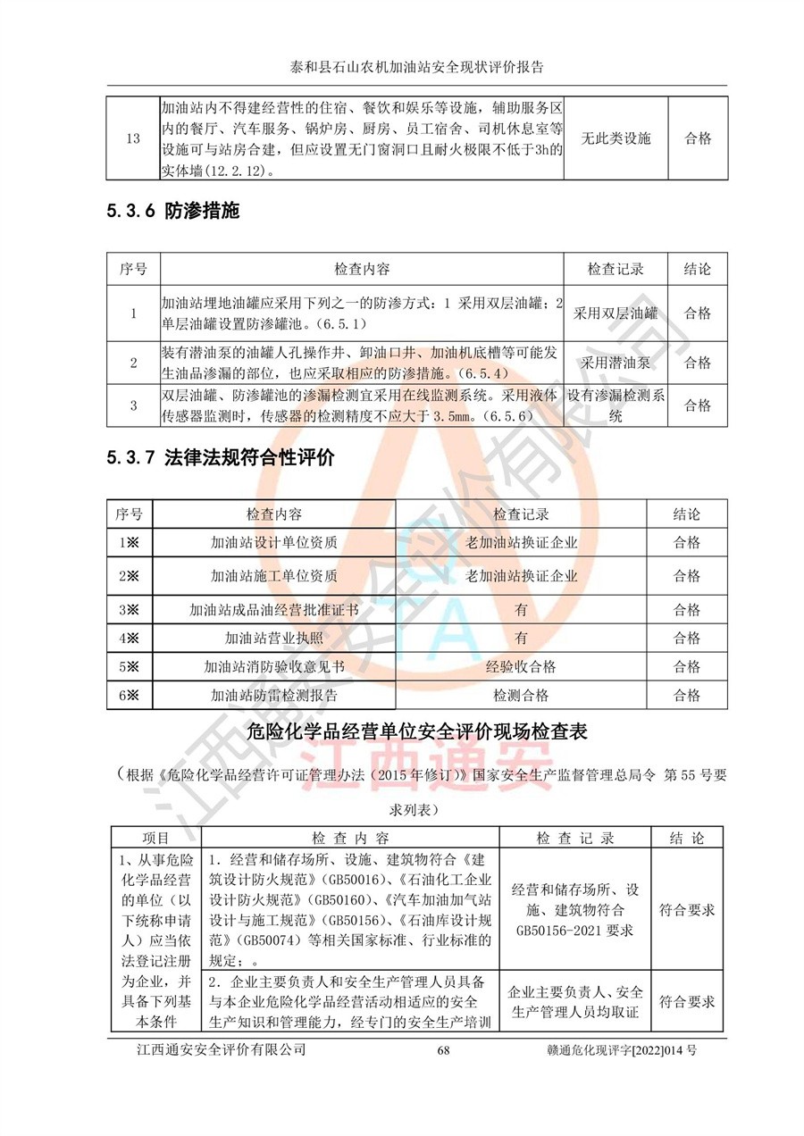 泰和县石山农机加油站安全现状评价报告