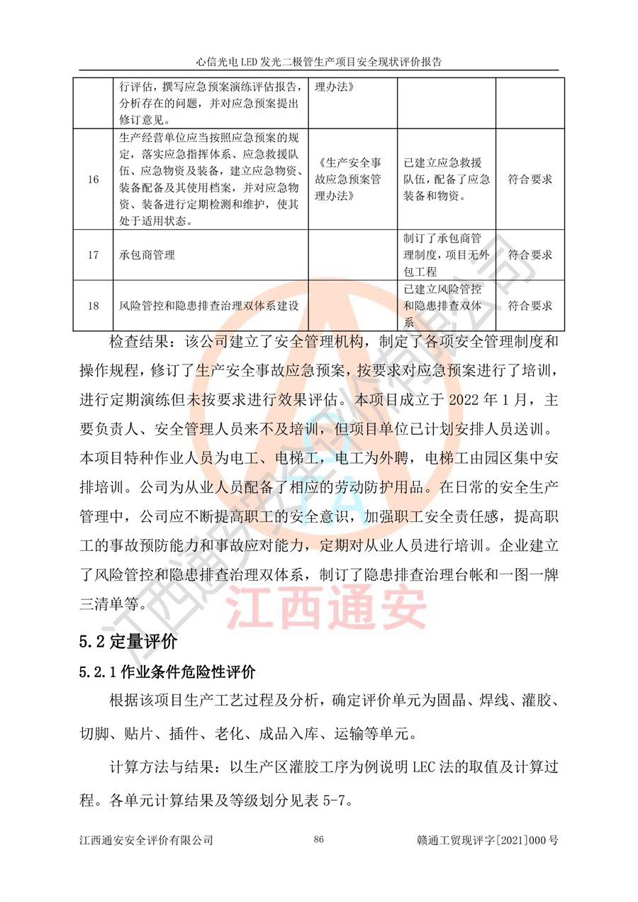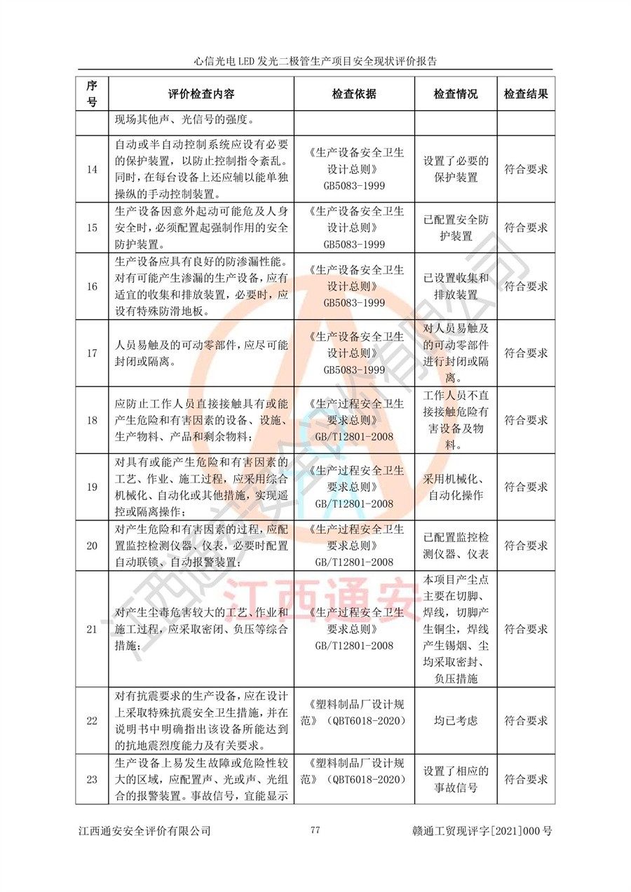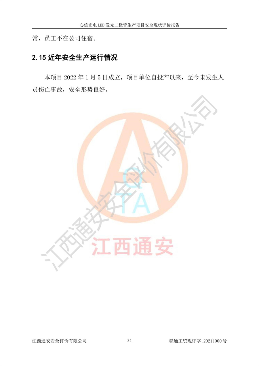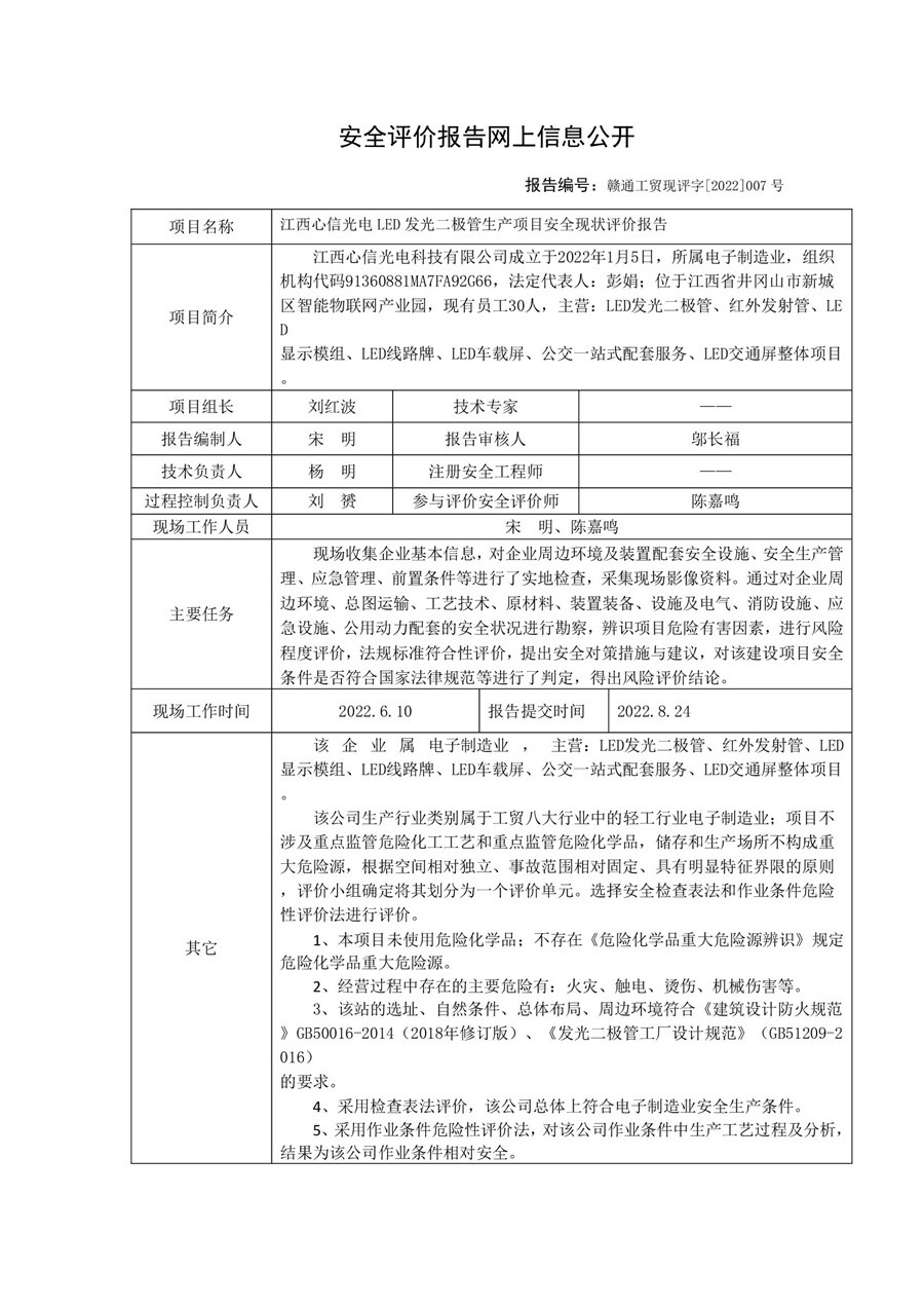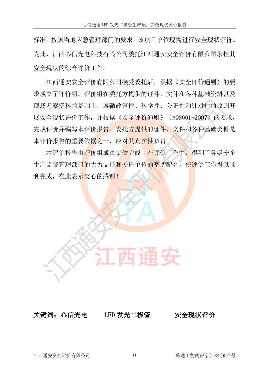 江西心信光电LED发光二极管生产项目安全现状评价报告