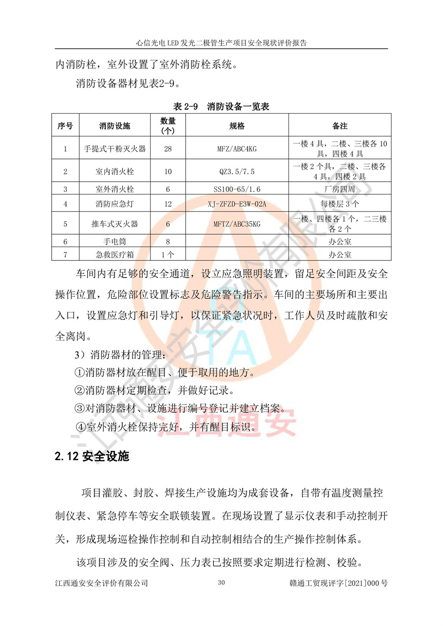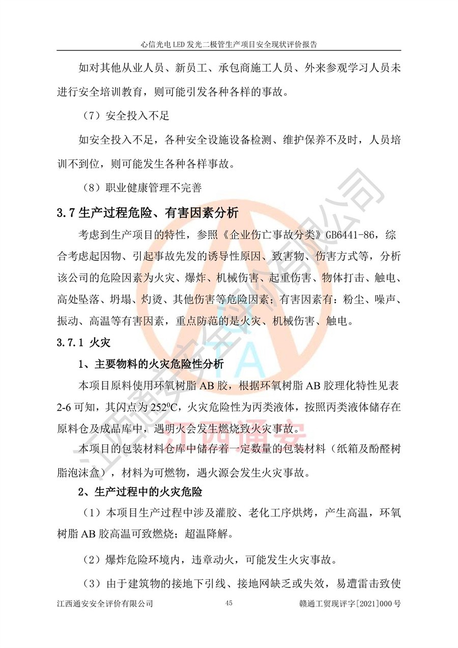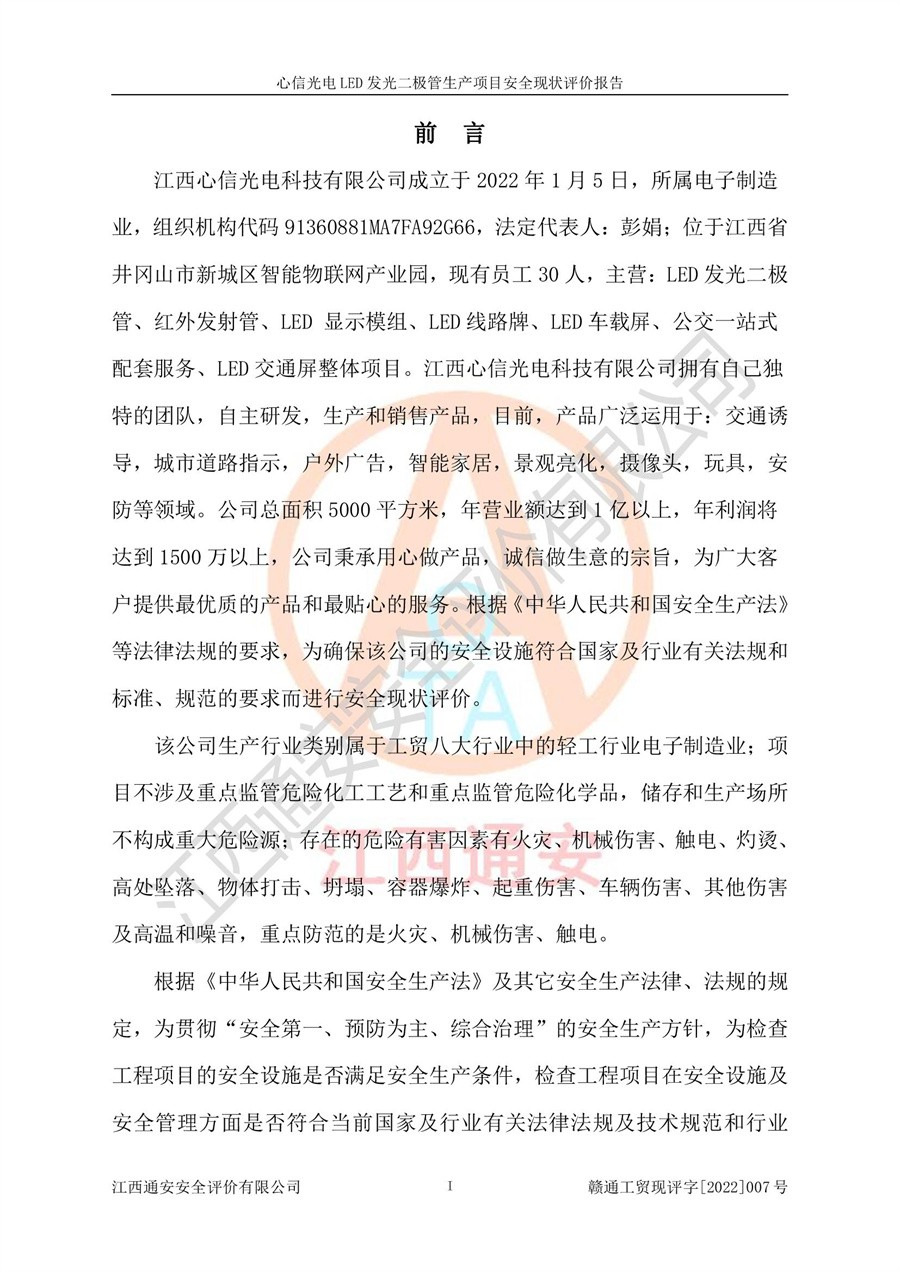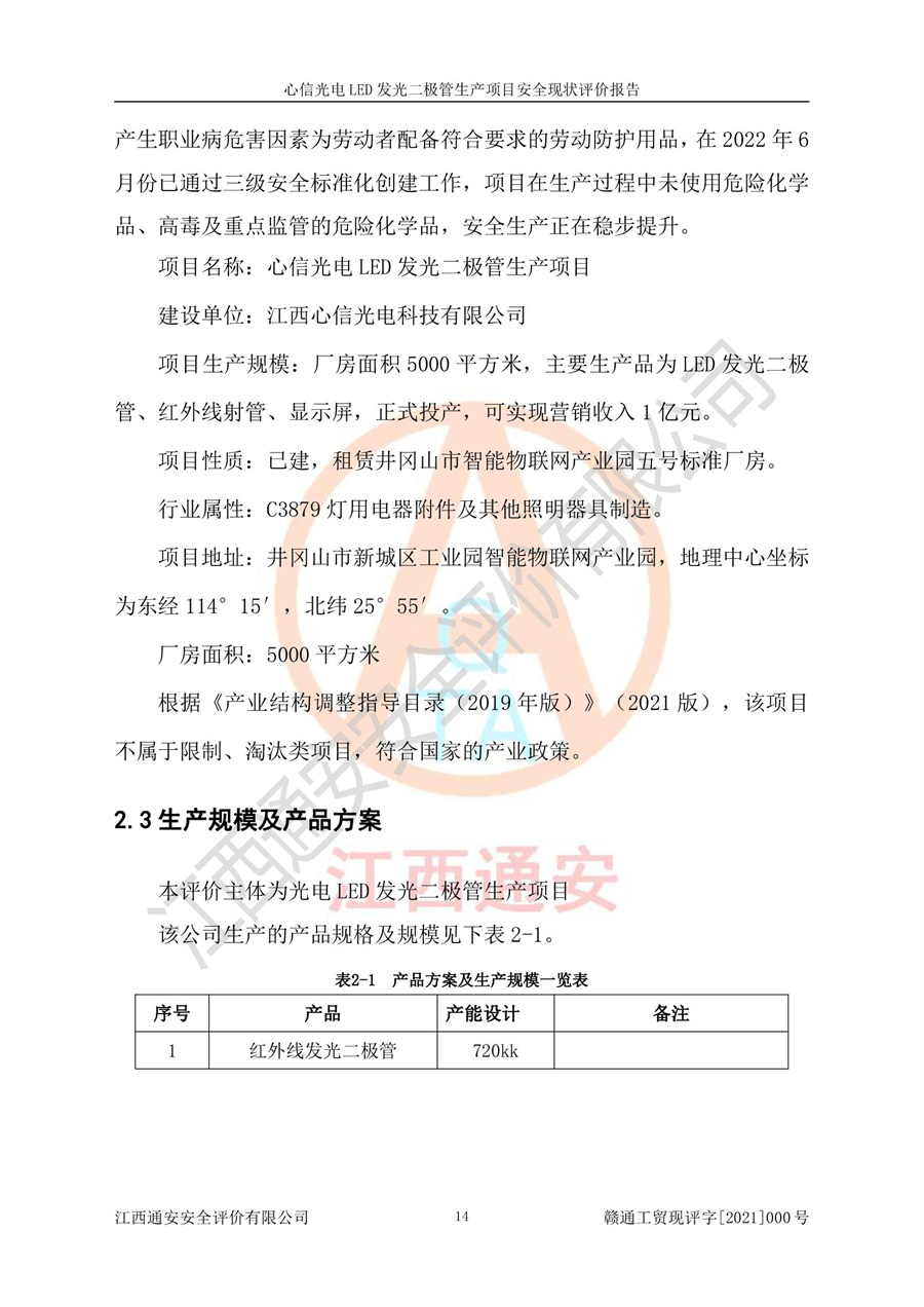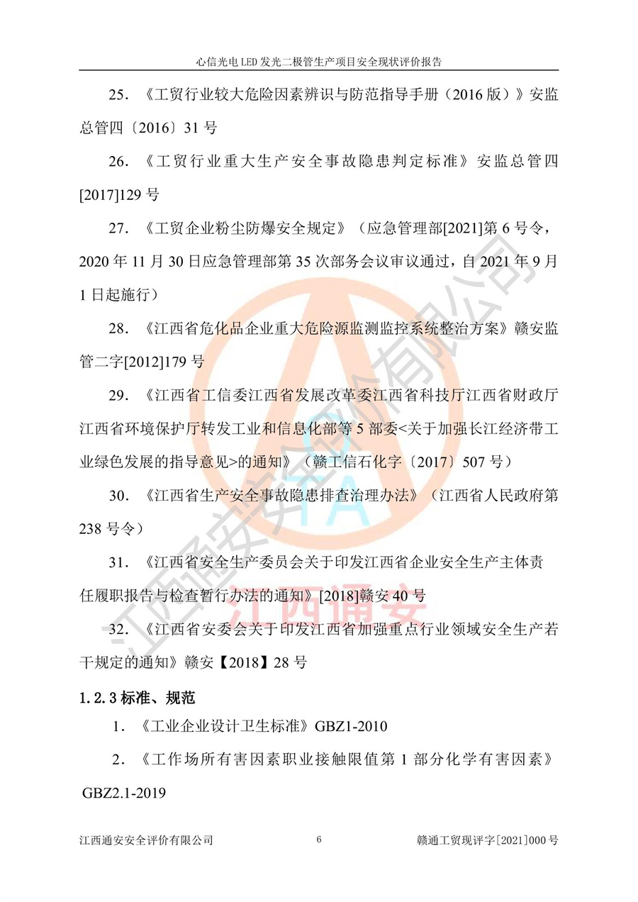 江西心信光电LED发光二极管生产项目安全现状评价报告