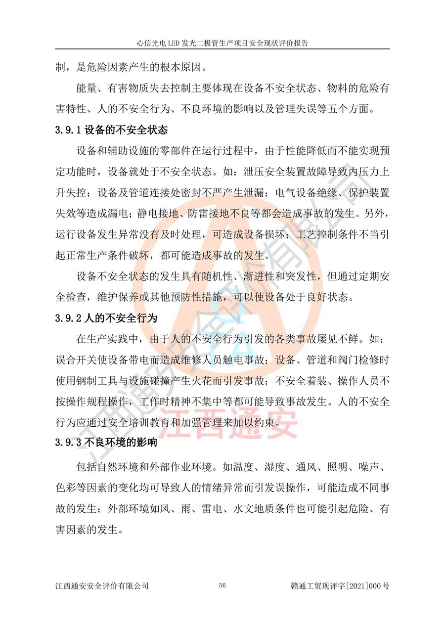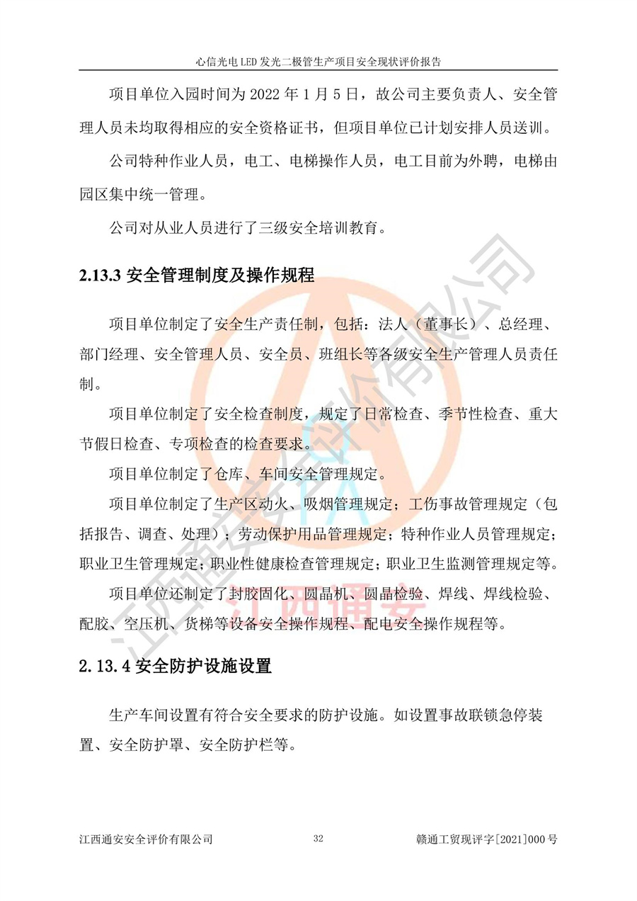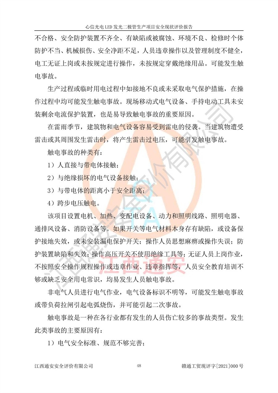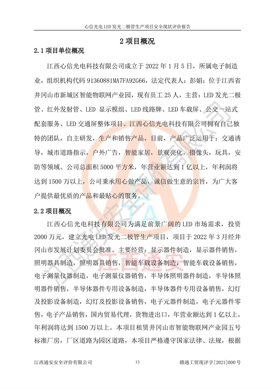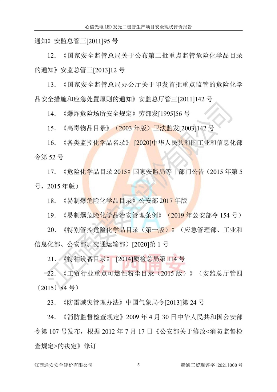 江西心信光电LED发光二极管生产项目安全现状评价报告