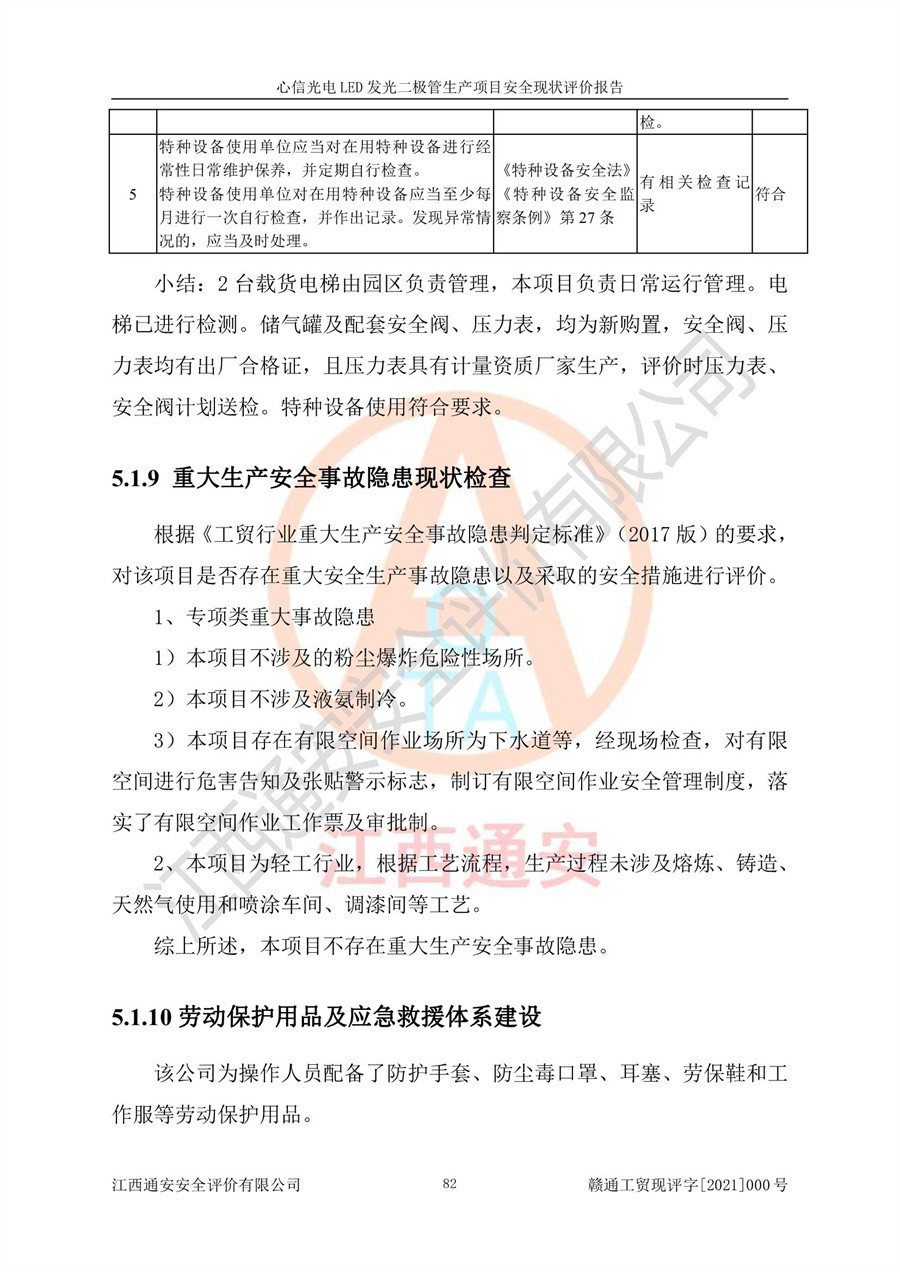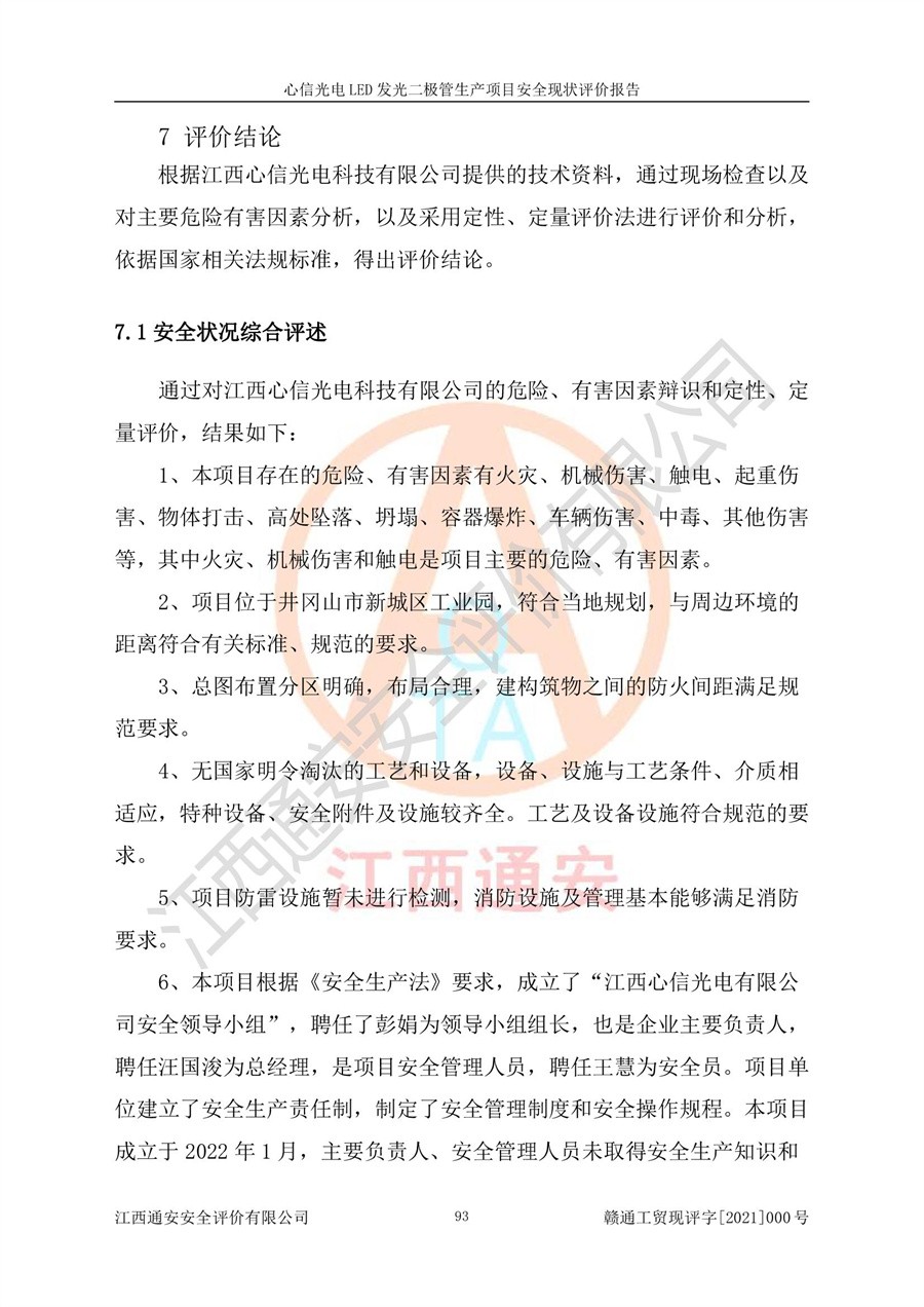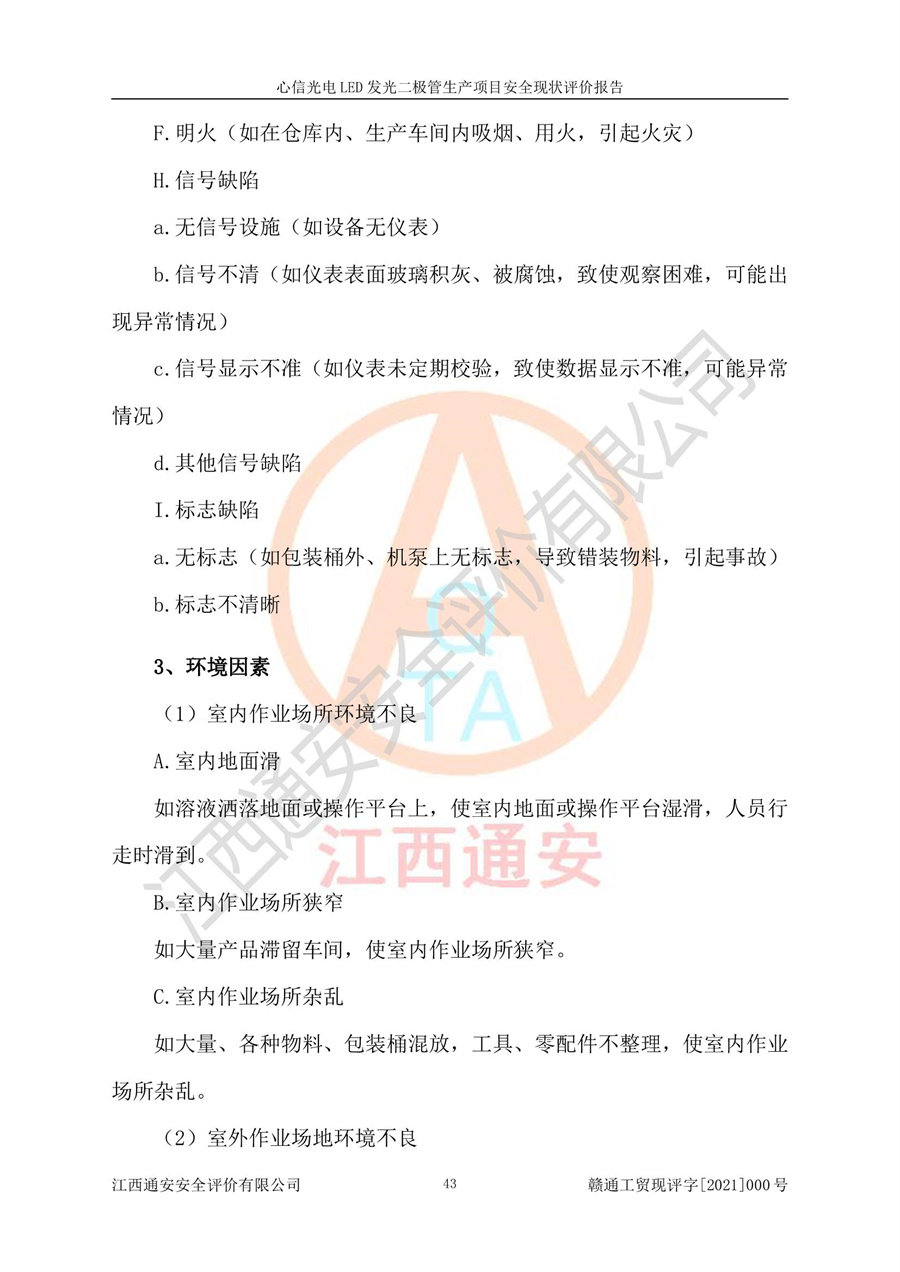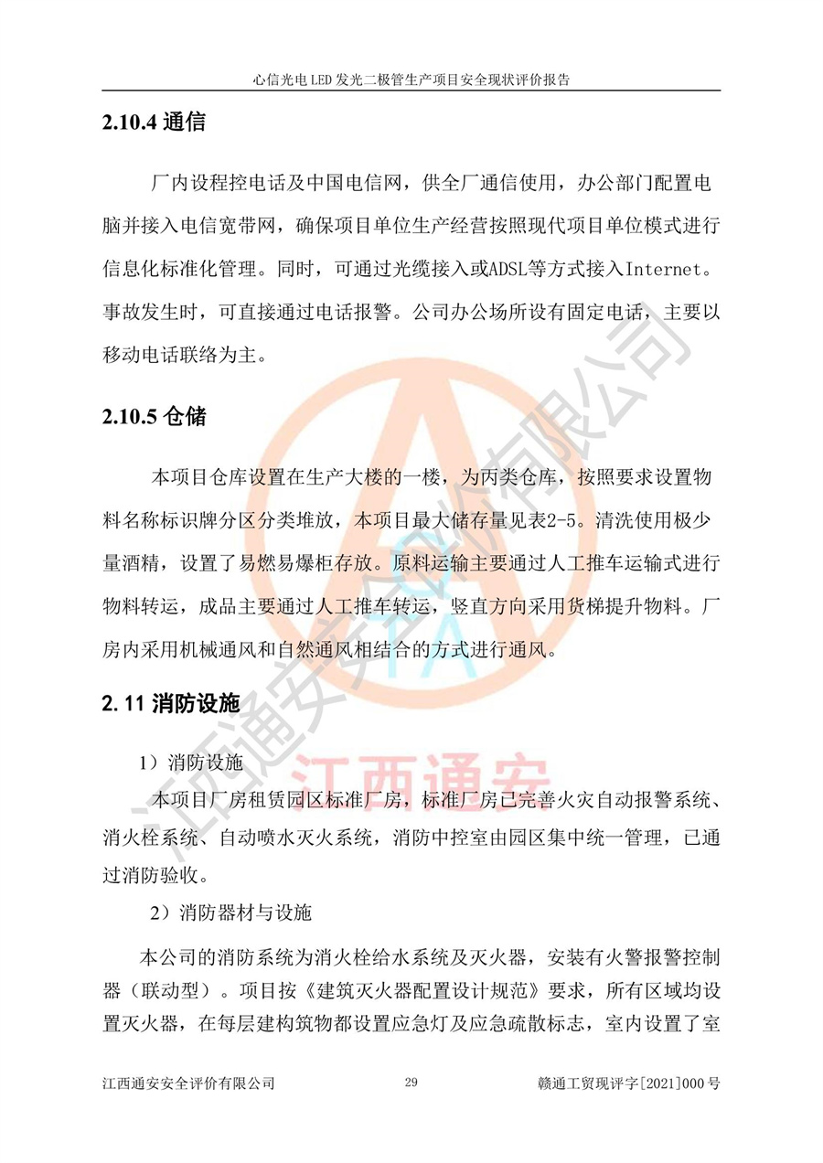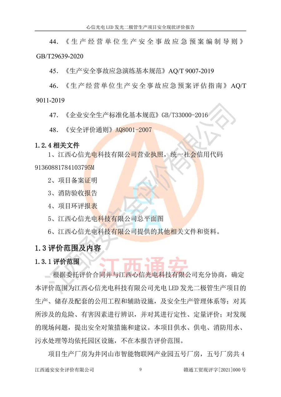 江西心信光电LED发光二极管生产项目安全现状评价报告