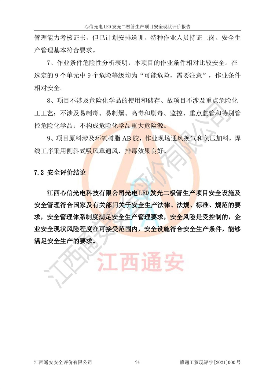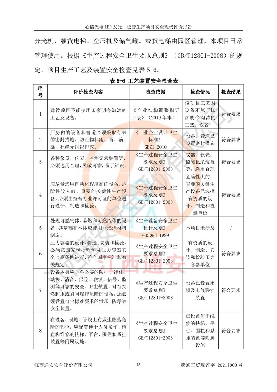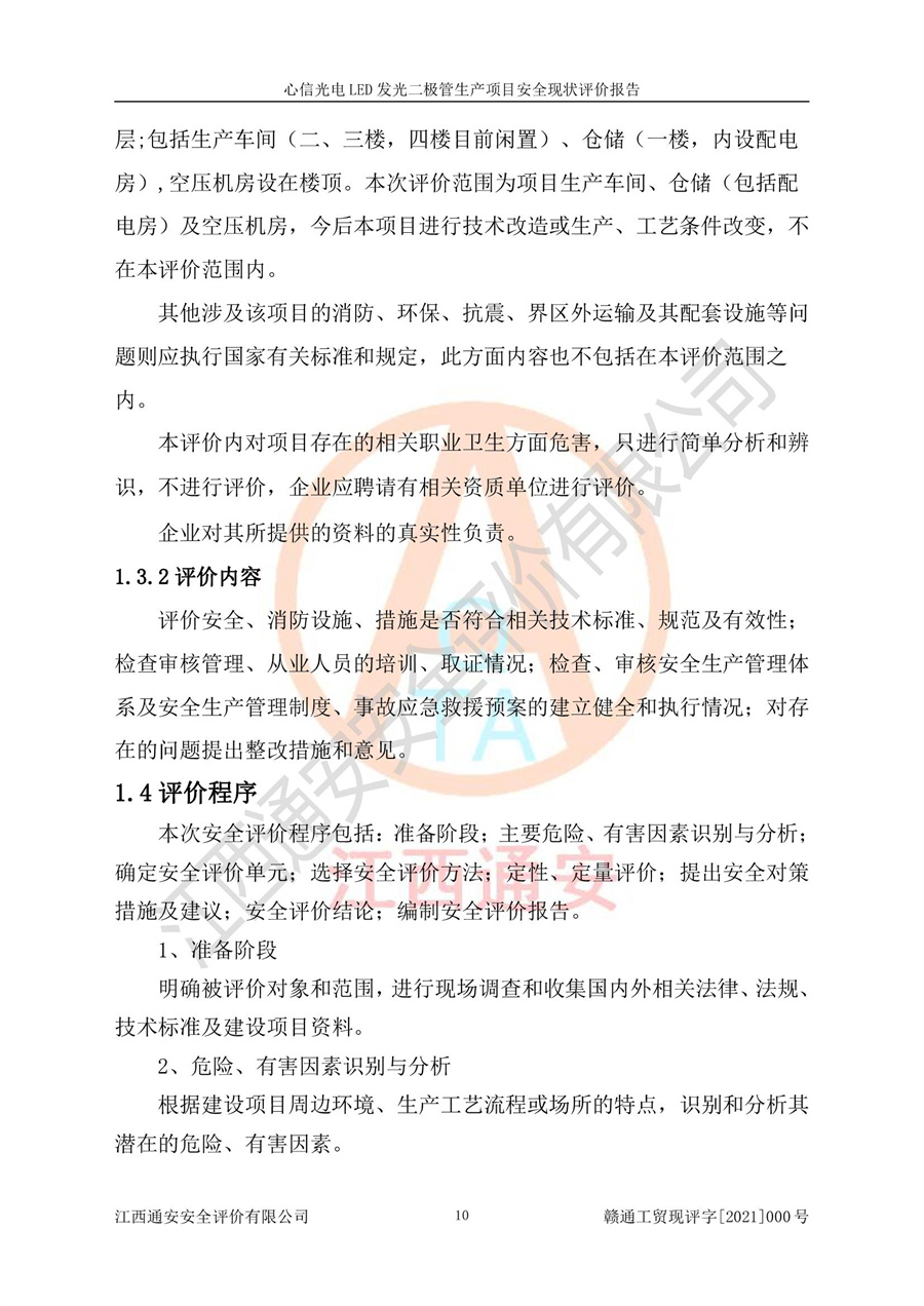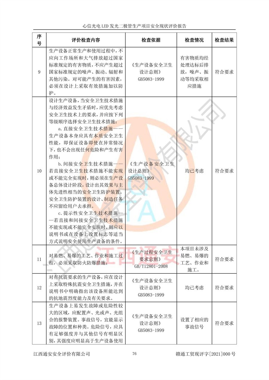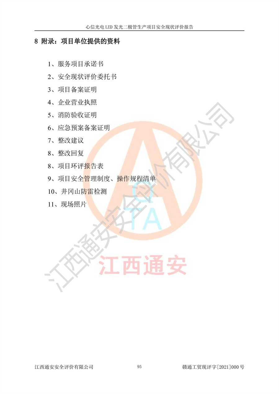 江西心信光电LED发光二极管生产项目安全现状评价报告