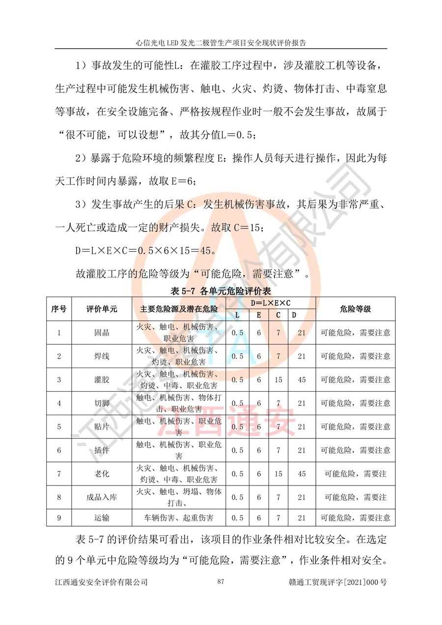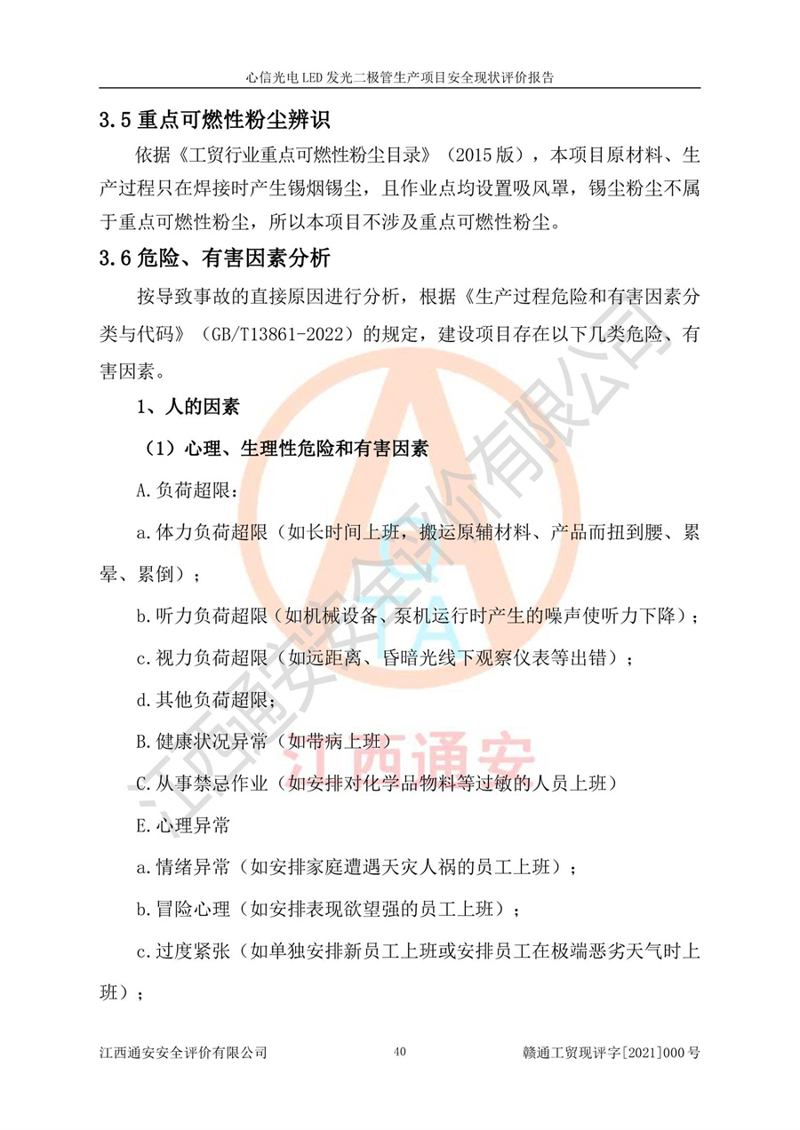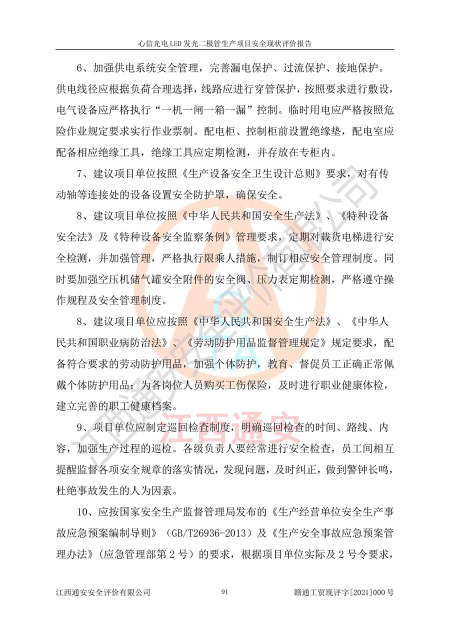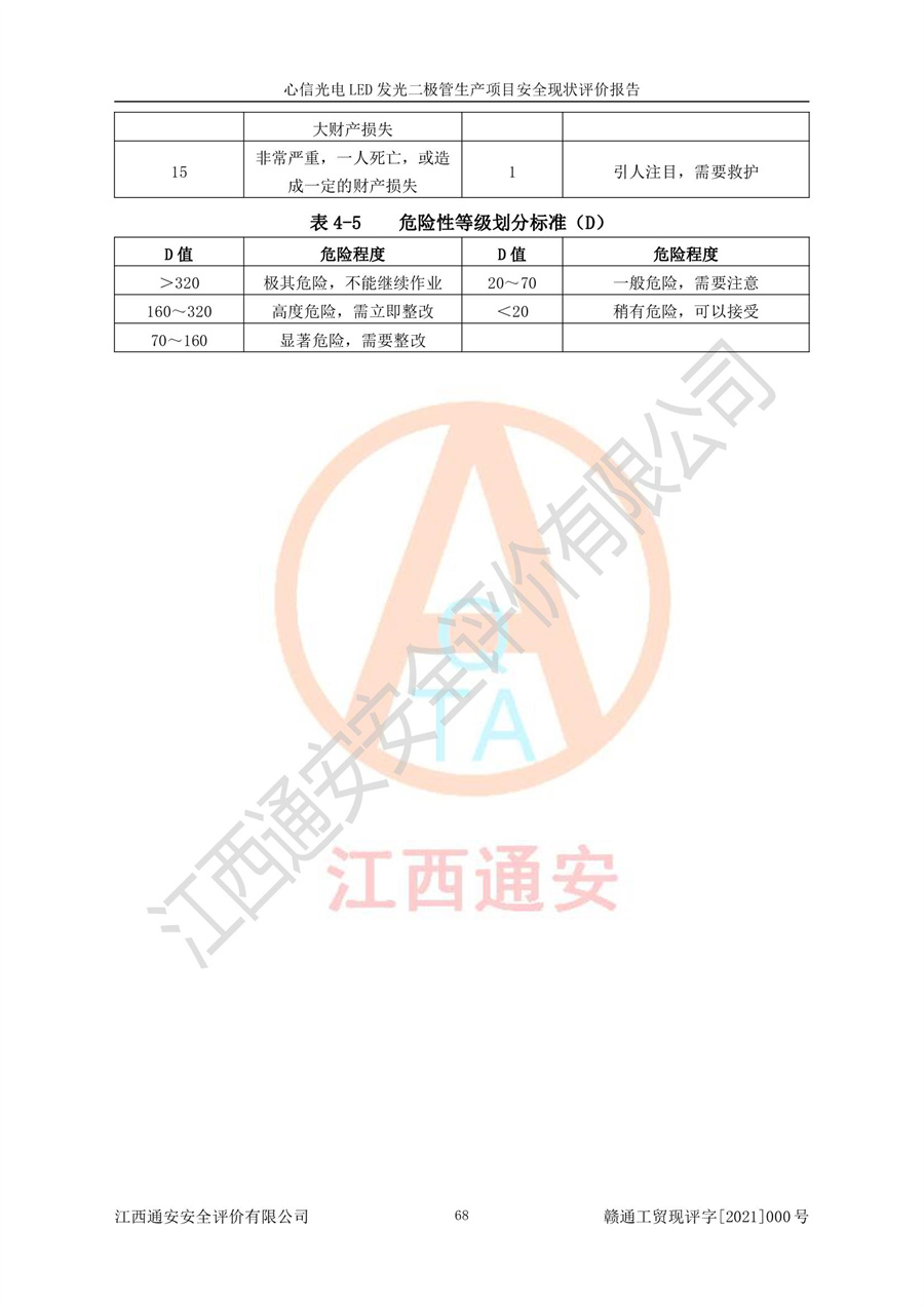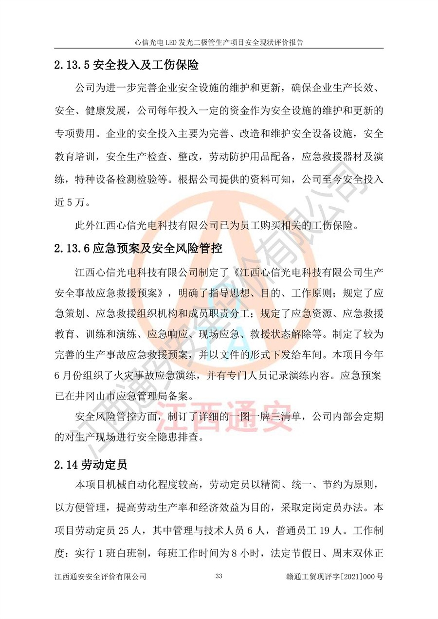 江西心信光电LED发光二极管生产项目安全现状评价报告