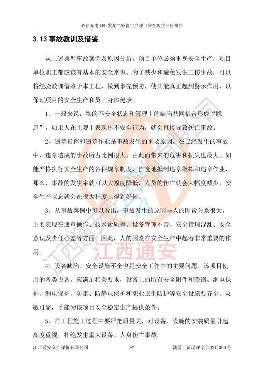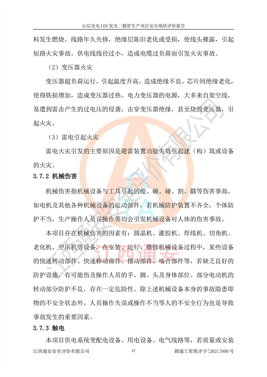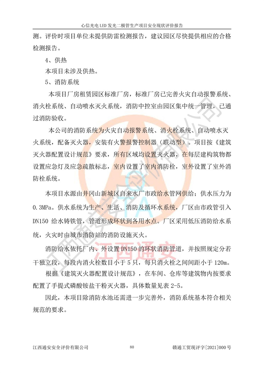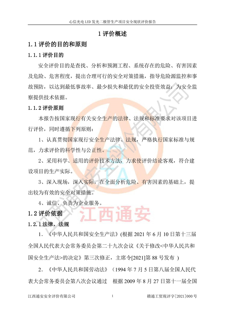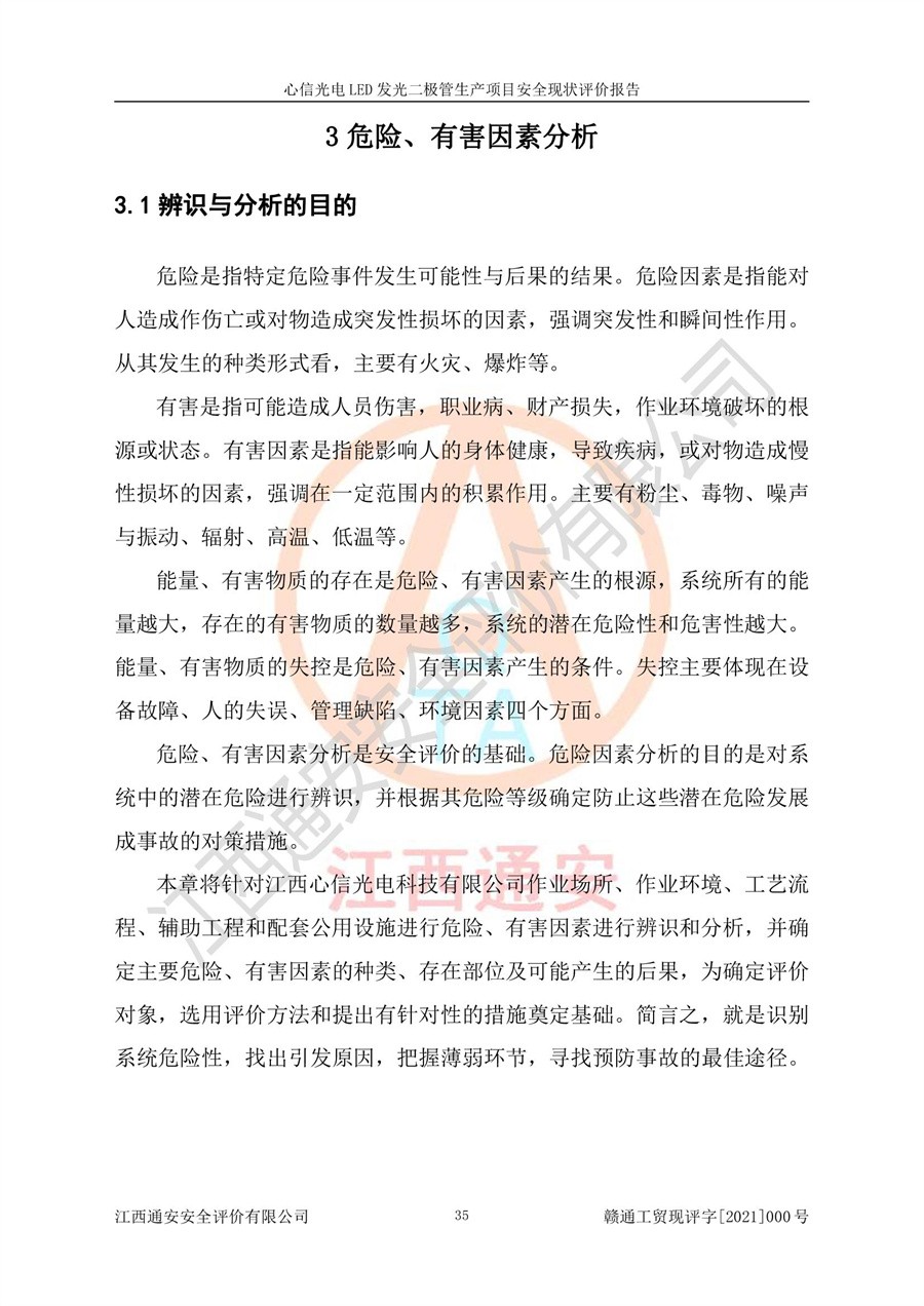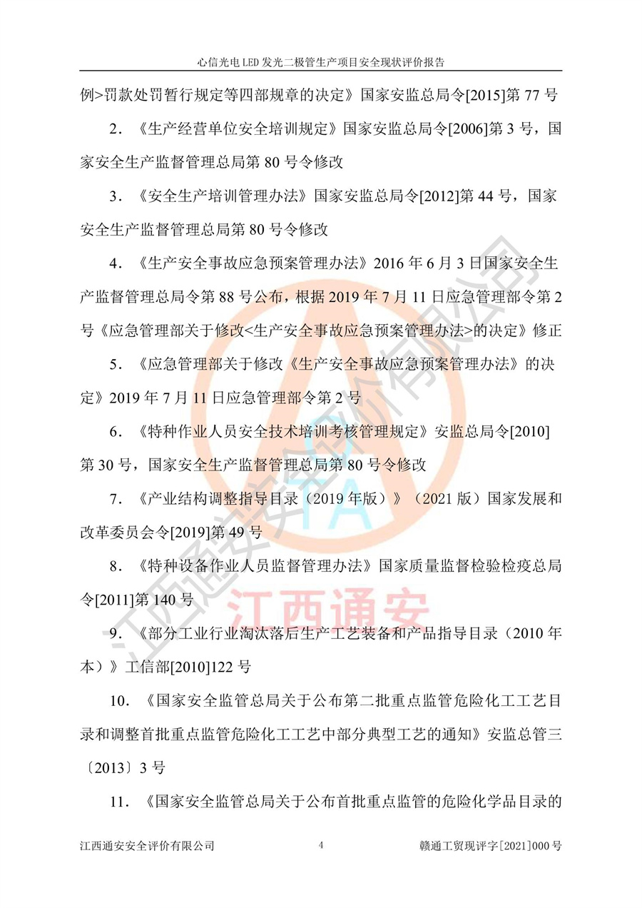 江西心信光电LED发光二极管生产项目安全现状评价报告
