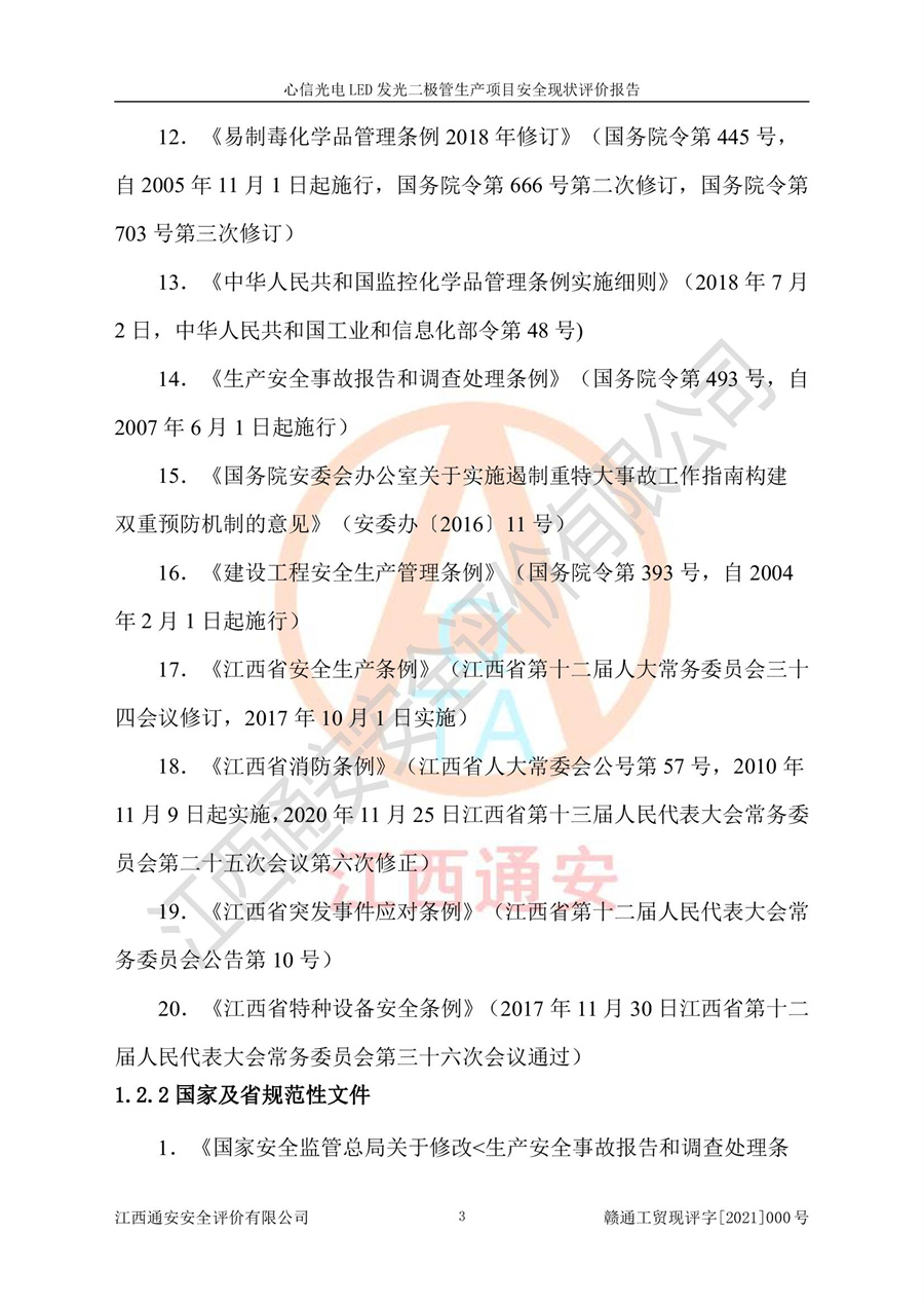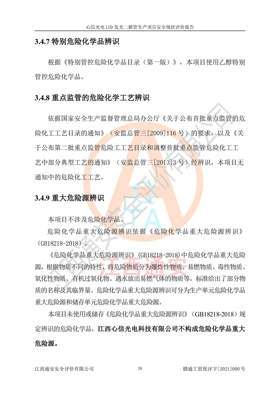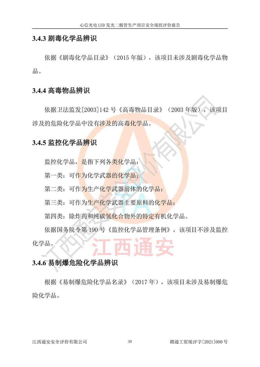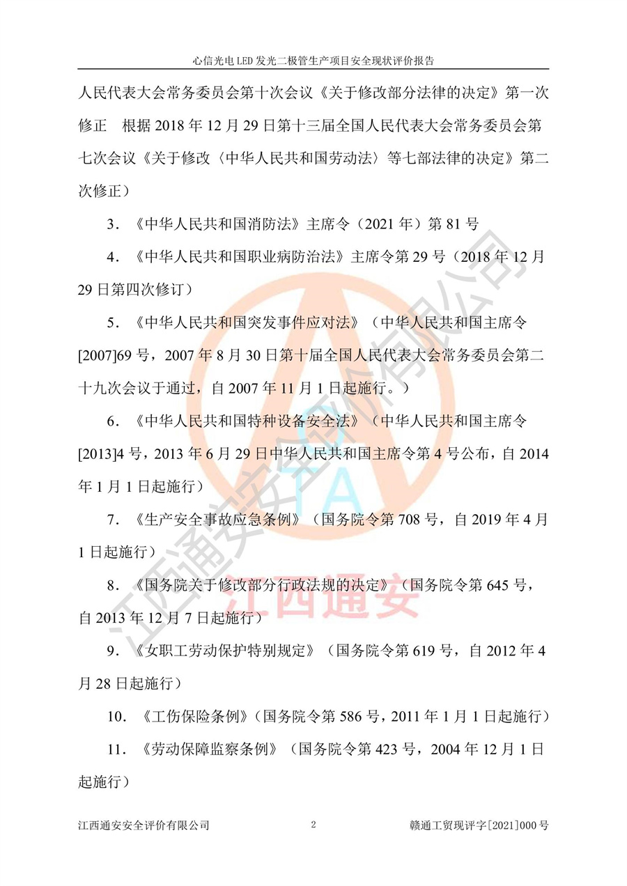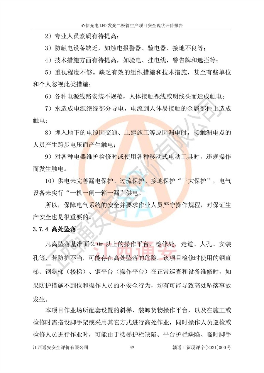 江西心信光电LED发光二极管生产项目安全现状评价报告