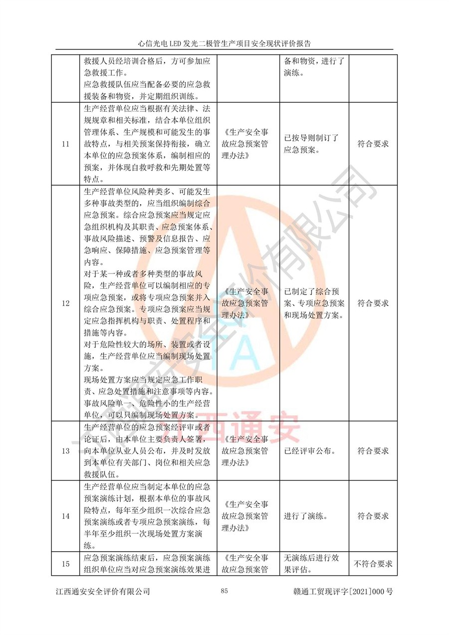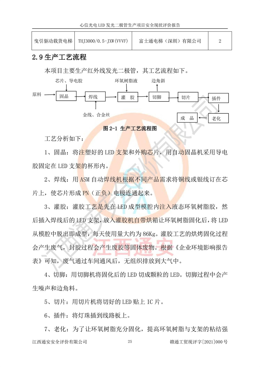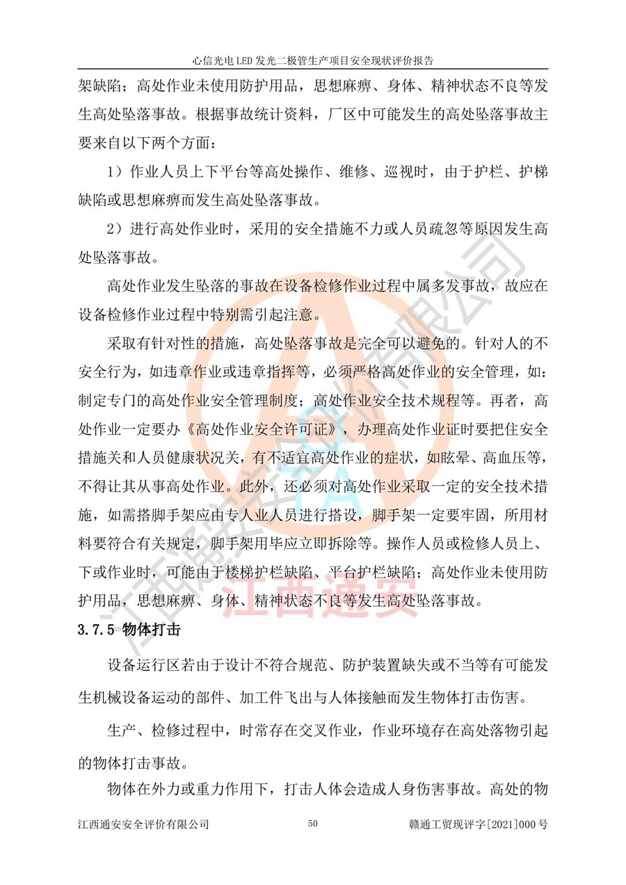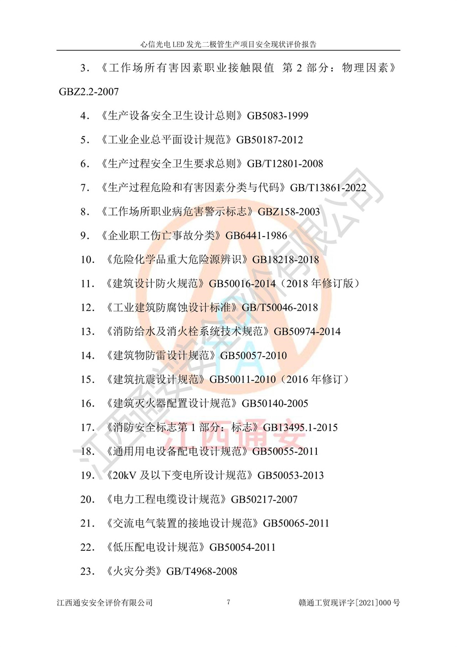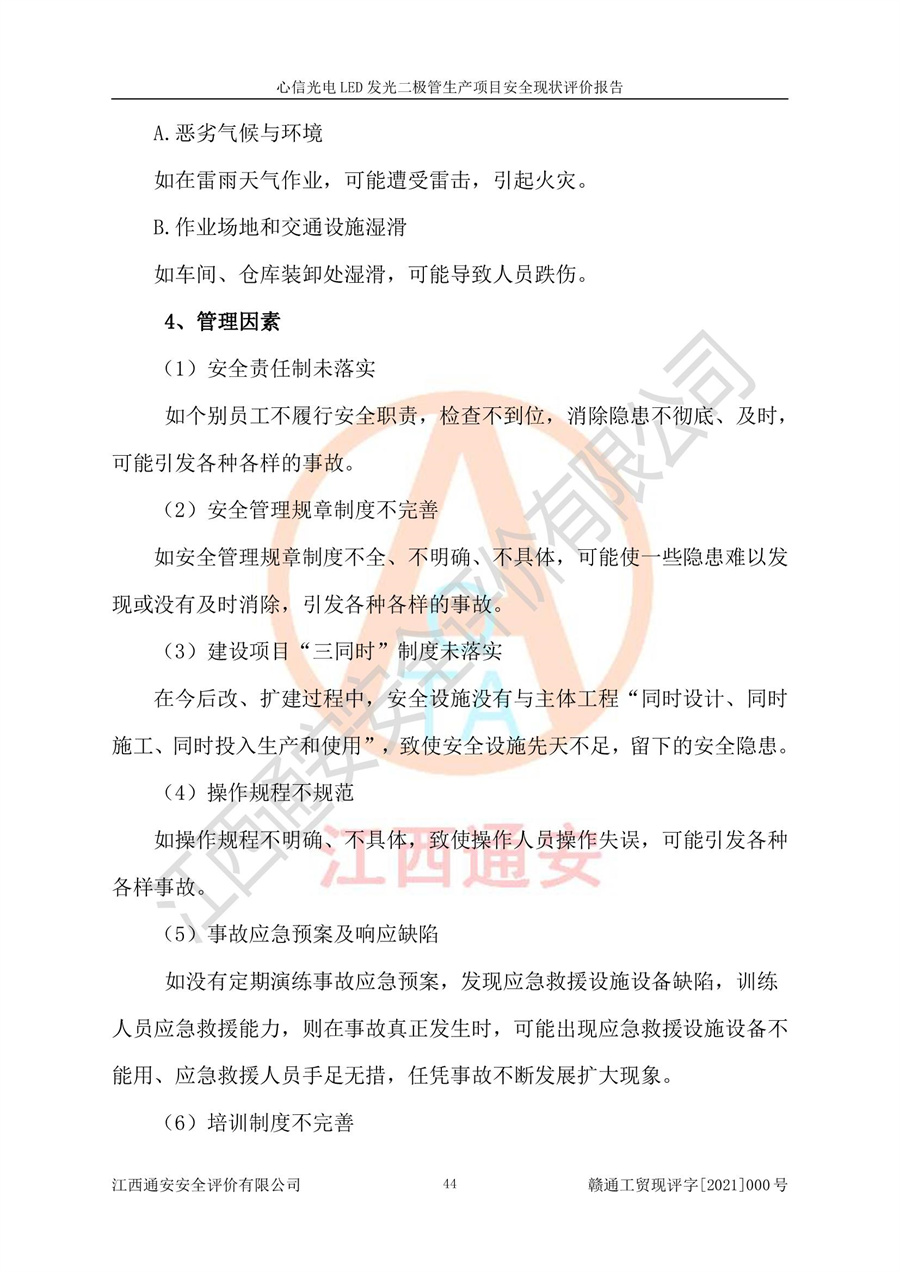 江西心信光电LED发光二极管生产项目安全现状评价报告