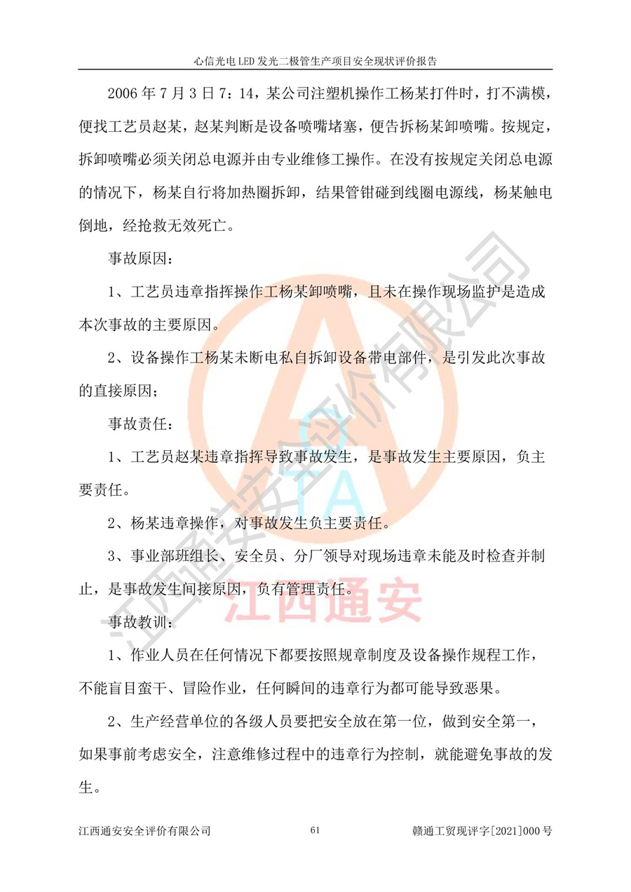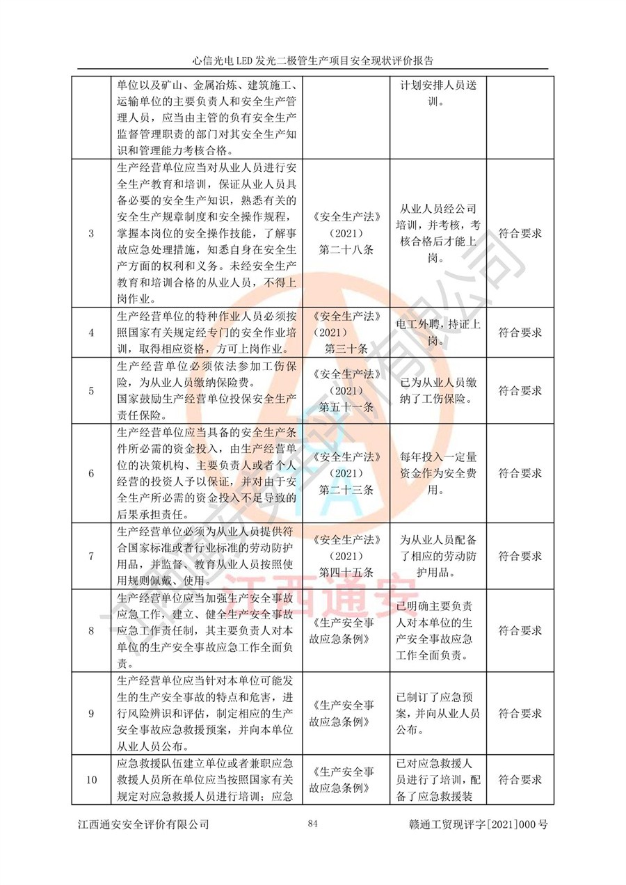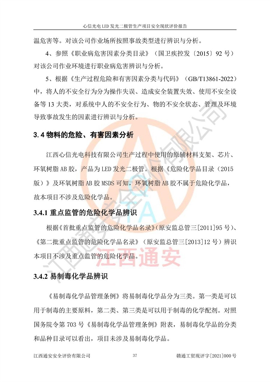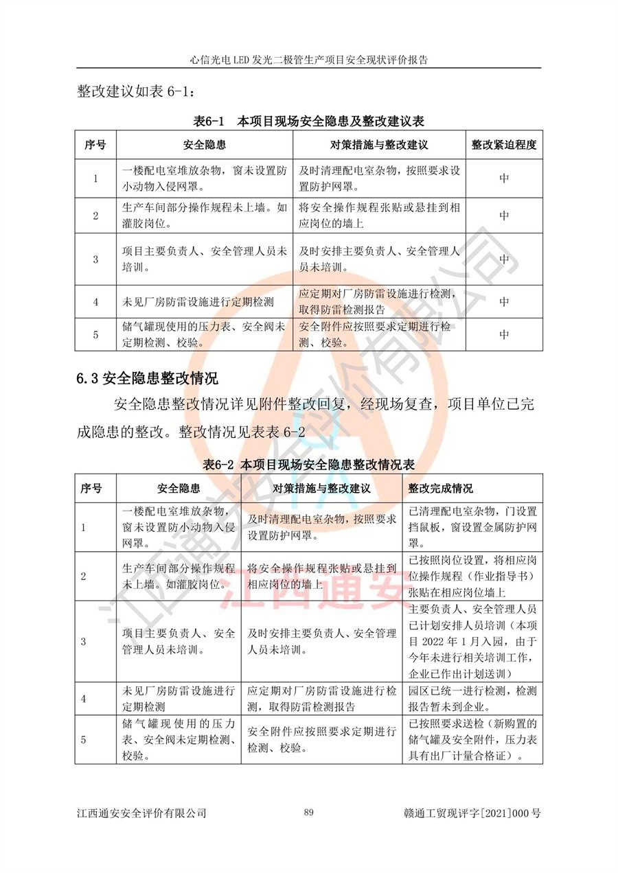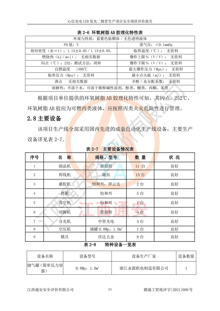 江西心信光电LED发光二极管生产项目安全现状评价报告